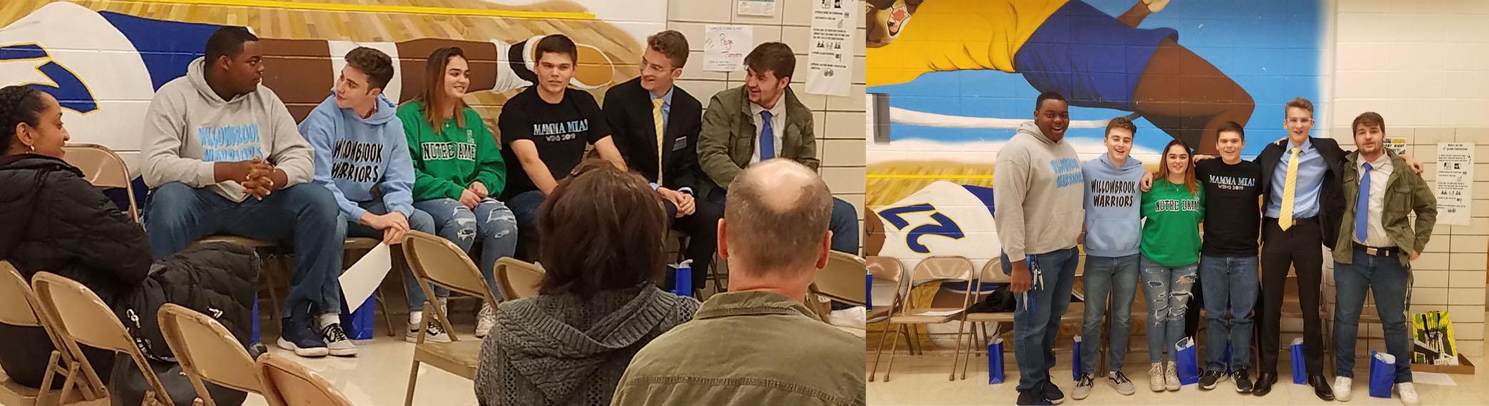 The Willowbrook students who participated are (pictured above, from left to right in each photo) sophomore Eric Veal Jr., senior Caden Mielke, junior Siobhan Heneghan, junior Sean Shepherd, junior Ryan Brown and junior Colin Lane. They served as panelists and answered questions about the current landscape of social media for teens.