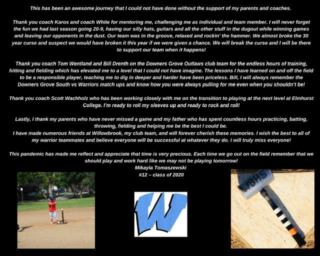 Willowbrook is proud to recognize and celebrate members of the class of 2020 who will continue their athletic careers at the collegiate level.