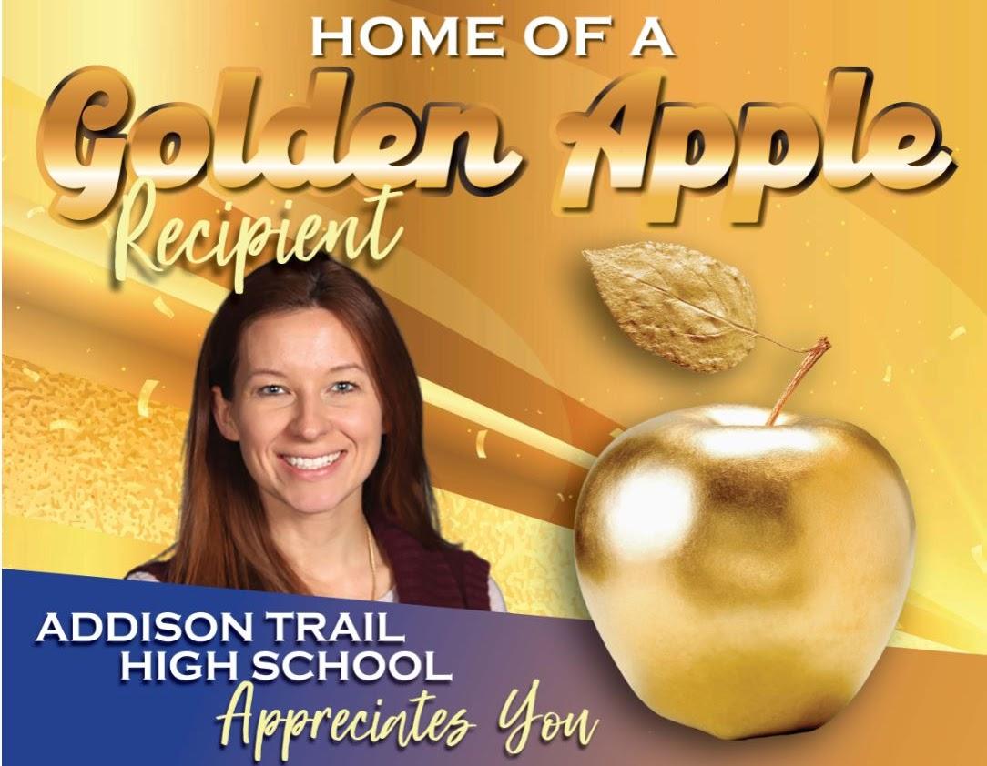 Addison Trail’s Golden Apple award is given to teachers and staff members who have made a positive impact on students inside the classroom and beyond and is a reminder that their hard work and continuous effort matter each and every day.