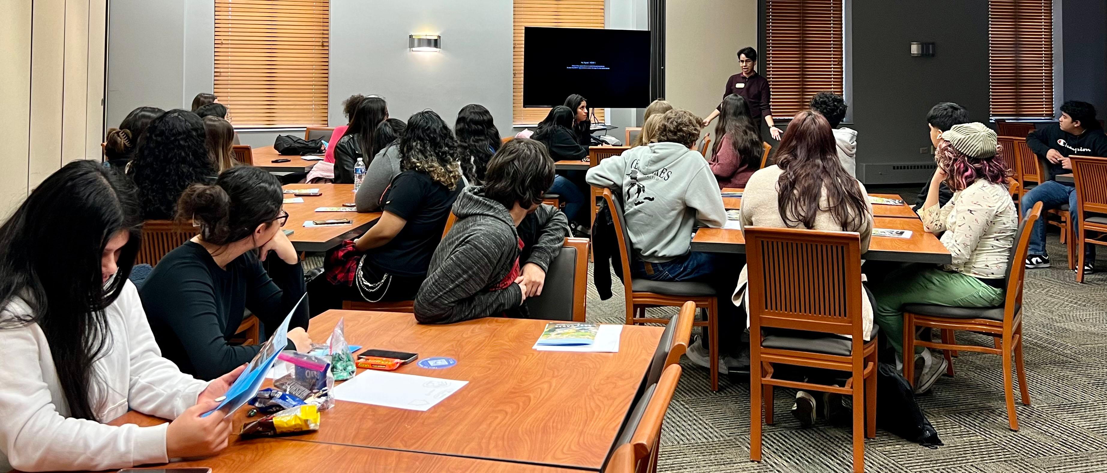 On Nov. 9, 26 Addison Trail students who are enrolled in English teacher Michael Valeski’s Hidden Voices class and English teacher Jessica Clark’s Communication Studies (Mass Media) class visited Elmhurst University (pictured above).