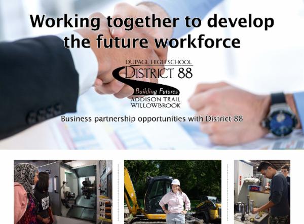 - Further develop partnerships with local companies to support District 88 students. See details at dupage88.net/BusinessPartnerships.