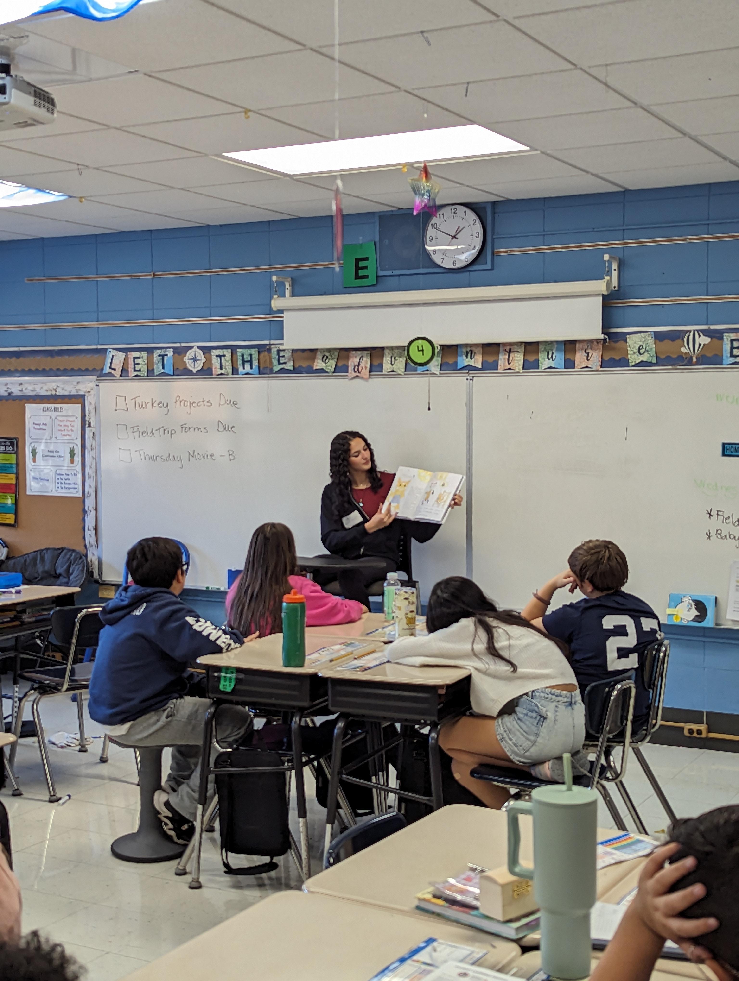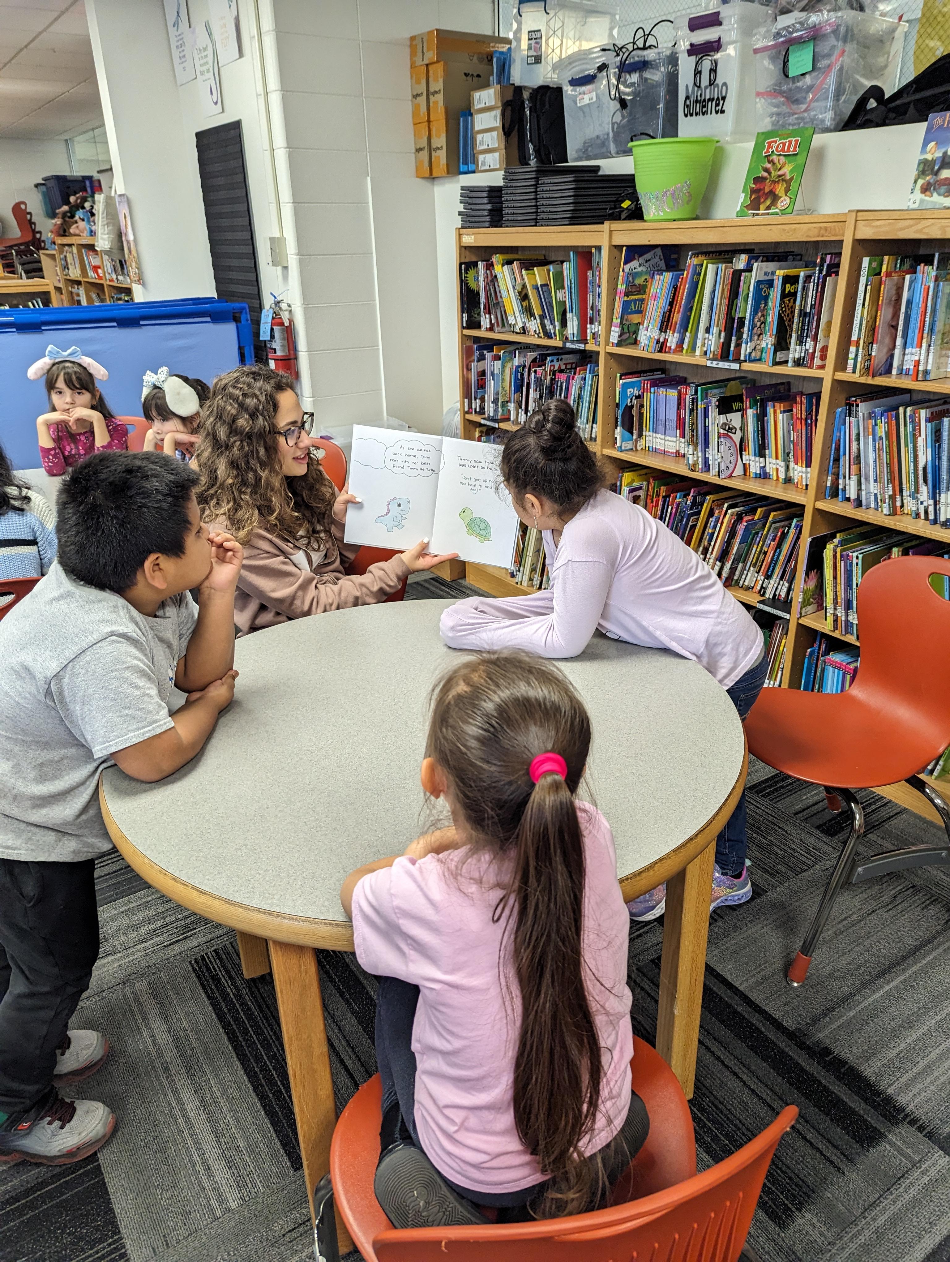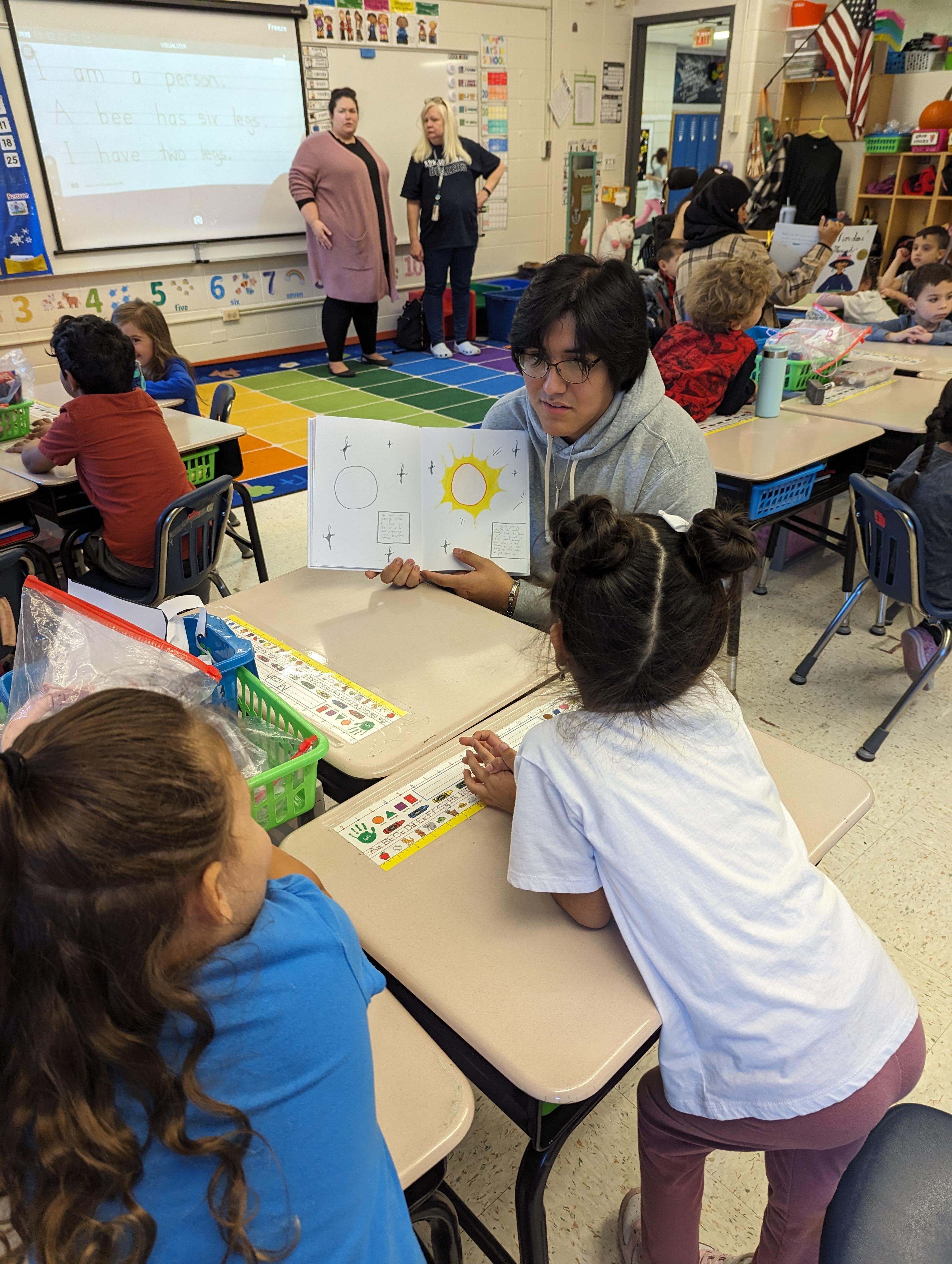 On Nov. 15, students in Addison Trail English teacher Katie Inzinga’s Creative Writing class visited Stone, Lincoln and Ardmore elementary schools, where they read their original children’s stories to pupils in kindergarten through fifth grade.