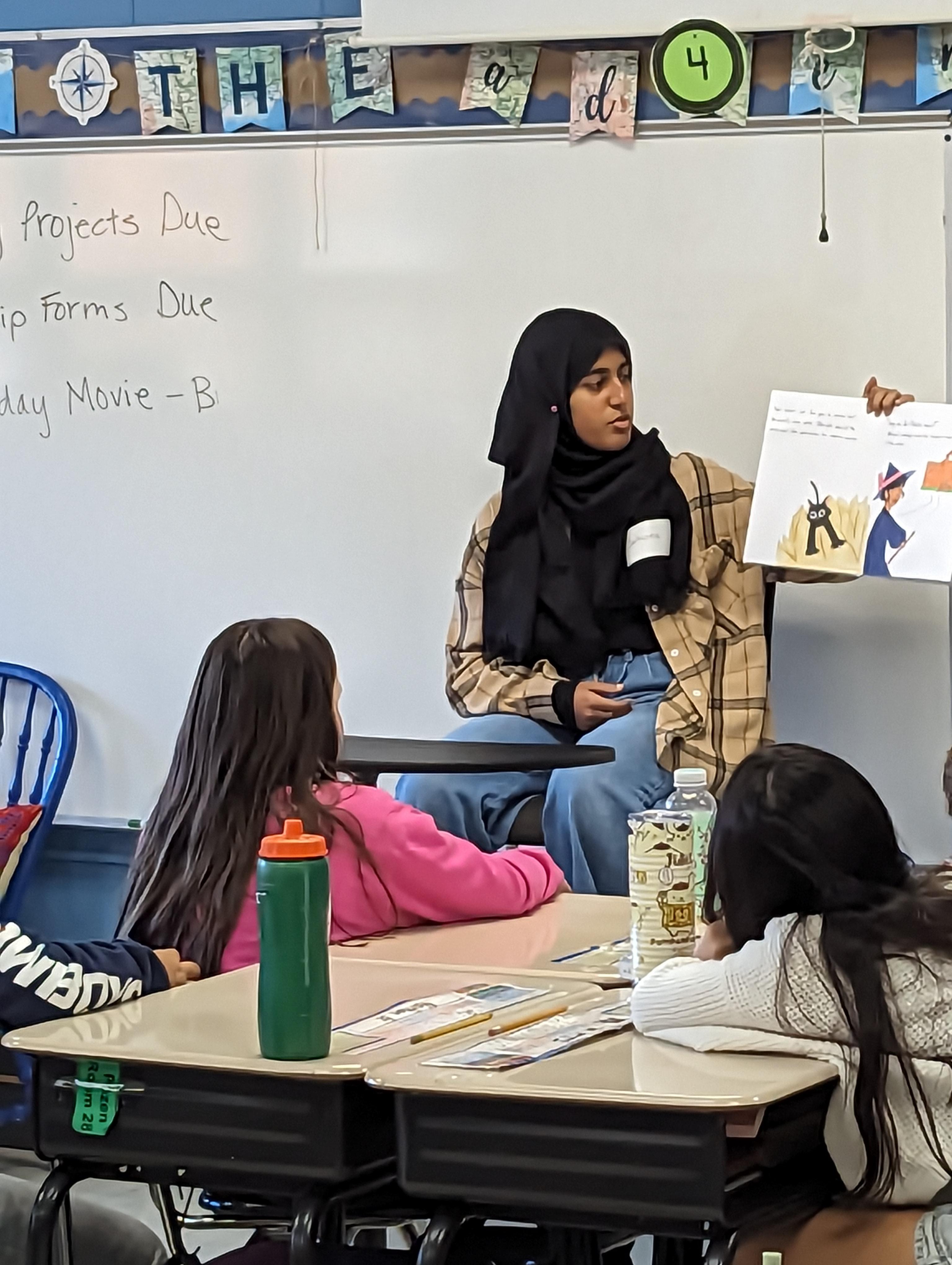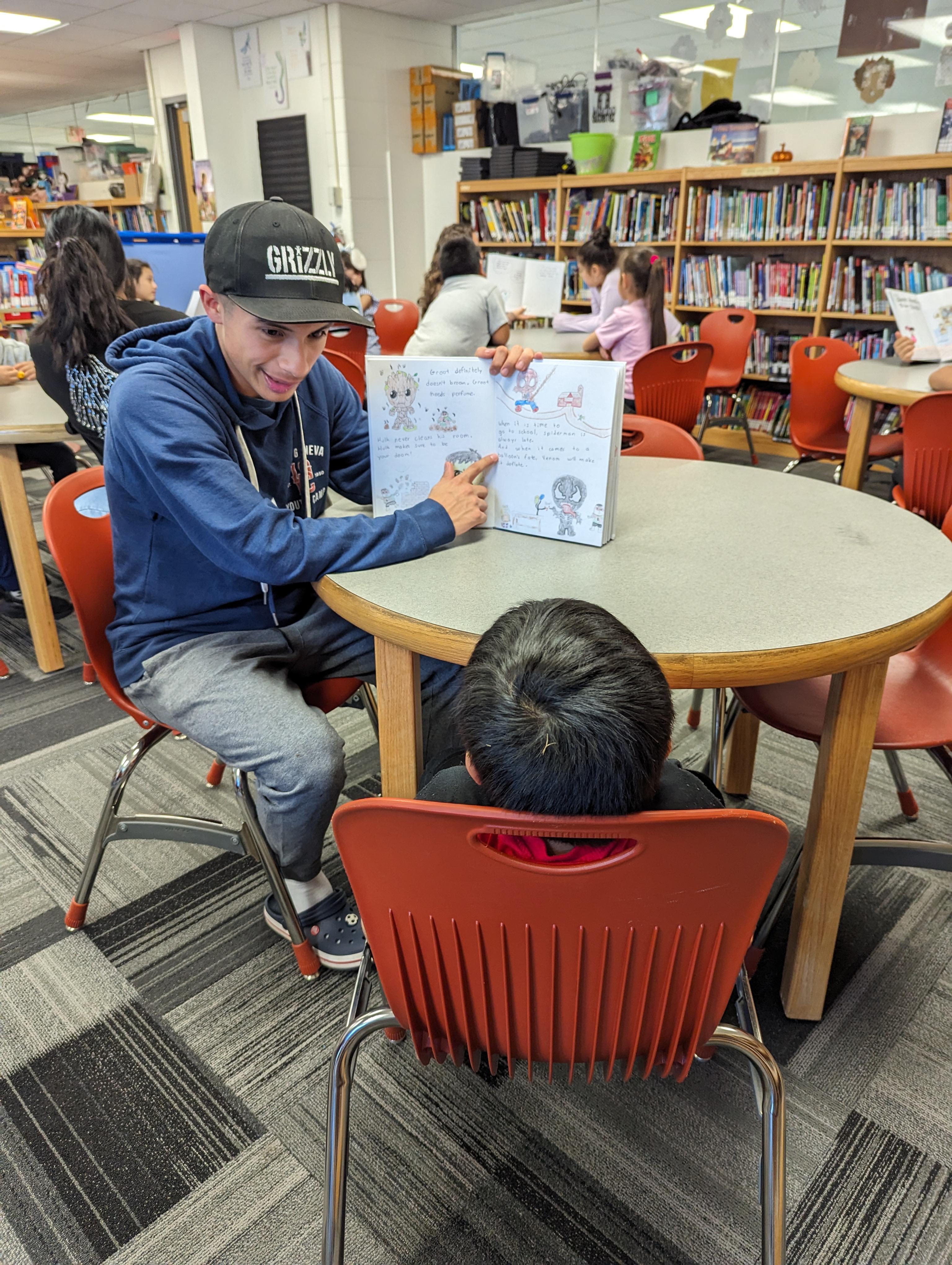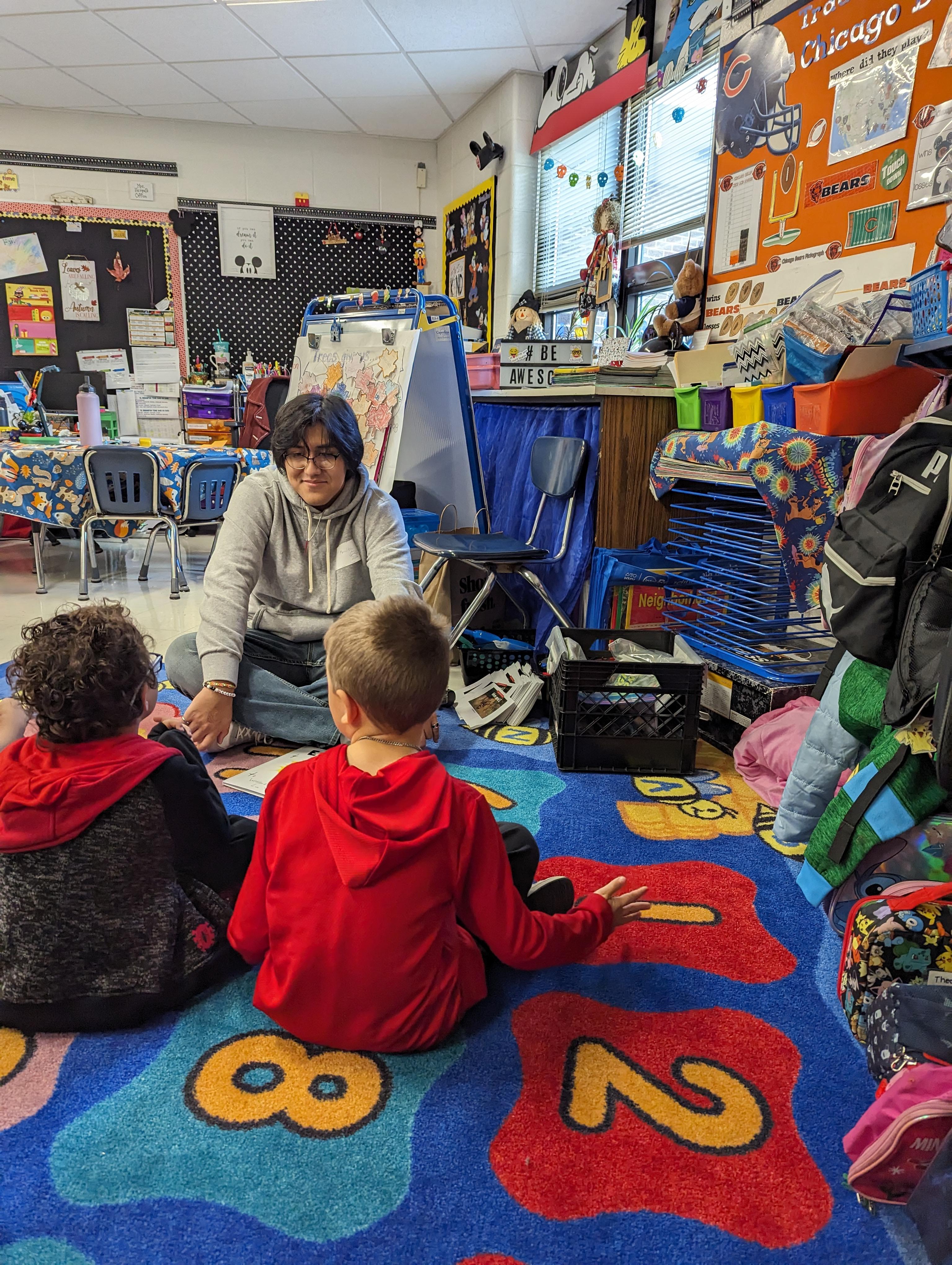 On Nov. 15, students in Addison Trail English teacher Katie Inzinga’s Creative Writing class visited Stone, Lincoln and Ardmore elementary schools, where they read their original children’s stories to pupils in kindergarten through fifth grade.