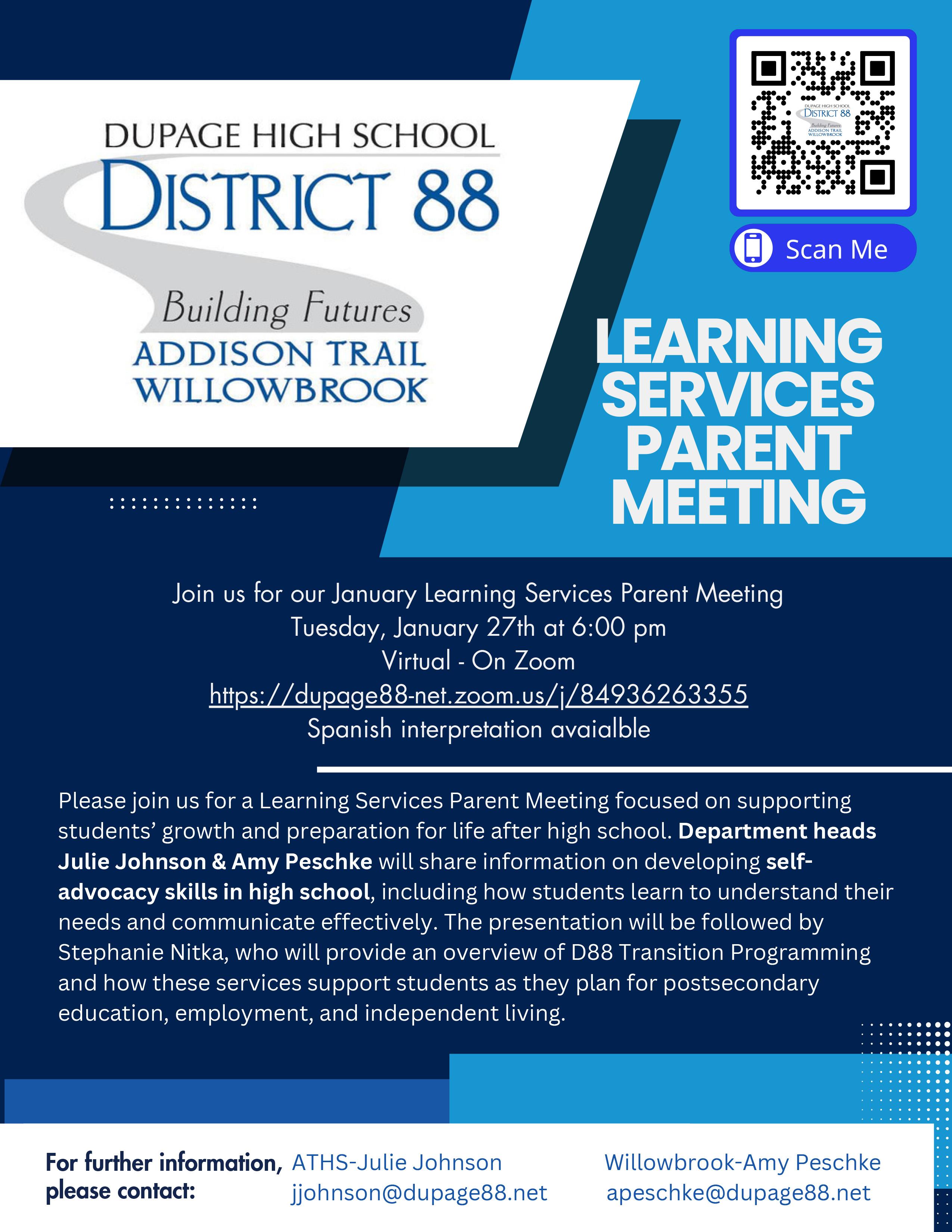 District 88 to host Learning Services Parent Meeting
