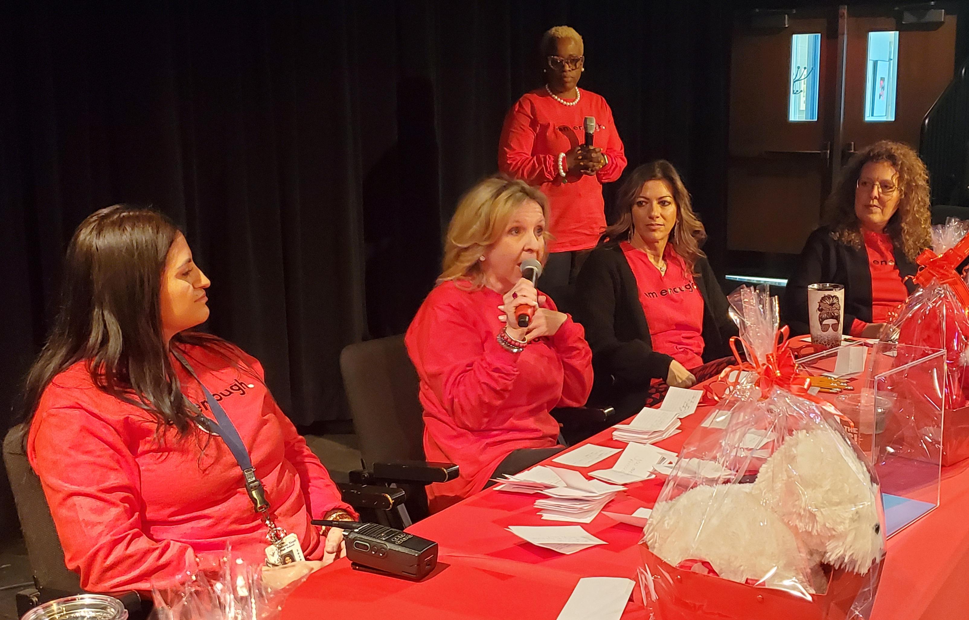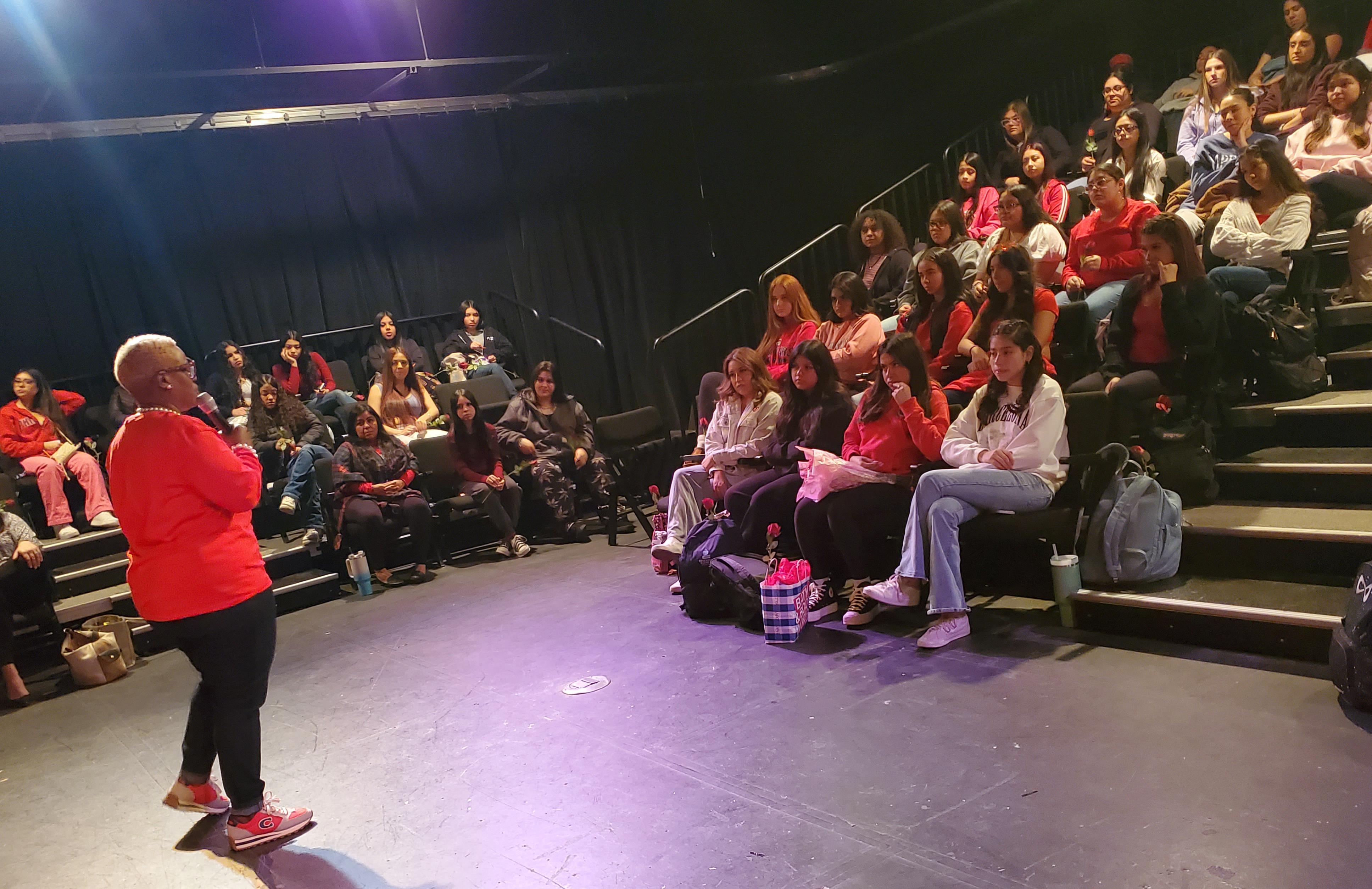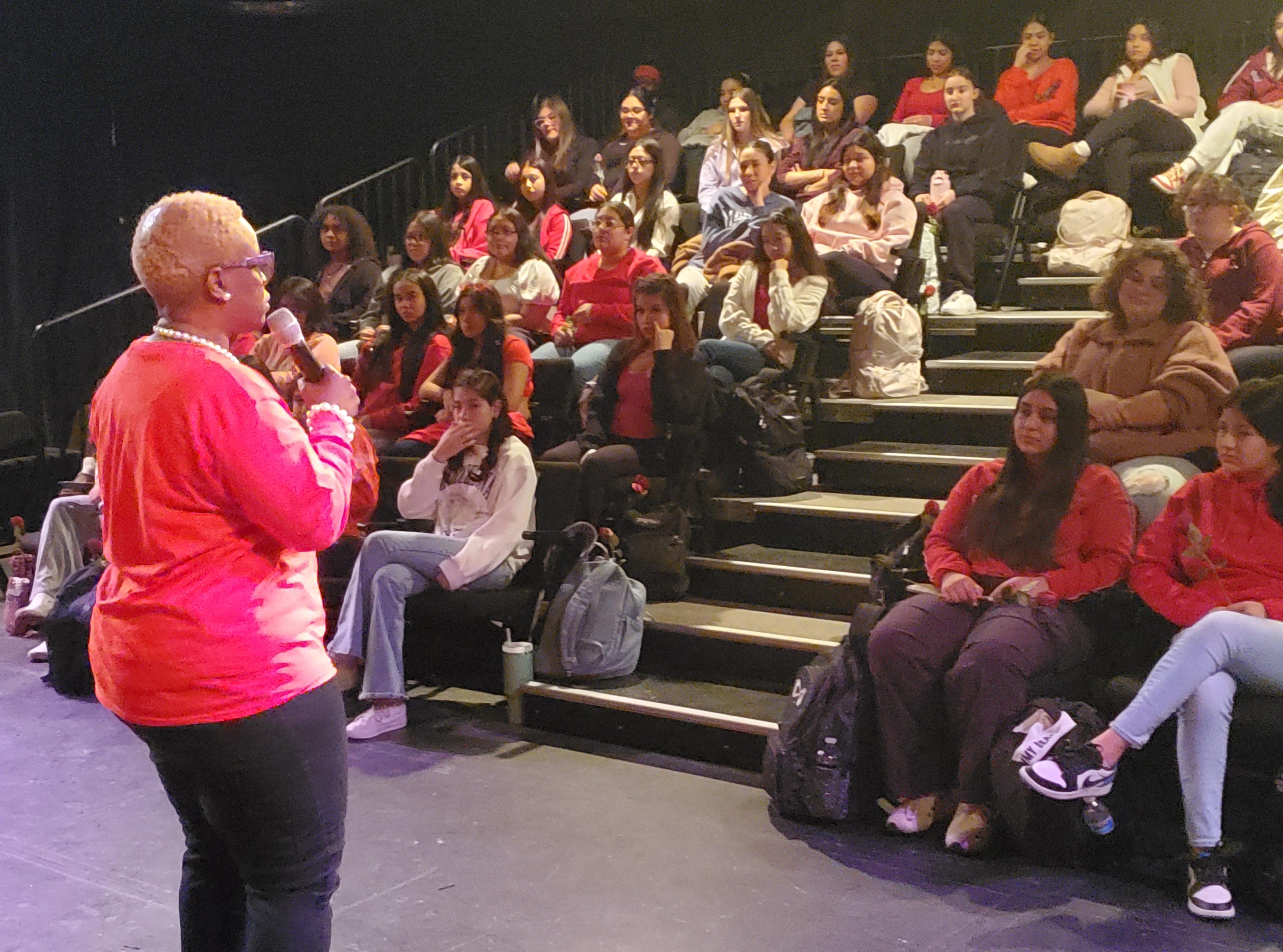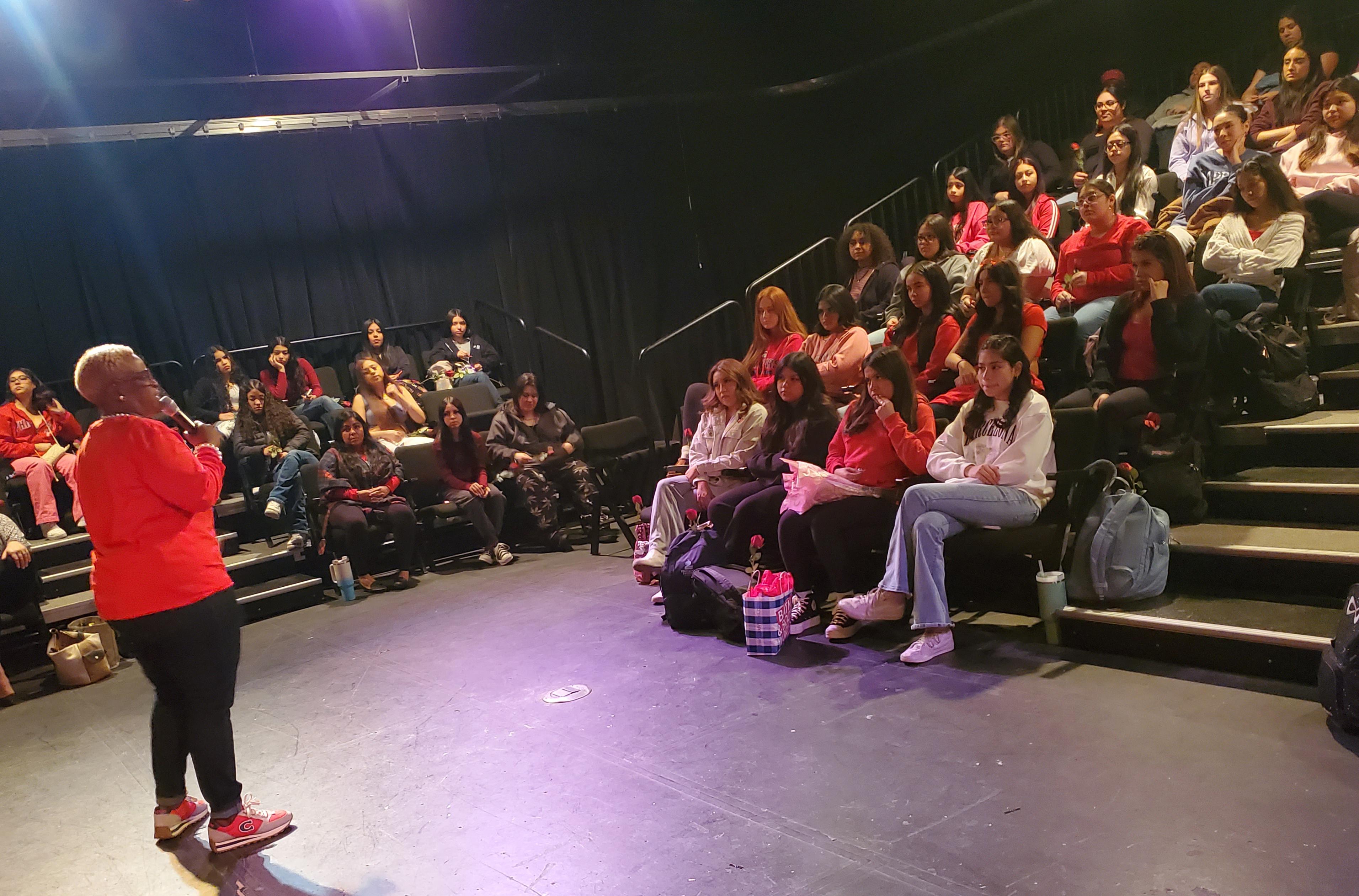 S.H.E. Day is coordinated by Addison Trail Student Success Coordinator VaLarie Humphrey. During the event, Humphrey used a visual demonstration to show how life events and adversity don’t change/define your true inner value. Students then had an opportunity to ask questions and discuss a variety of topics with a “red table” panel of District 88 and Addison Trail administrators and staff members. The panel shared thoughts about relationships and respect, offered advice with regard to believing that “you are enough” and more.