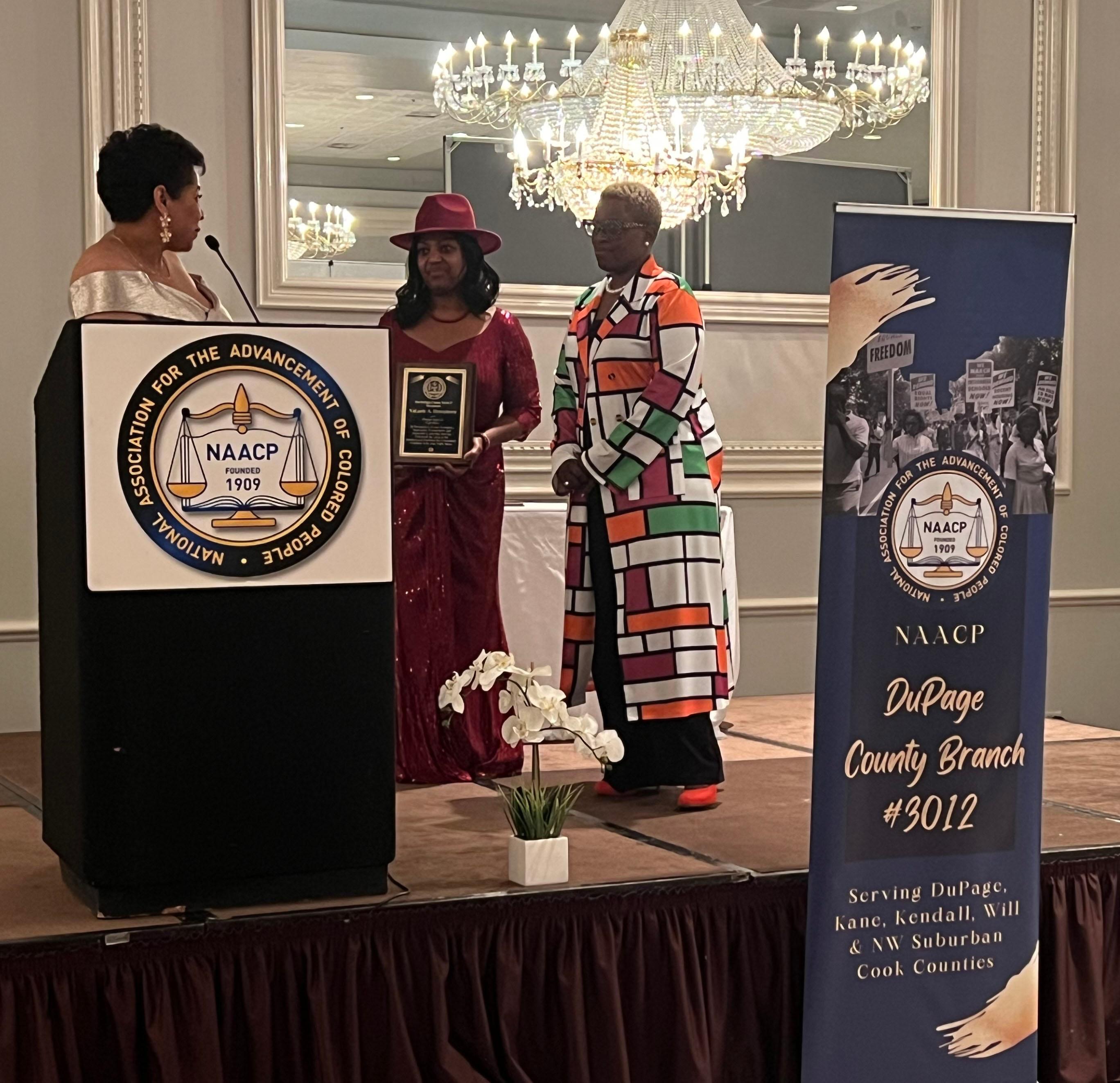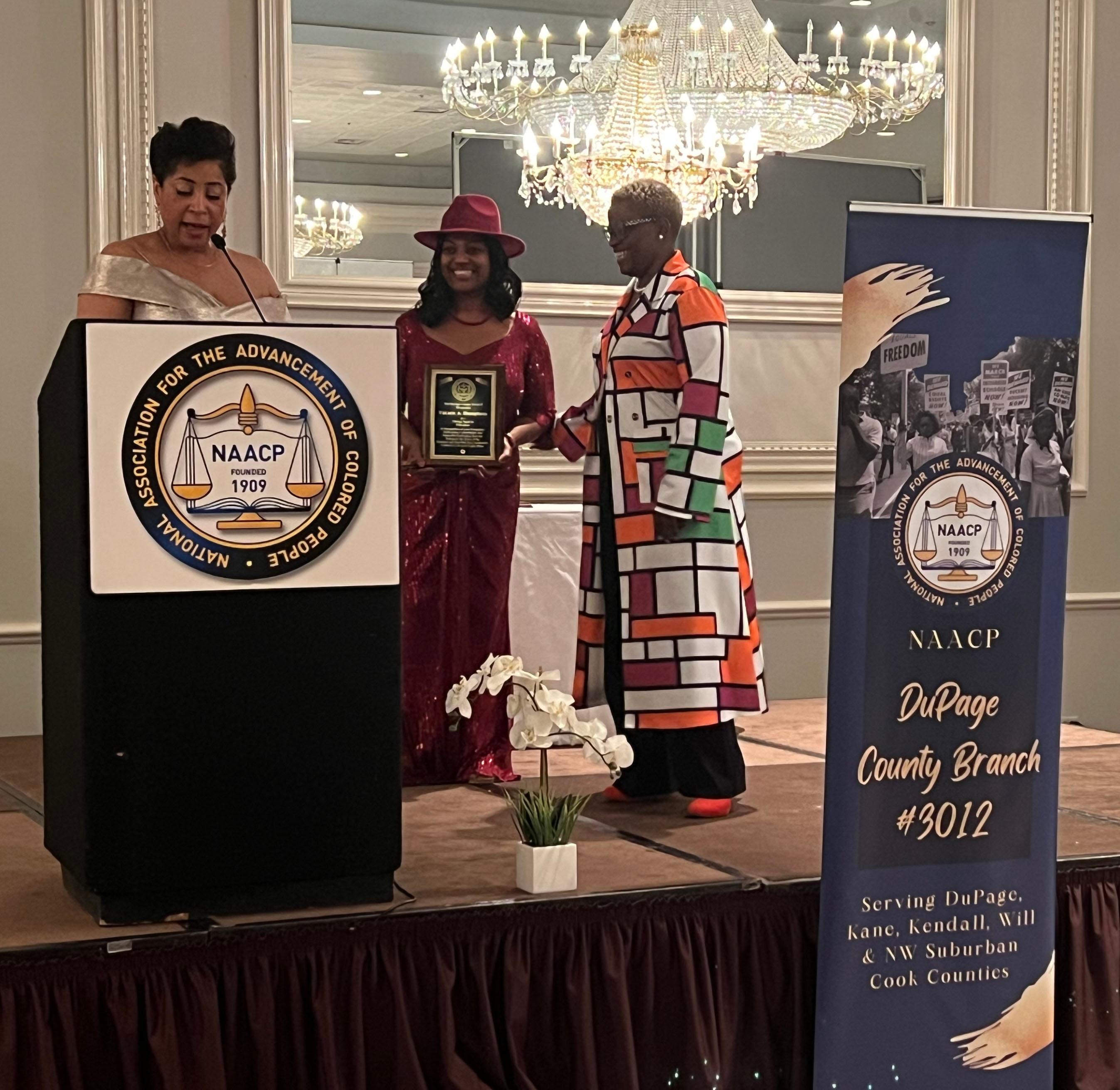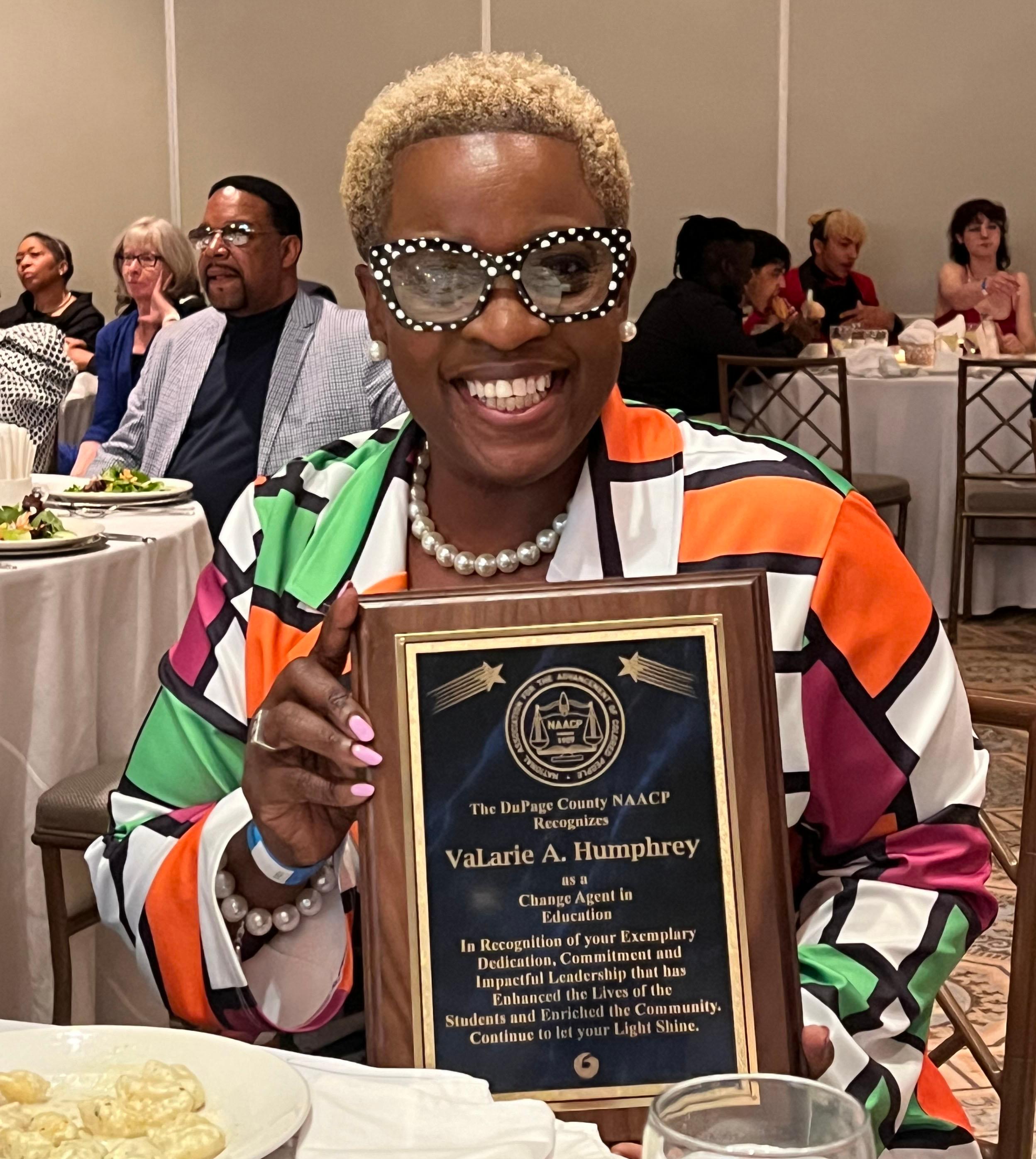 District 88 is proud to share Student Success Coordinator VaLarie Humphrey was recently honored with the Change Agent and Impact Education Award by the DuPage County Branch of the NAACP. She was recognized during the 66th annual Sydney Finley Scholarship and Freedom Fund Gala on April 6.