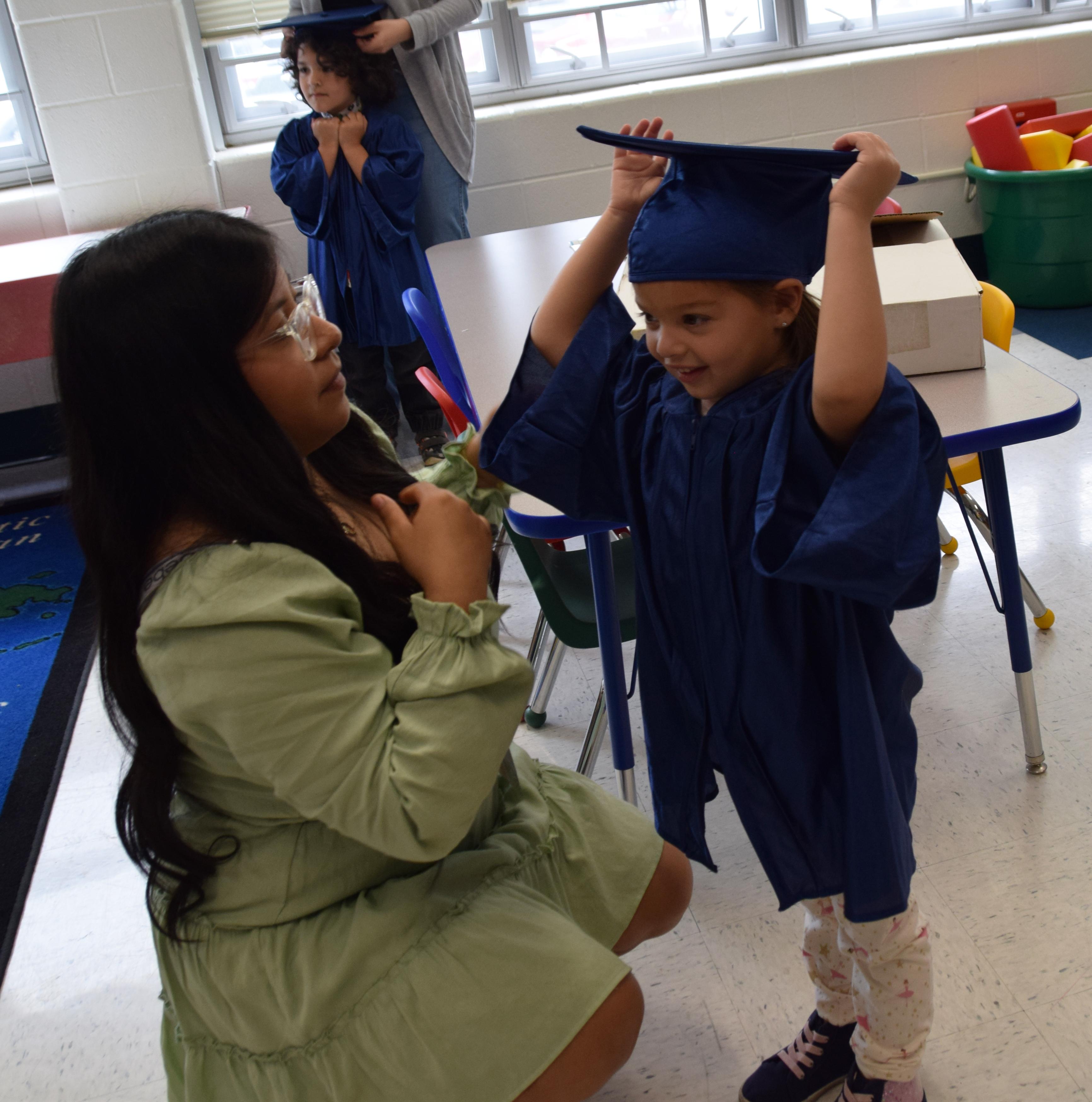 The preschoolers wore graduation caps and gowns and received a certificate for their hard work. After the ceremony, they enjoyed treats with their parents/guardians and the Addison Trail students who taught them during second semester.