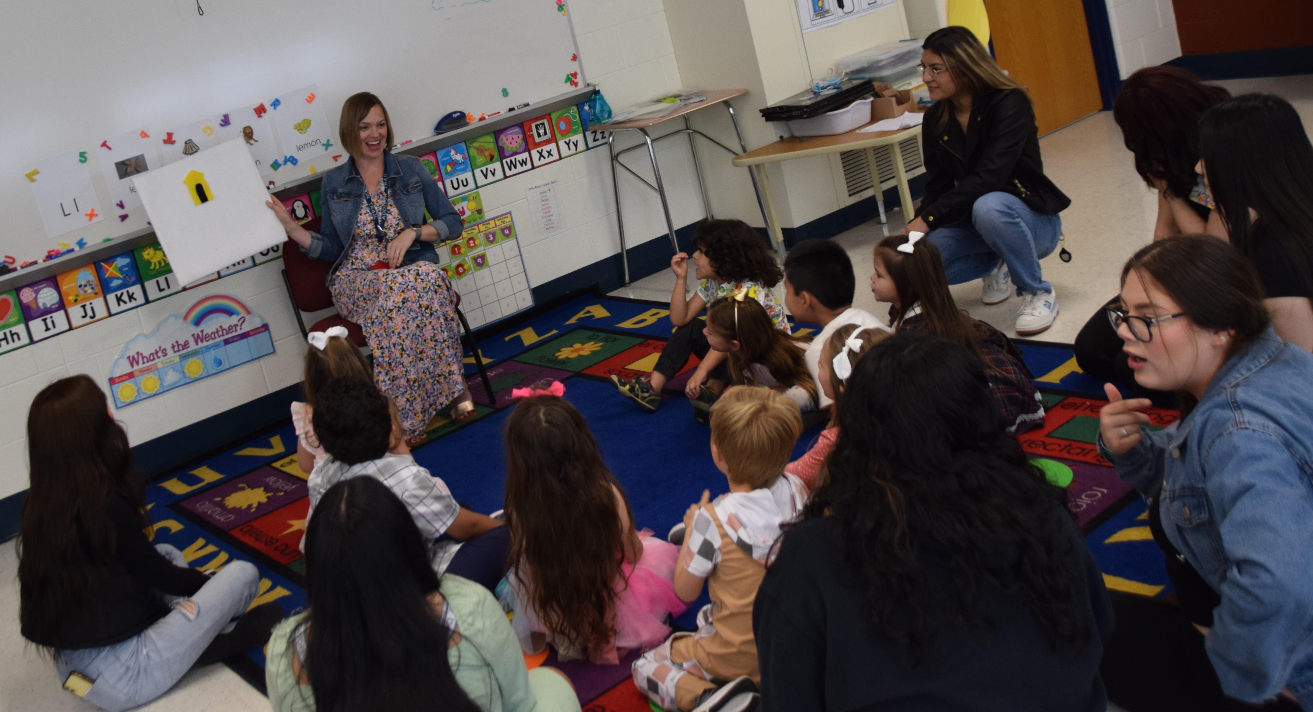 The 10 children in the class are from the surrounding communities. They spent two mornings a week with the Little Blazer Preschool class, during which Addison Trail students conducted lessons in math, science, art, music, language arts and large/small muscle.