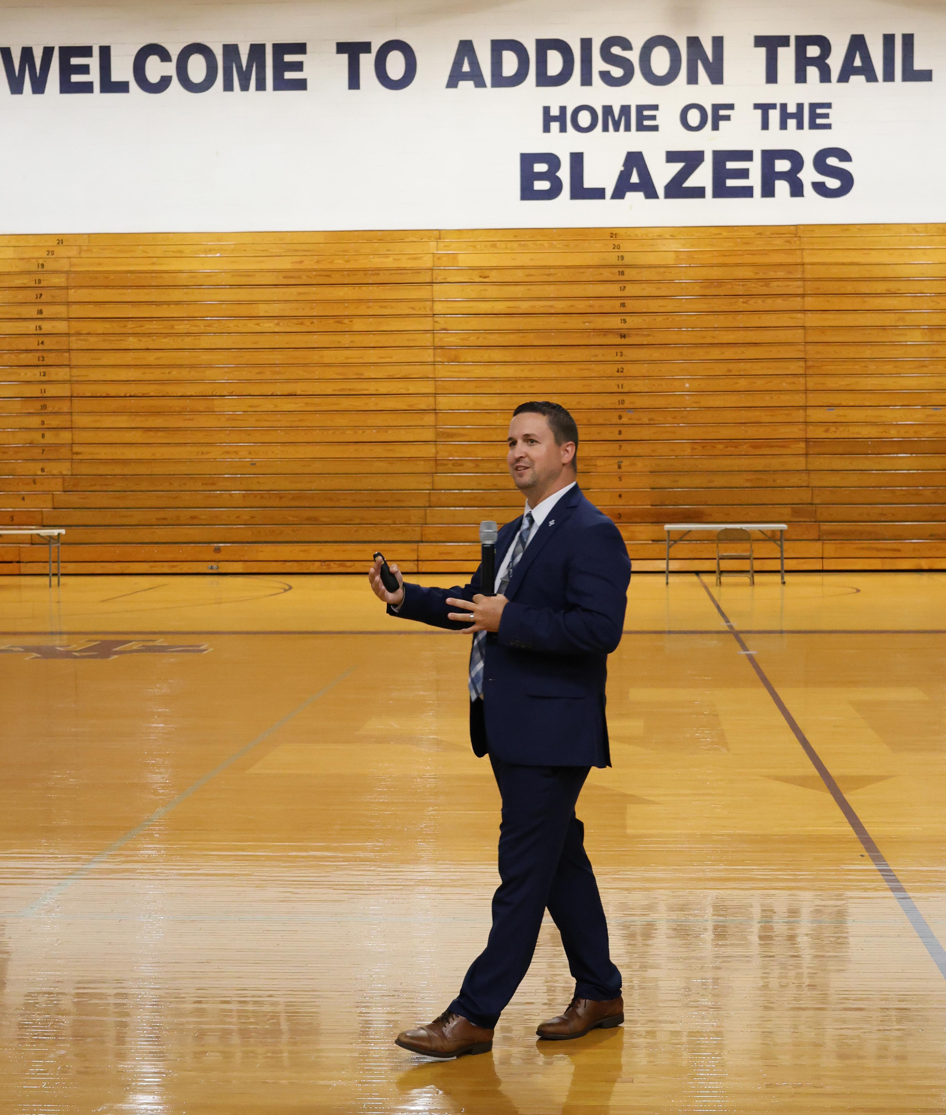 During the evening, participants were able to take a building tour, meet administrators and staff members and learn about Addison Trail’s curriculum as they followed an abbreviated version of their child’s daily schedule. Principal Jack Andrews welcomed the group and shared successes of Addison Trail, as well as important information for the school year.