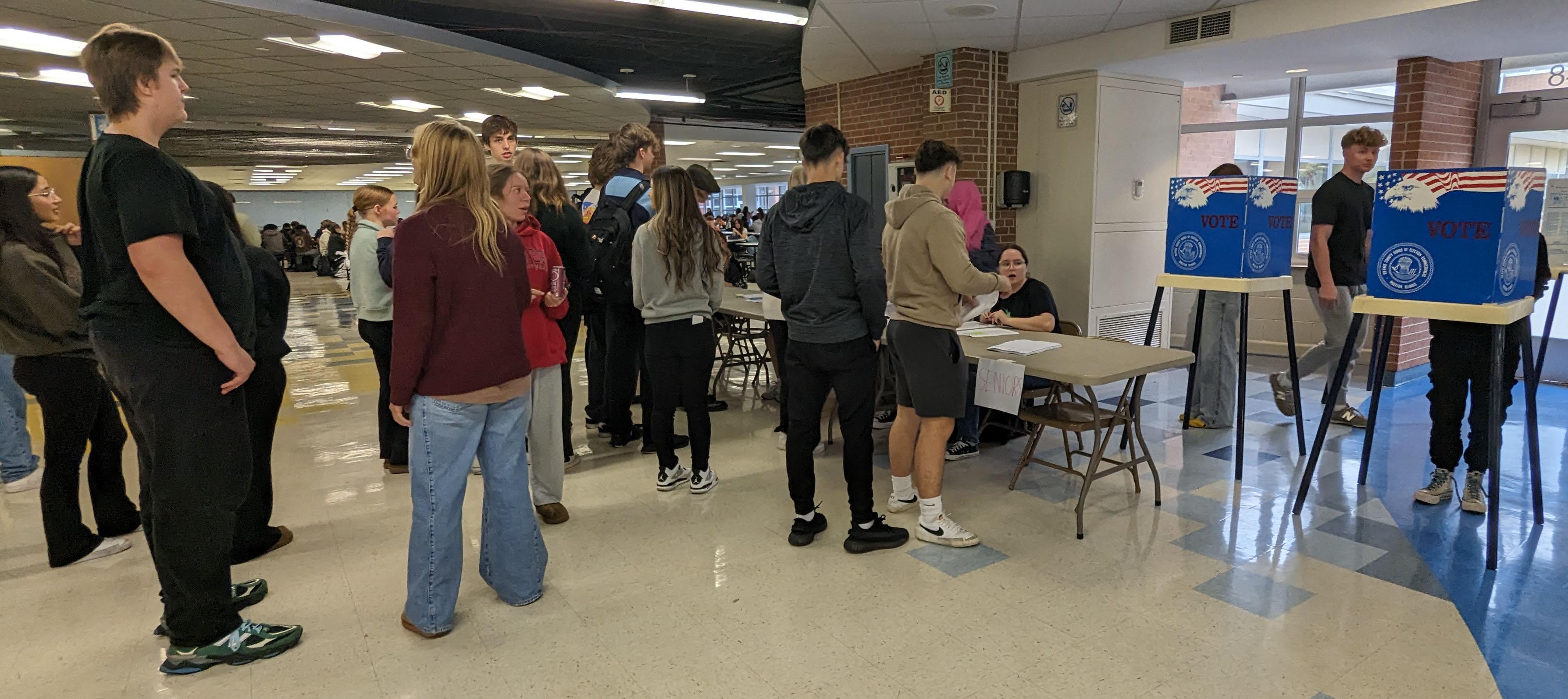 About 500 students participated through volunteering and casting their vote for President/Vice President and U.S. Representative for Illinois District 6. Participants showed their civic pride and wore “I Voted Today at Willowbrook HS” stickers.