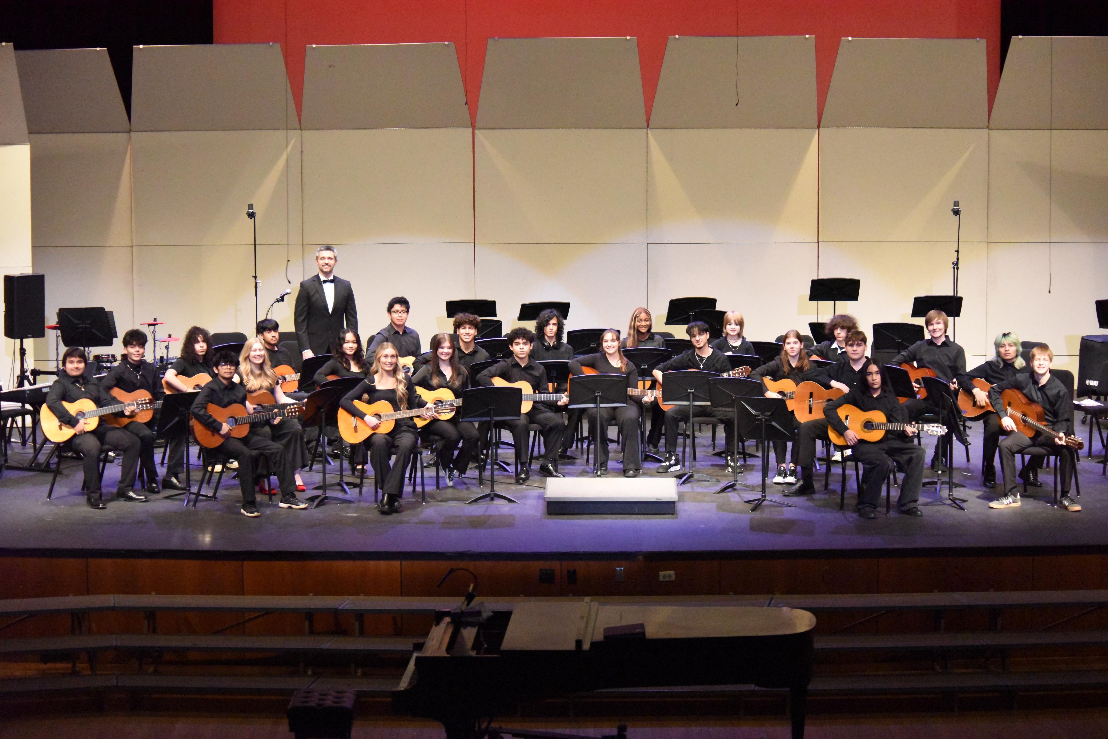 Concert II featured 19 pieces performed by Beginning Guitar, Guitar Ensemble, Symphony Orchestra, Chamber Orchestra, Beginning Mixed Chorus, Treble Choir and Concert Choir.