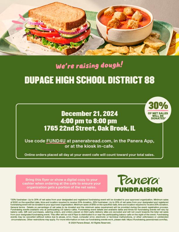 Willowbrook's Social Studies Honor Society, Civitas, invites all students, parents/guardians, alumni, staff, community members and friends to participate in a fundraiser at Panera to support the group’s Kathy Marcyniuk Scholarship, which benefits Willowbrook seniors.