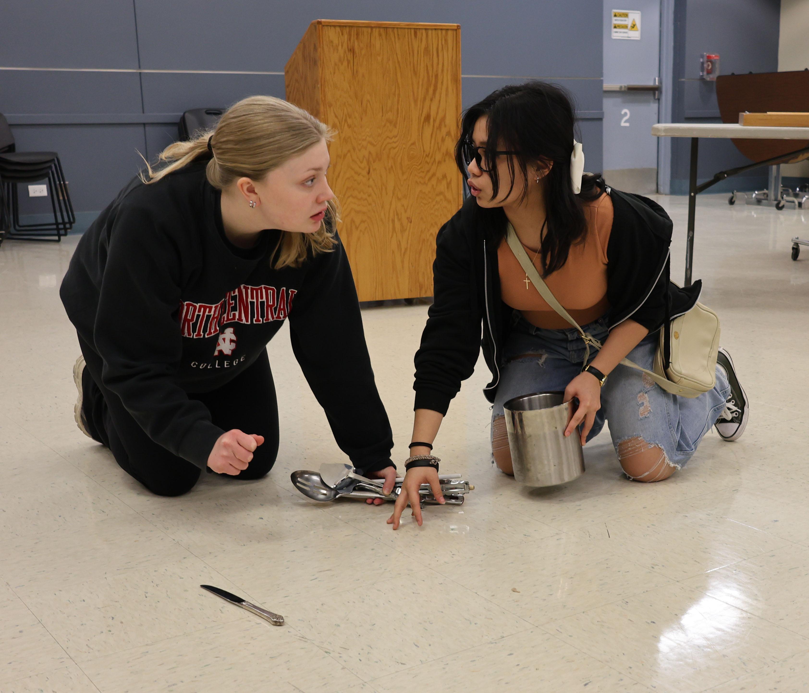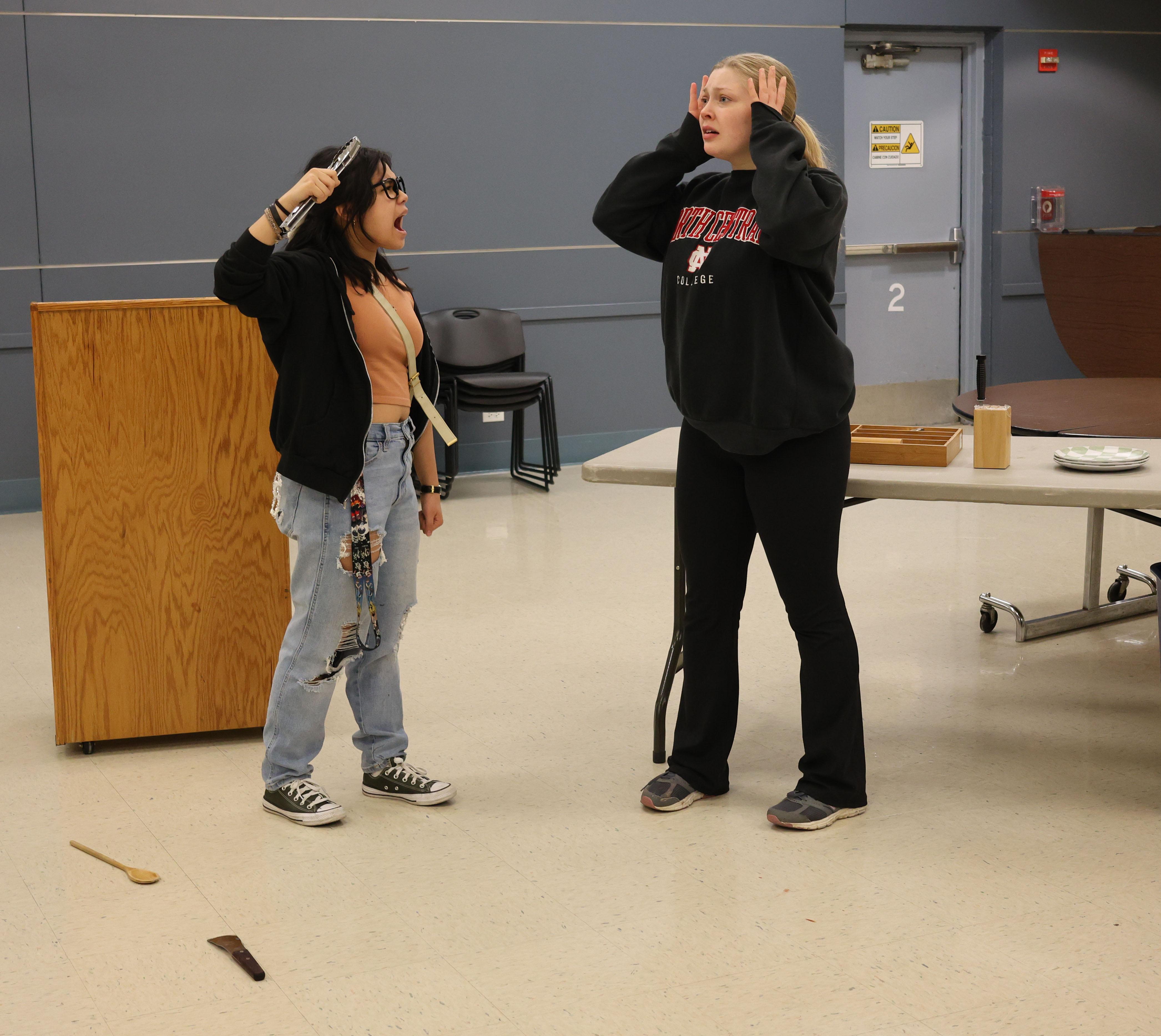 Willowbrook seniors Gillian Falco (who plays Susan) and Eddie Devens (who plays one of the criminals, Mike Talman) said the show is composed of complex characters and an intricate set. It also features action scenes, including falls, which were coordinated by fight choreographer Andrew Trygstad.