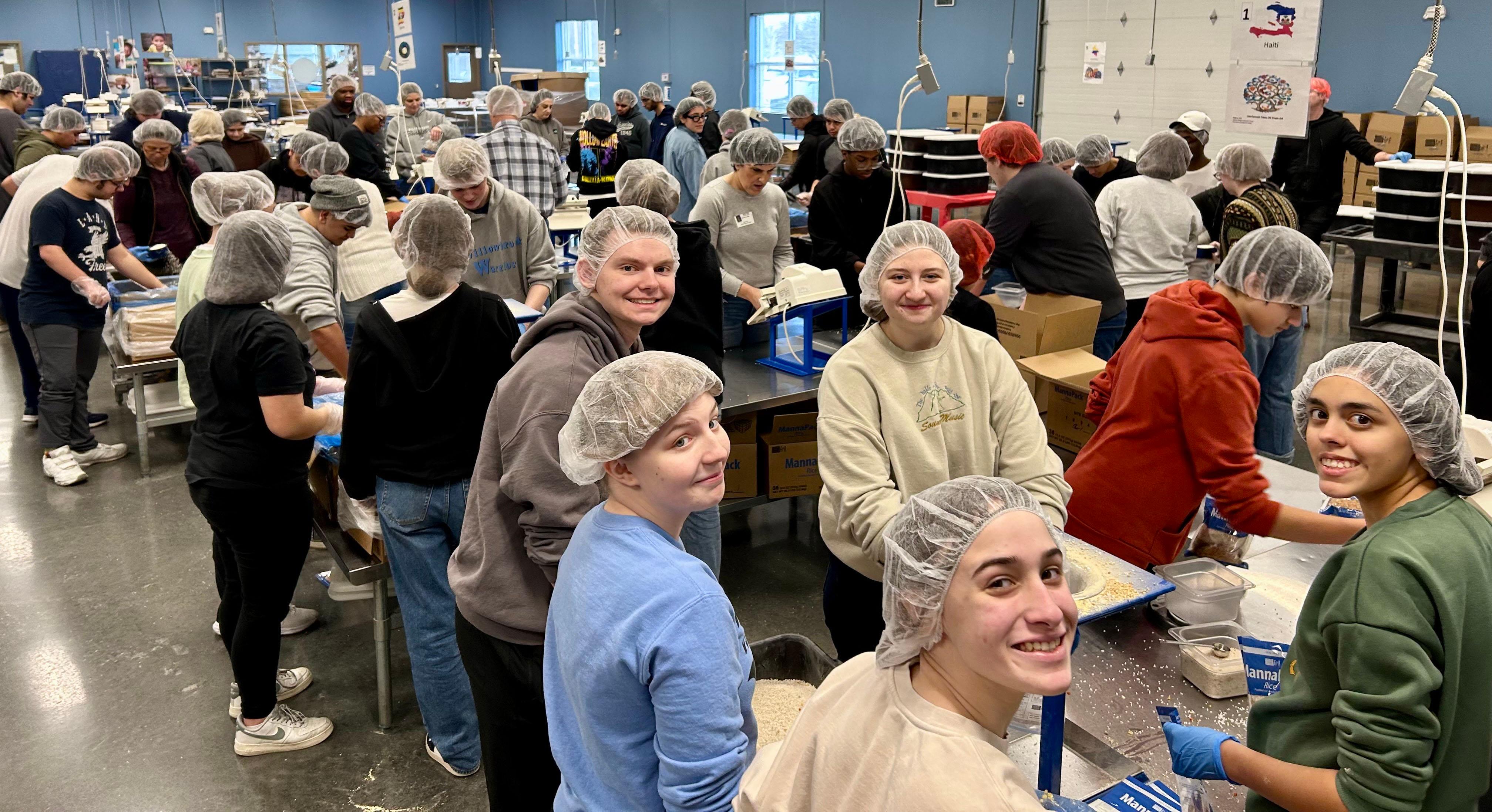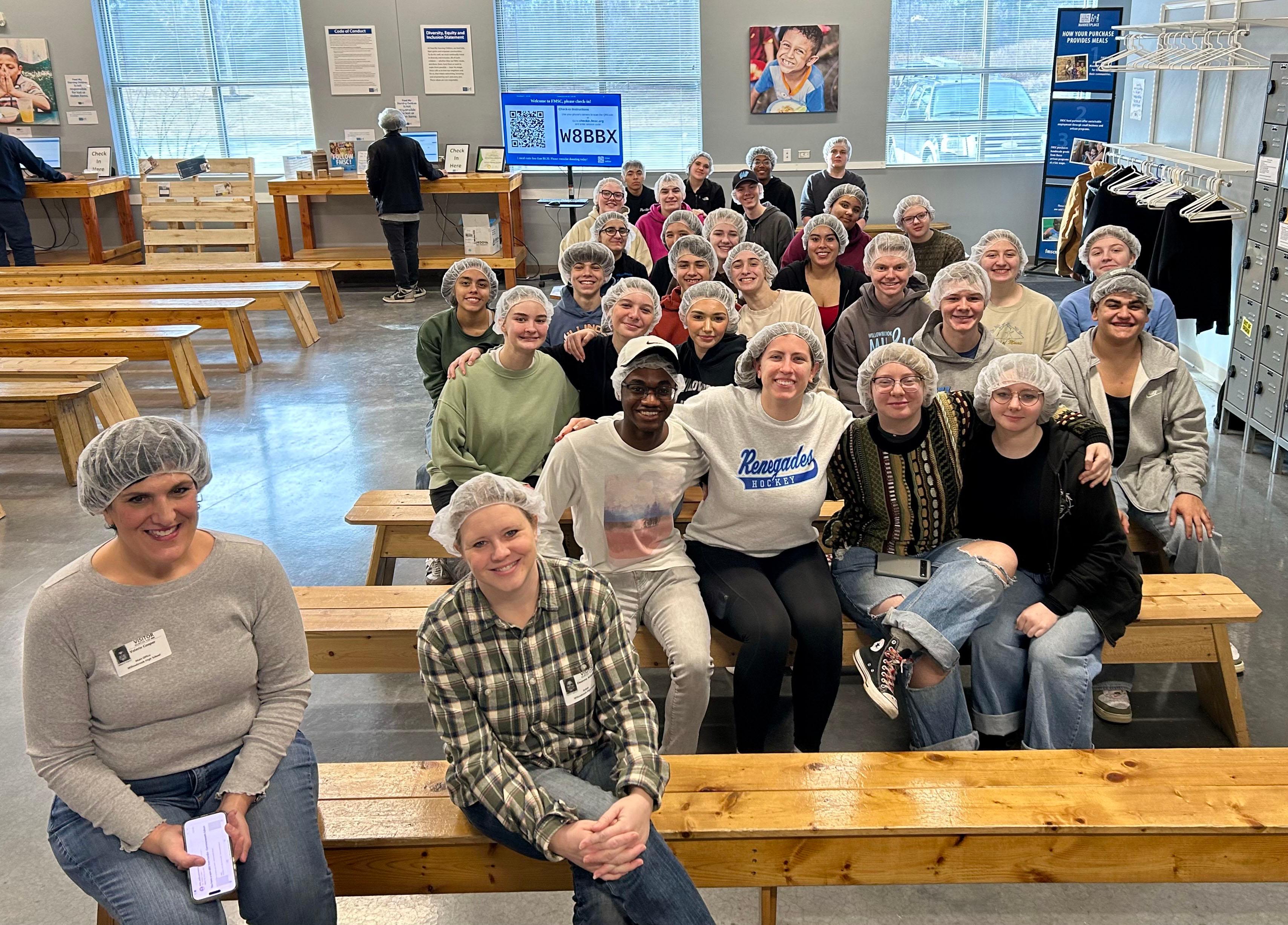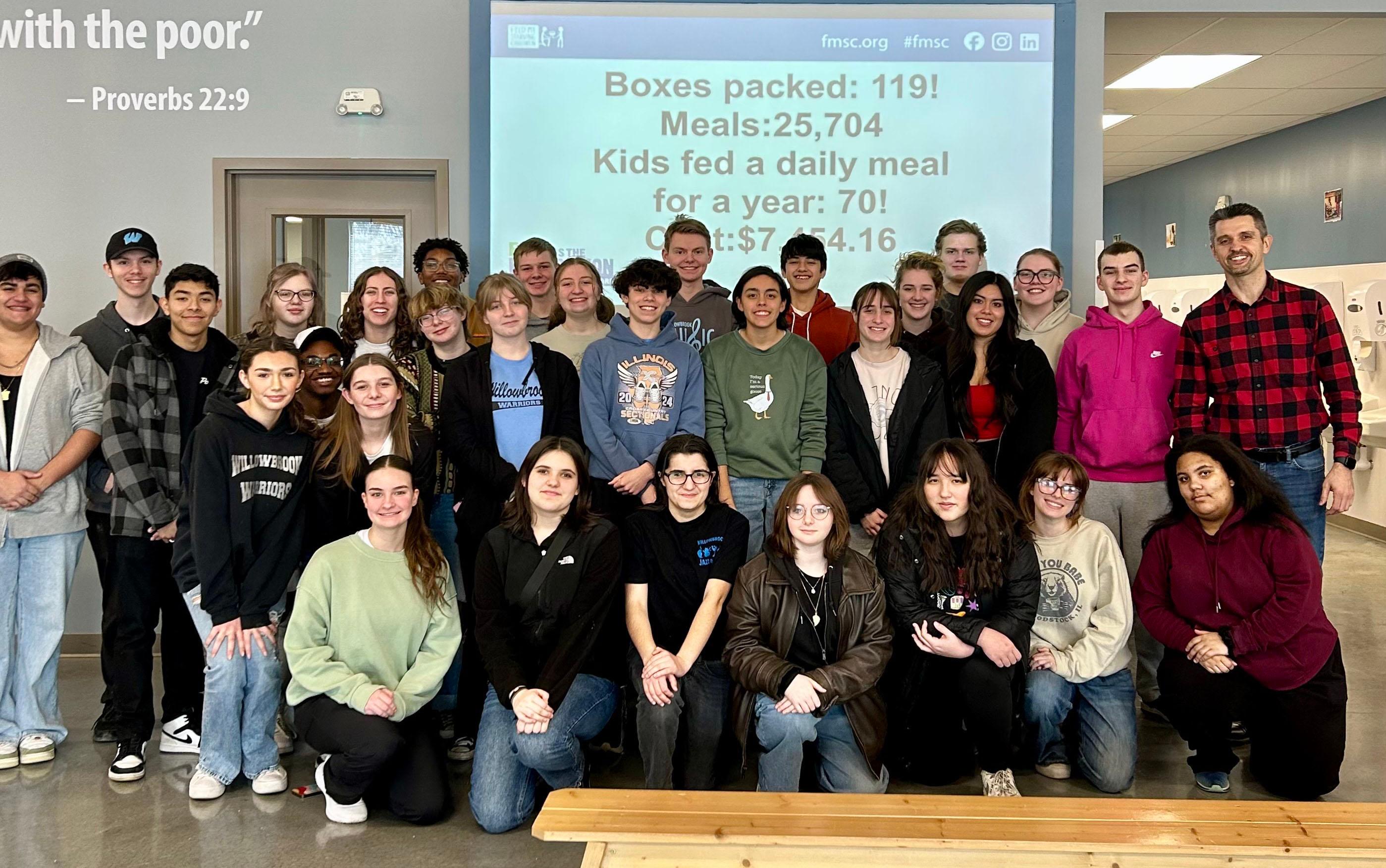 On Feb. 7, 32 group members took a break from their usual rehearsals and performances to serve their community in a different way. They volunteered at Feed My Starving Children in Schaumburg, a nonprofit organization that “believes hope starts with food” and is “dedicated to seeing every child whole in body and spirit.” The Willowbrook students helped pack 25,704 meals (119 boxes), which will feed 70 children who are facing food insecurity a daily meal for a year.