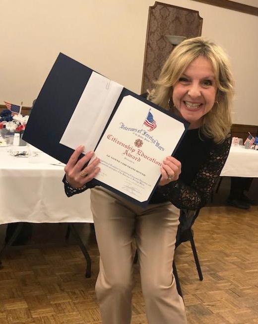 Addison Trail is proud to share staff member LeVonne Cescolini-Boyer (pictured above) has been named as the high school Teacher of the Year by the Illinois Veterans of Foreign Wars (VFW). She will be recognized during the State Convention, which will take place from June 5 to 8 in Springfield.