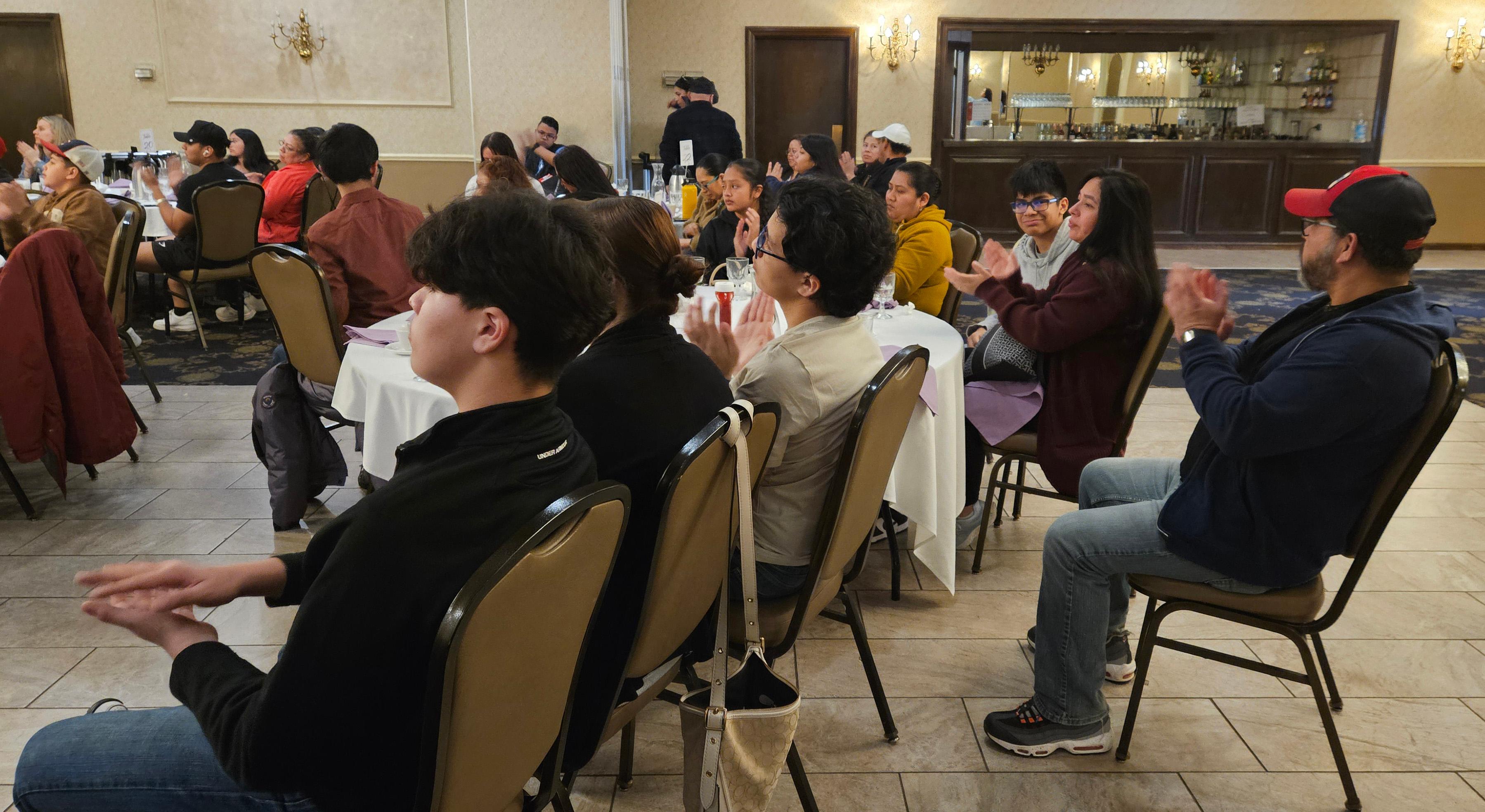 On March 15, about 24 families who are part of the Padres Latinos en Acción group at Addison Trail and the Padres Unidos group at Willowbrook attended a “Desayuno Motivacional” (Motivational Breakfast) at Crystal Sky Banquets in McCook.