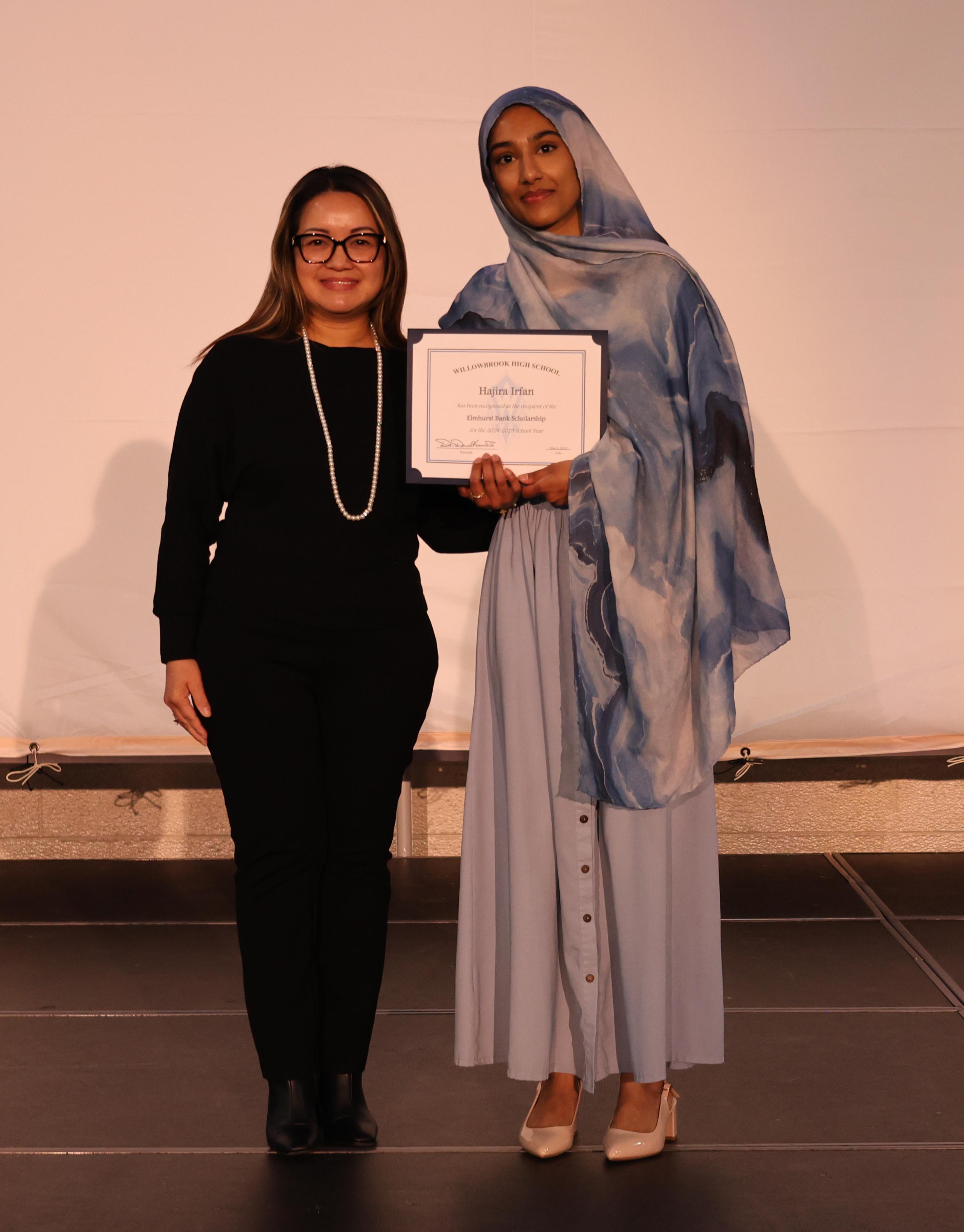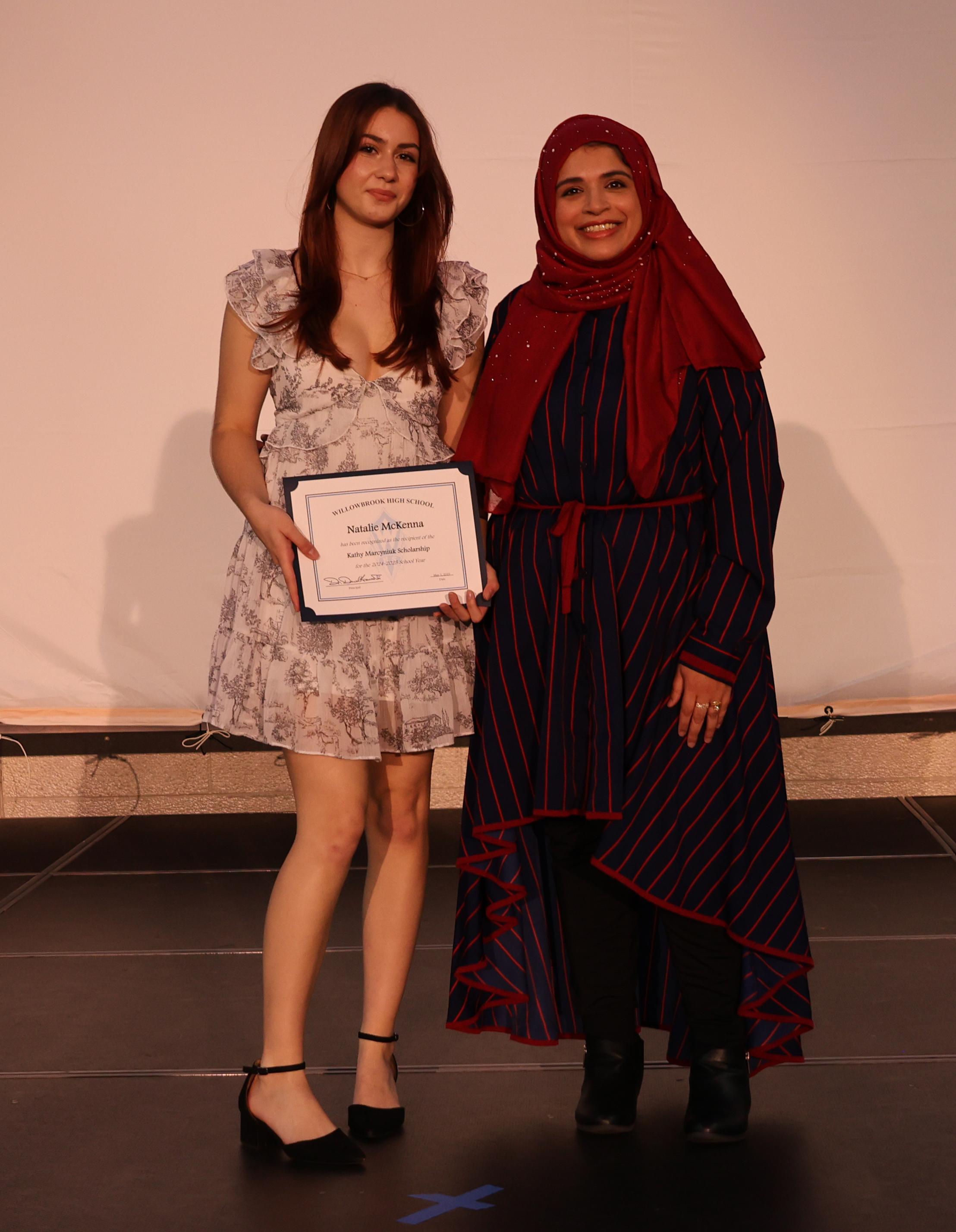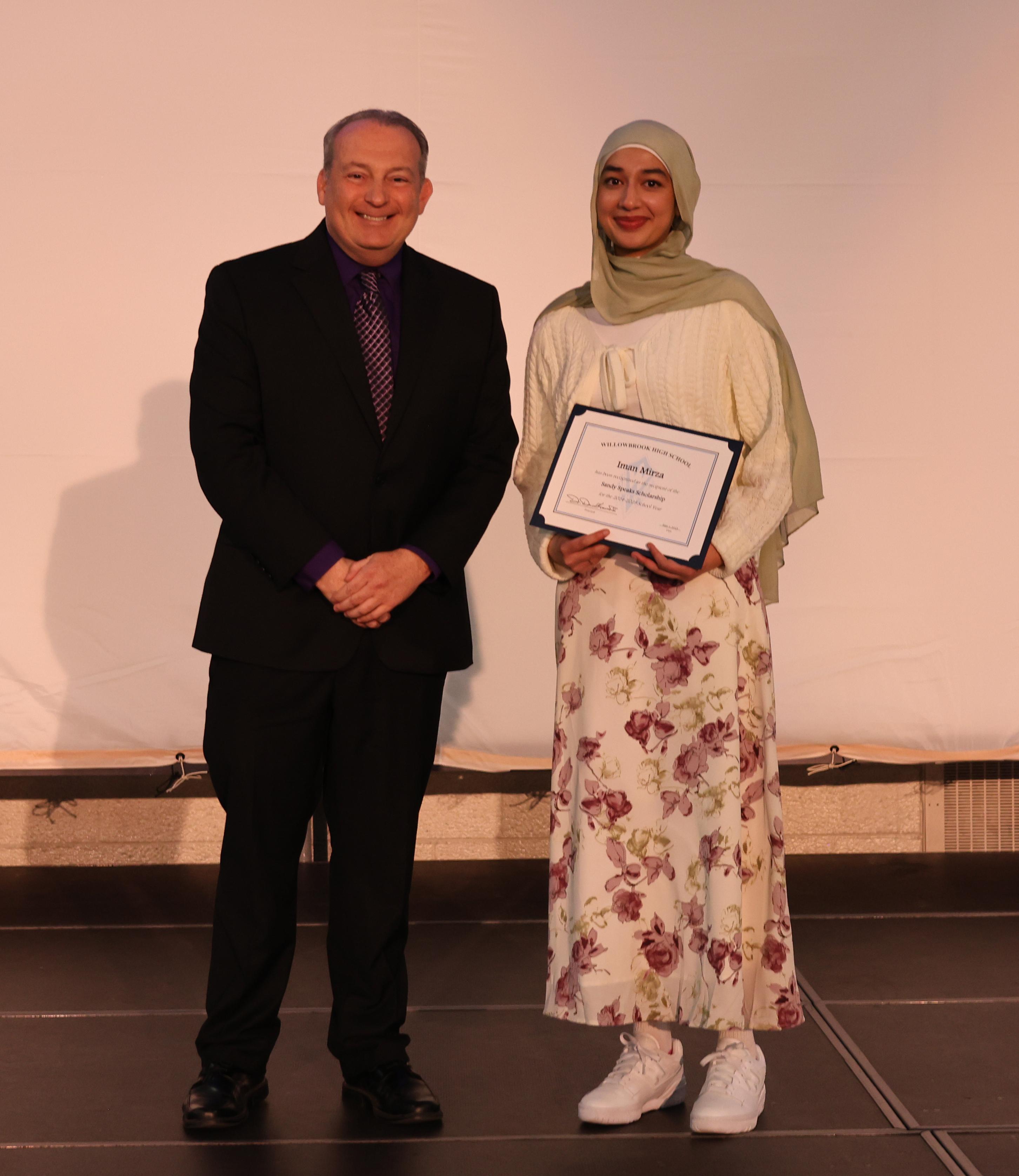 The student emcees were sophomore Mia Ojeda and junior Suha Salman. Willowbrook Principal Dr. Daniel Krause welcomed the audience to the ceremony.