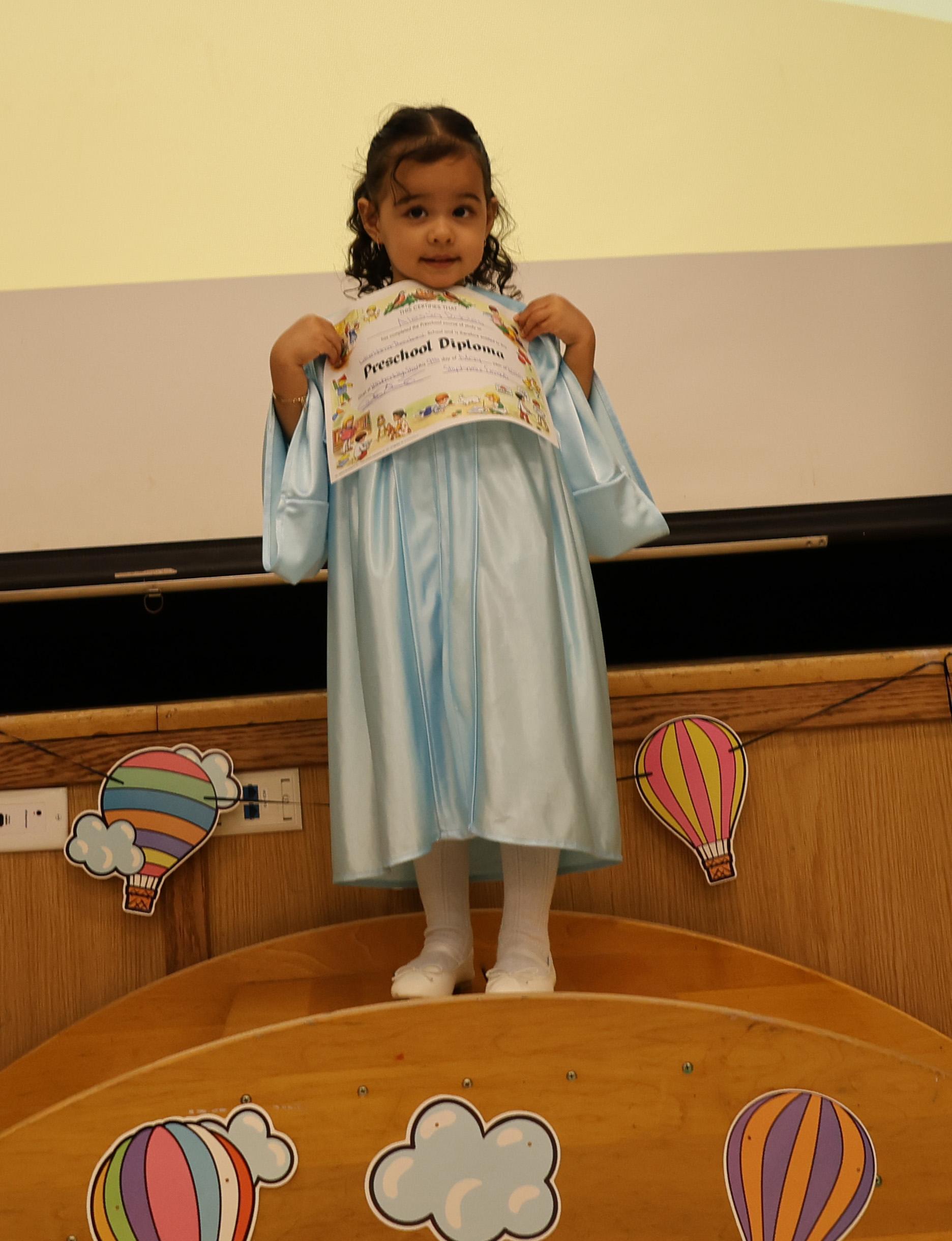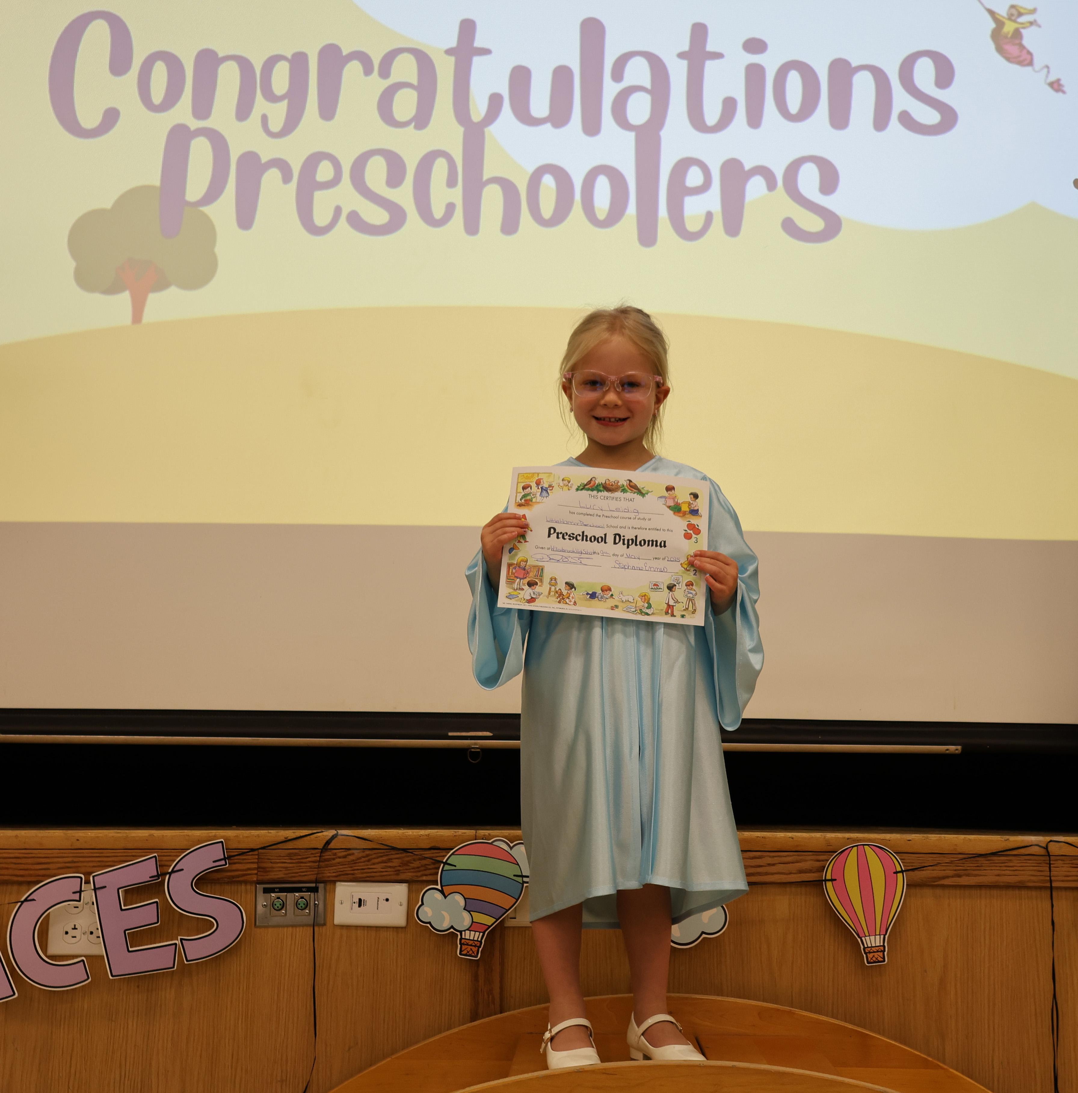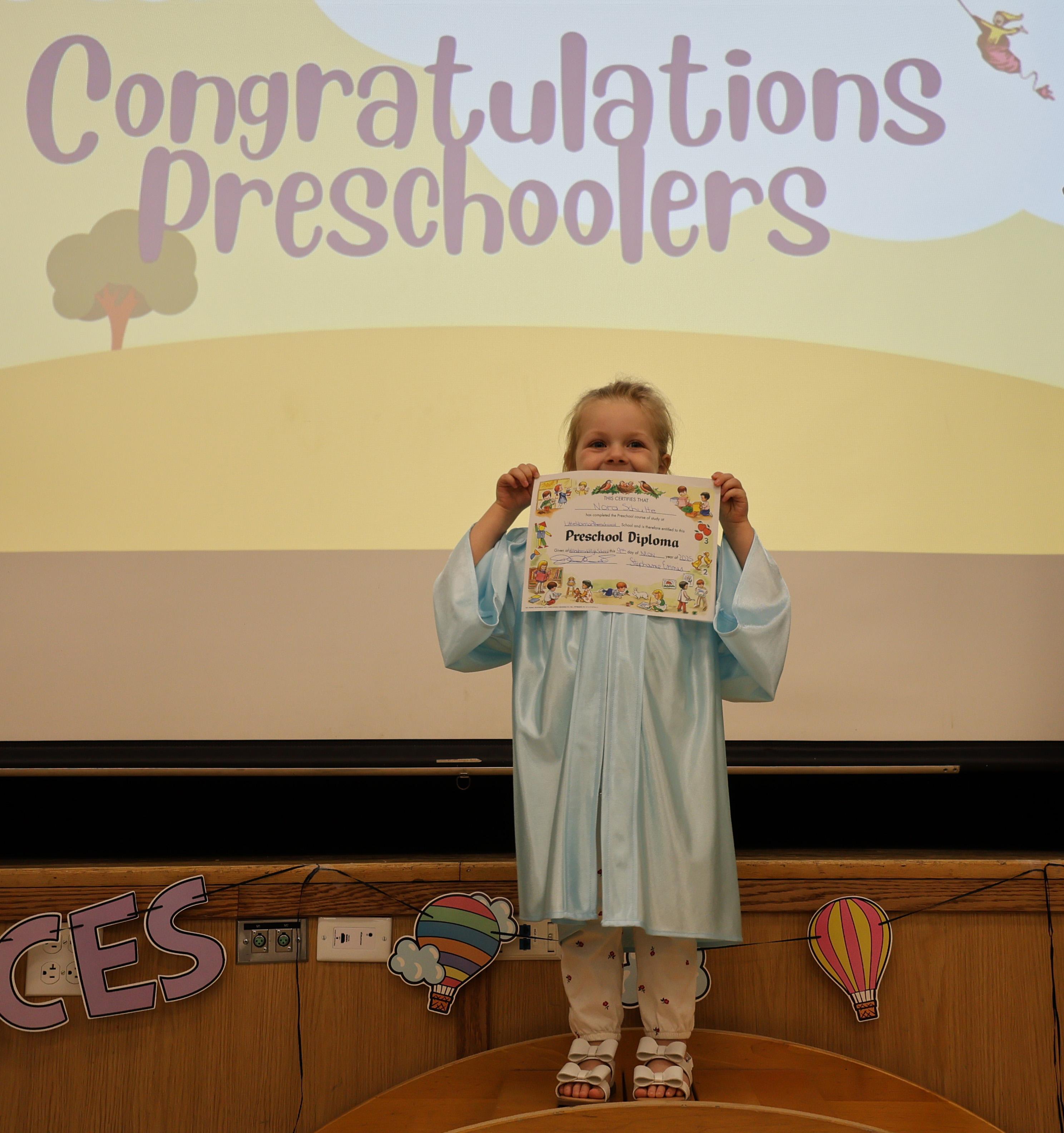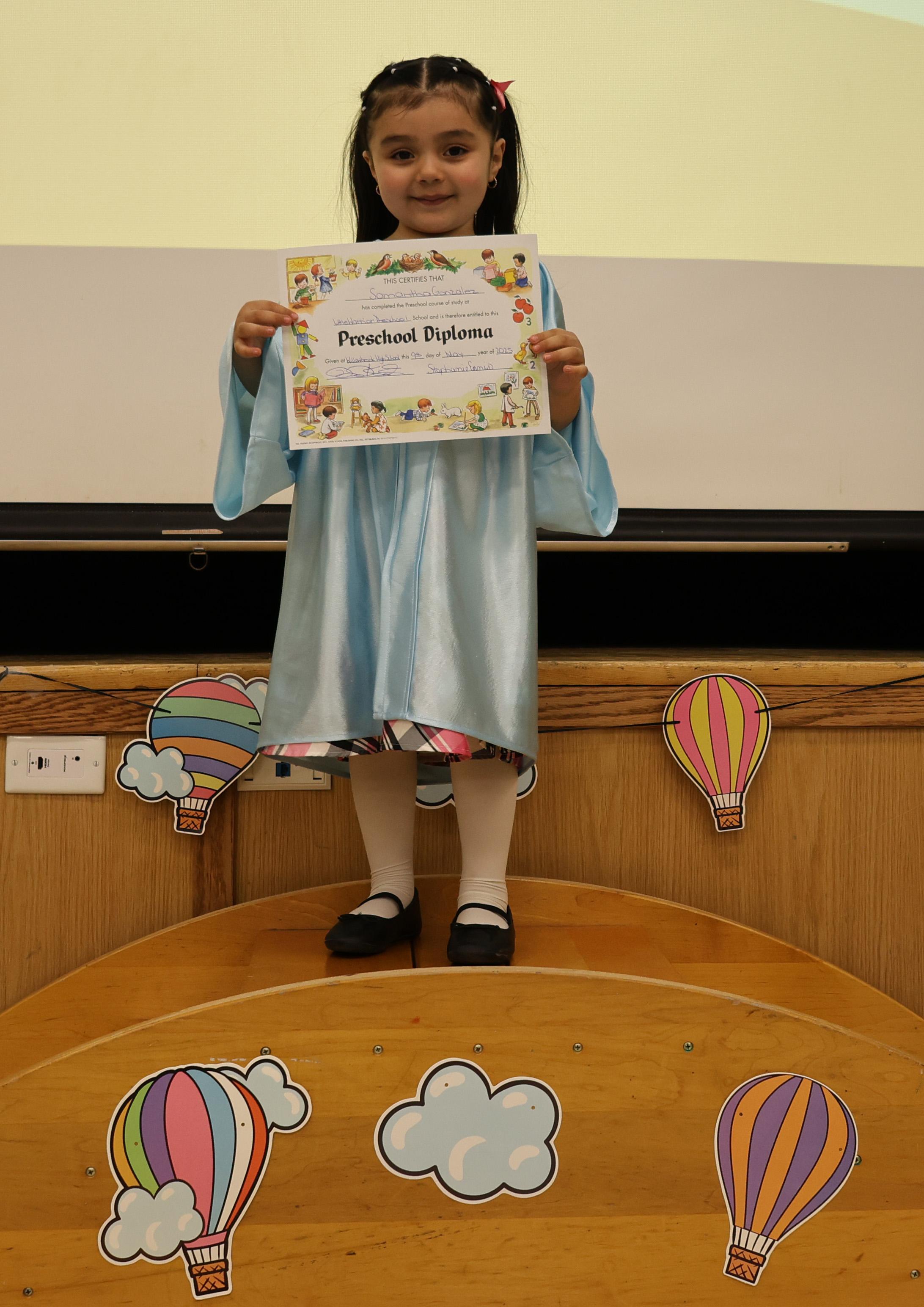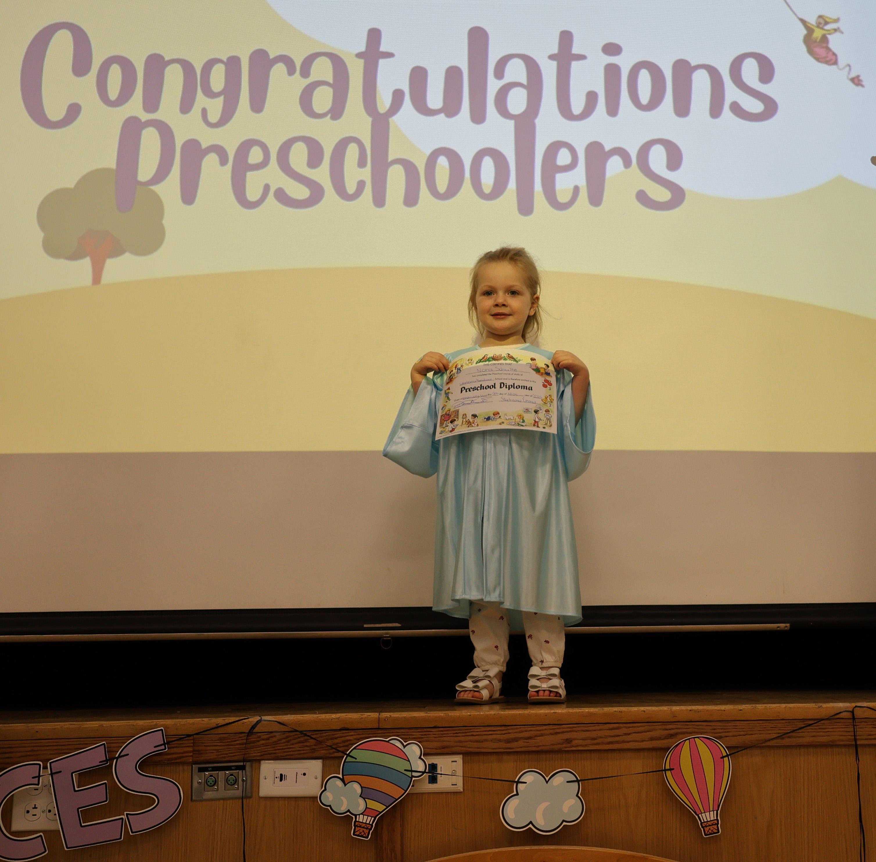 The preschoolers wore graduation caps and gowns and received a certificate for their hard work. After the ceremony, they enjoyed treats with their parents/guardians and the Willowbrook students who taught them during second semester.