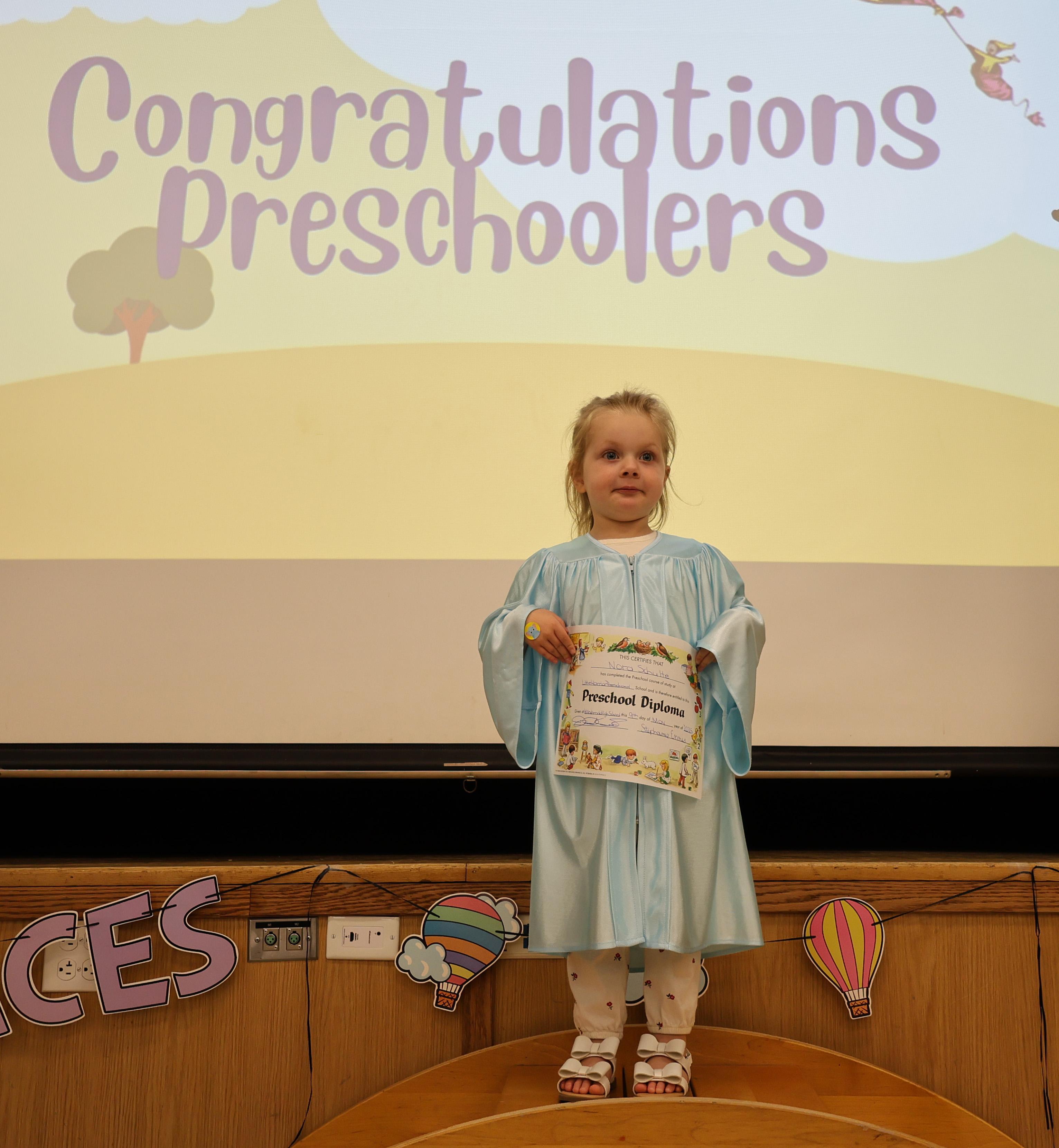 On May 9, parents/guardians and Willowbrook students and staff members gathered to celebrate the graduation of students in the school’s Little Warrior Preschool program.