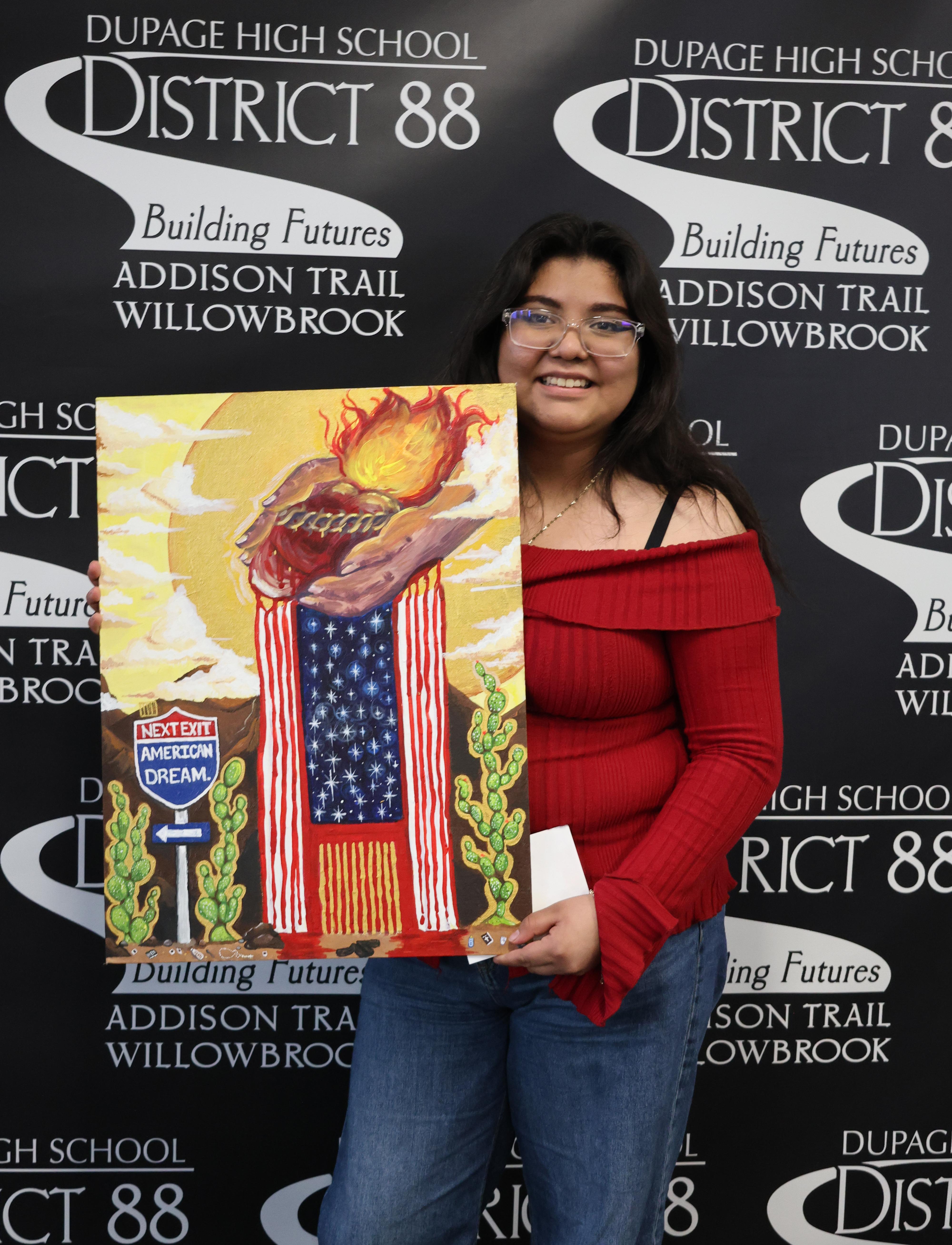 • Addison Trail: Junior Bryan Stiehm, senior Daniela Salinas (this year’s Outstanding Senior in Art) and junior Janet Simental