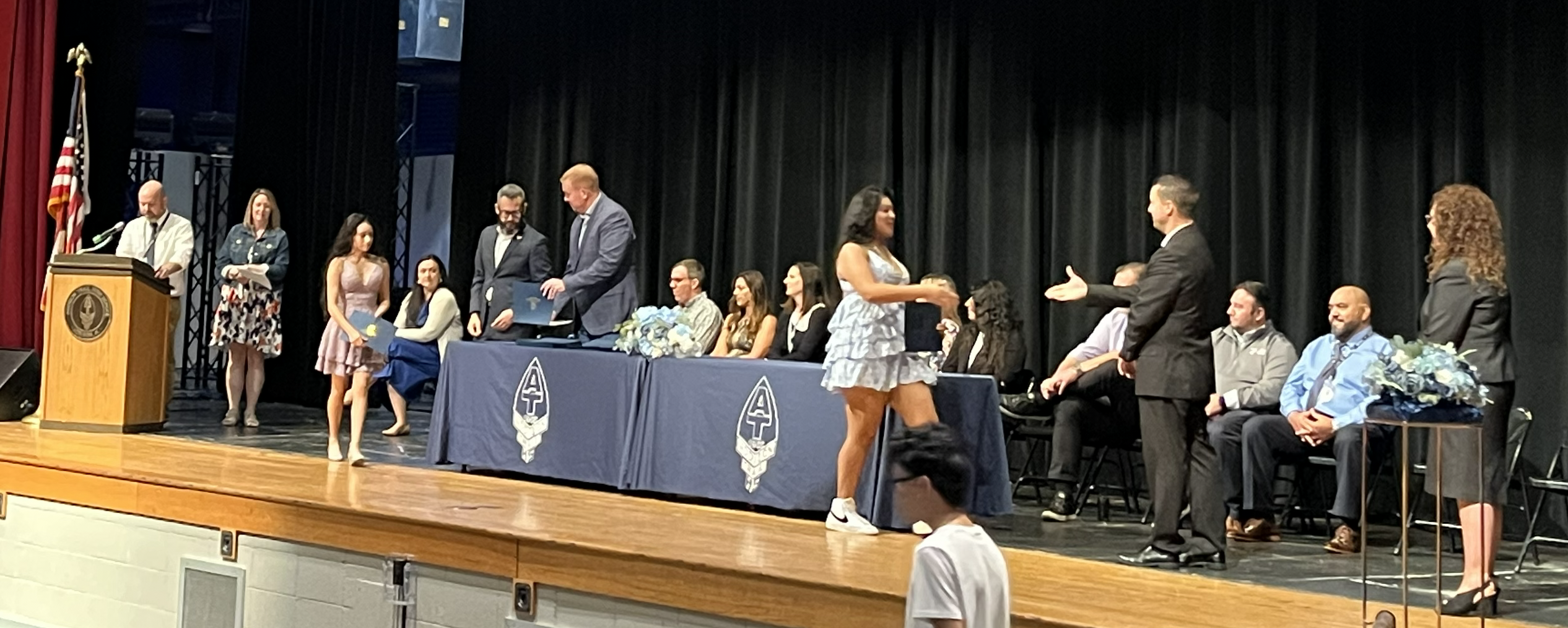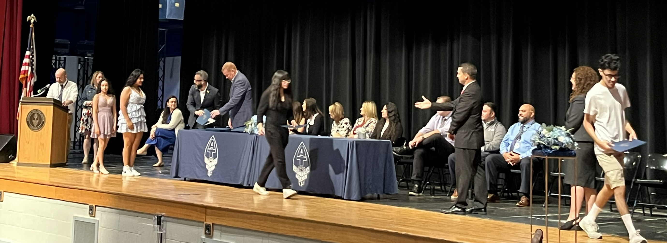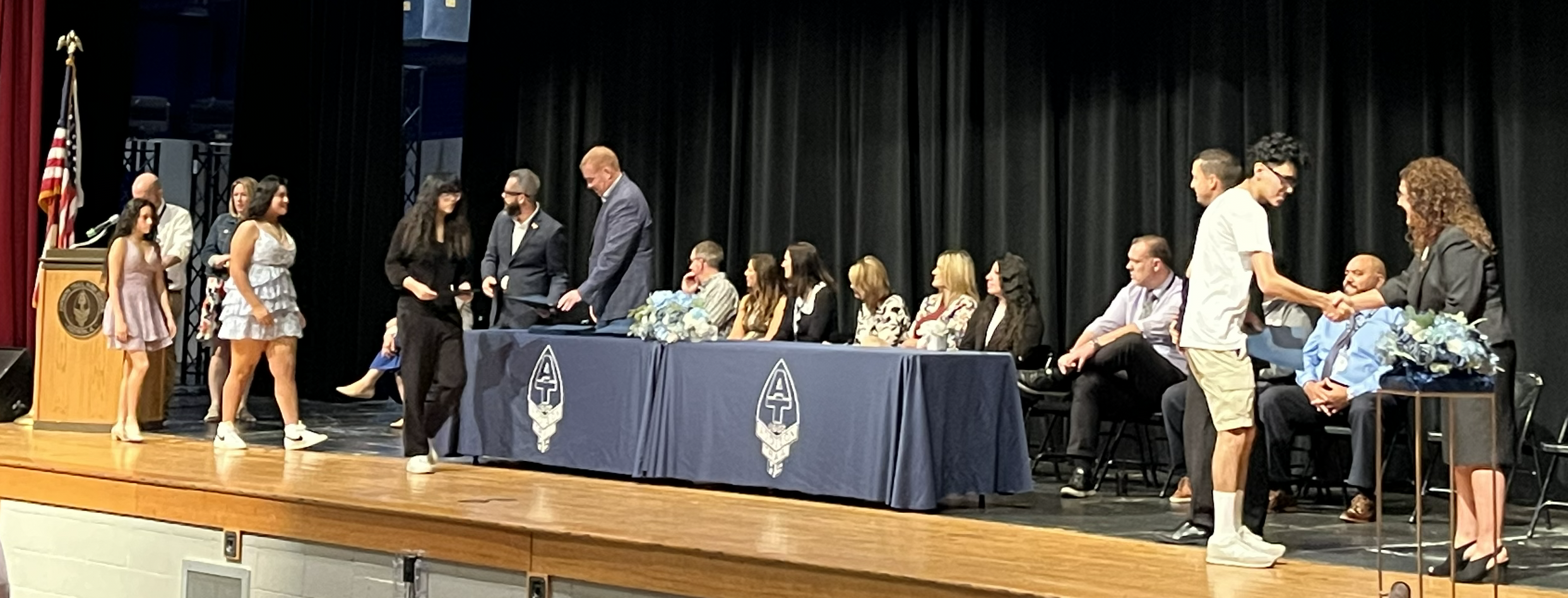 During the event, Addison Trail Principal Jack Andrews and Director of Deans Evelina Rodriguez welcomed the students and their families and congratulated the honorees on their academic success. The guest speaker was Addison Trail counselor Mario Fernandez (Co-Career Coordinator).