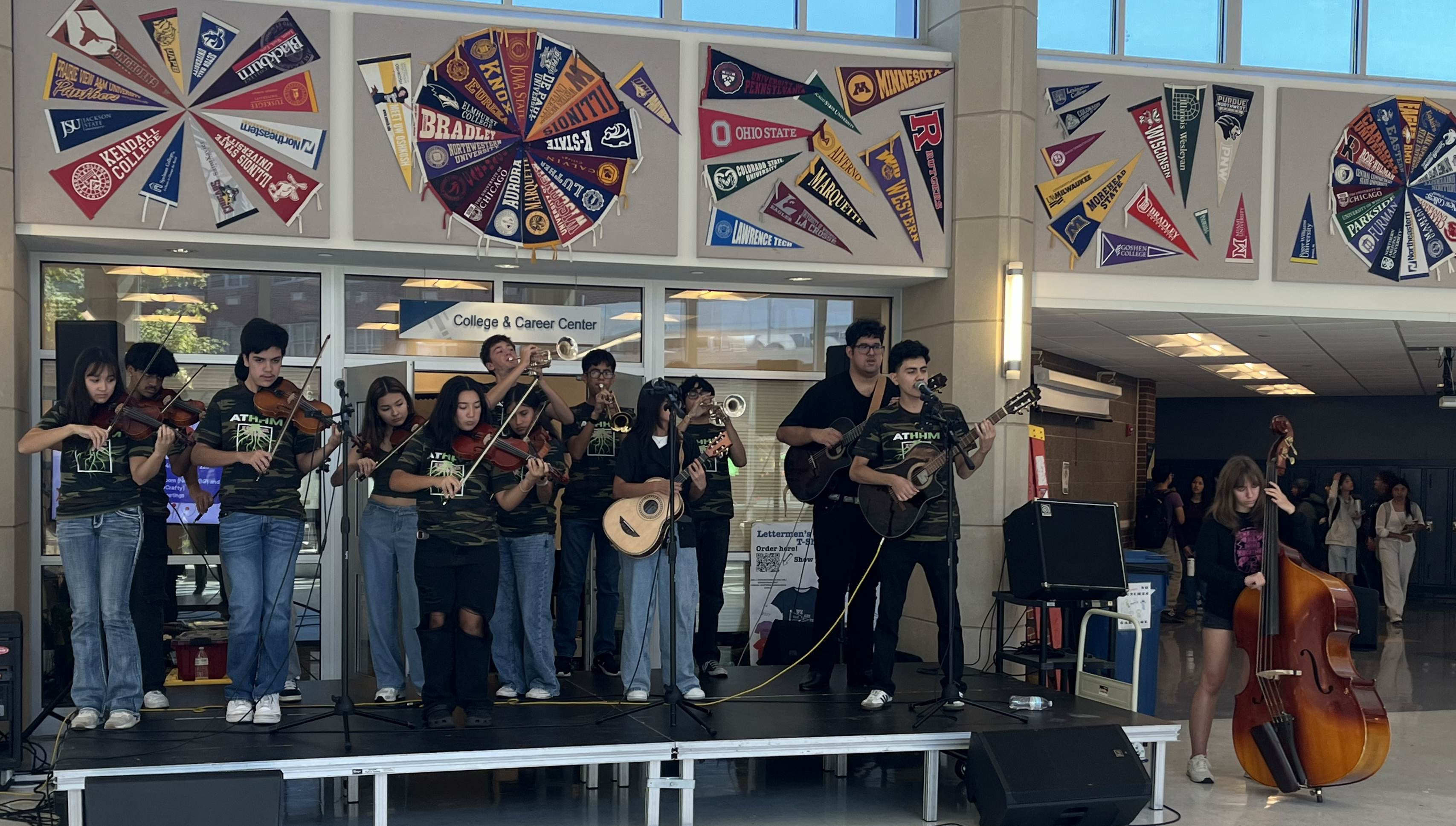 Students wore this year’s official Hispanic Heritage Month T-shirt, as they filled the commons with energy and color. The event not only highlighted the talent of Addison Trail musicians, but also served as a reminder of the school’s strong sense of community and cultural pride.