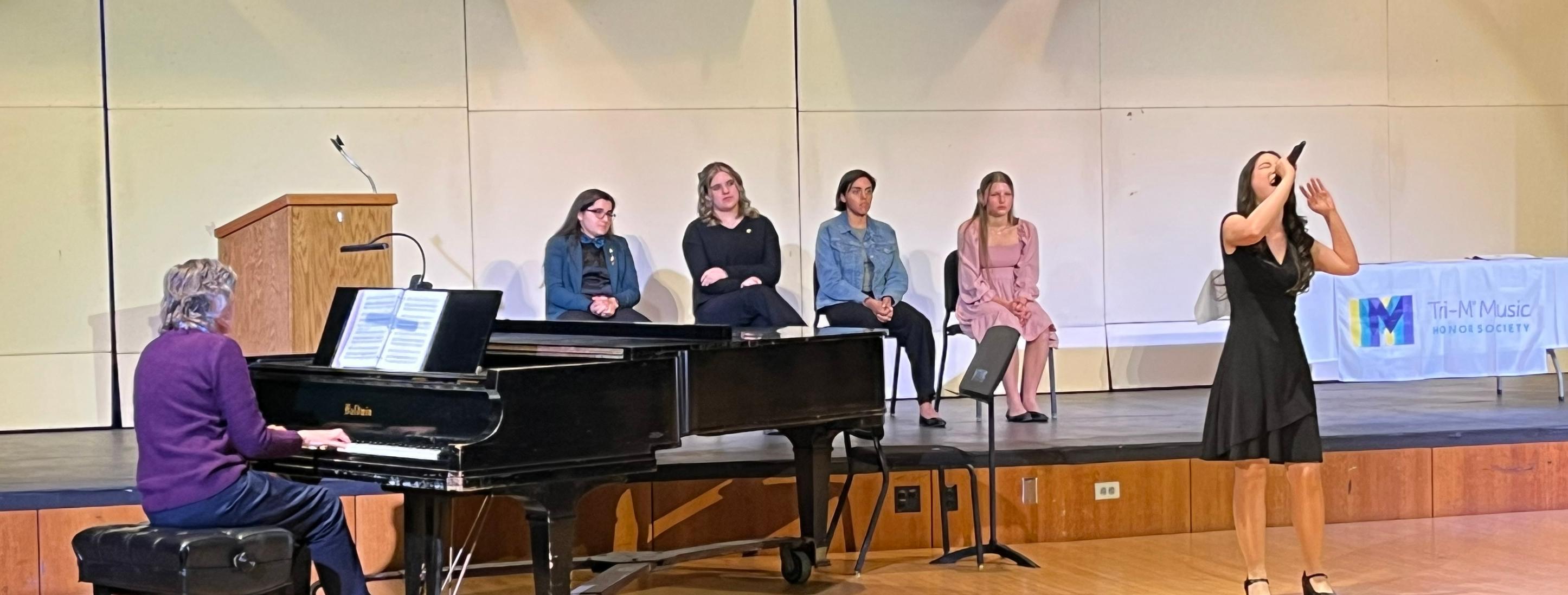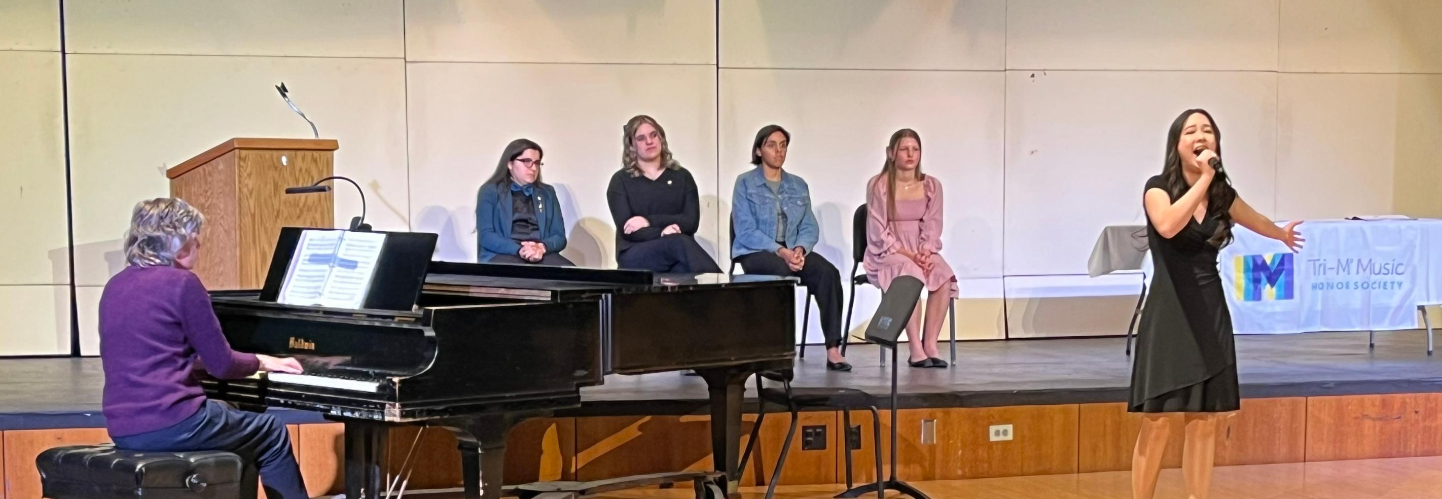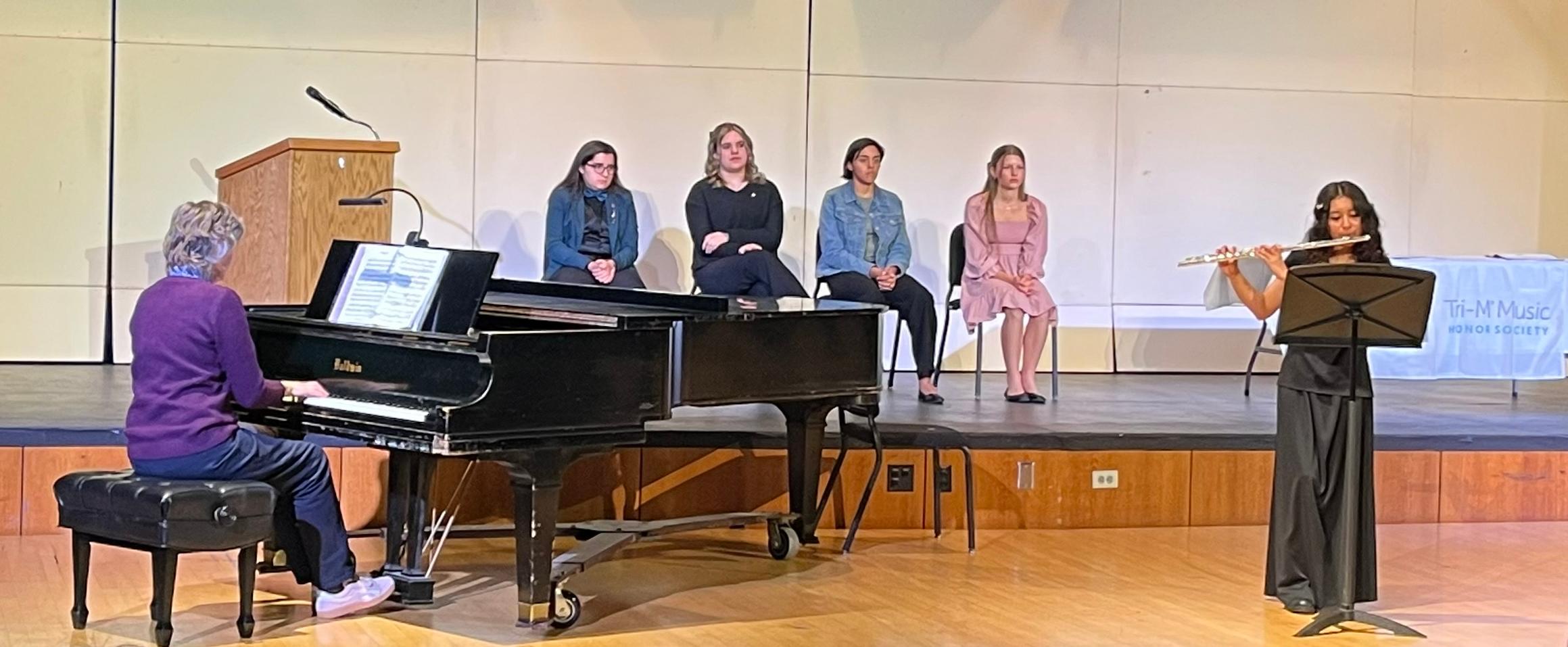 During the induction ceremony, students were welcomed and congratulated by Willowbrook Music Department Head Jan Bobek. Each inductee received a pin, a certificate and a membership card. Members performed a student recital as well.