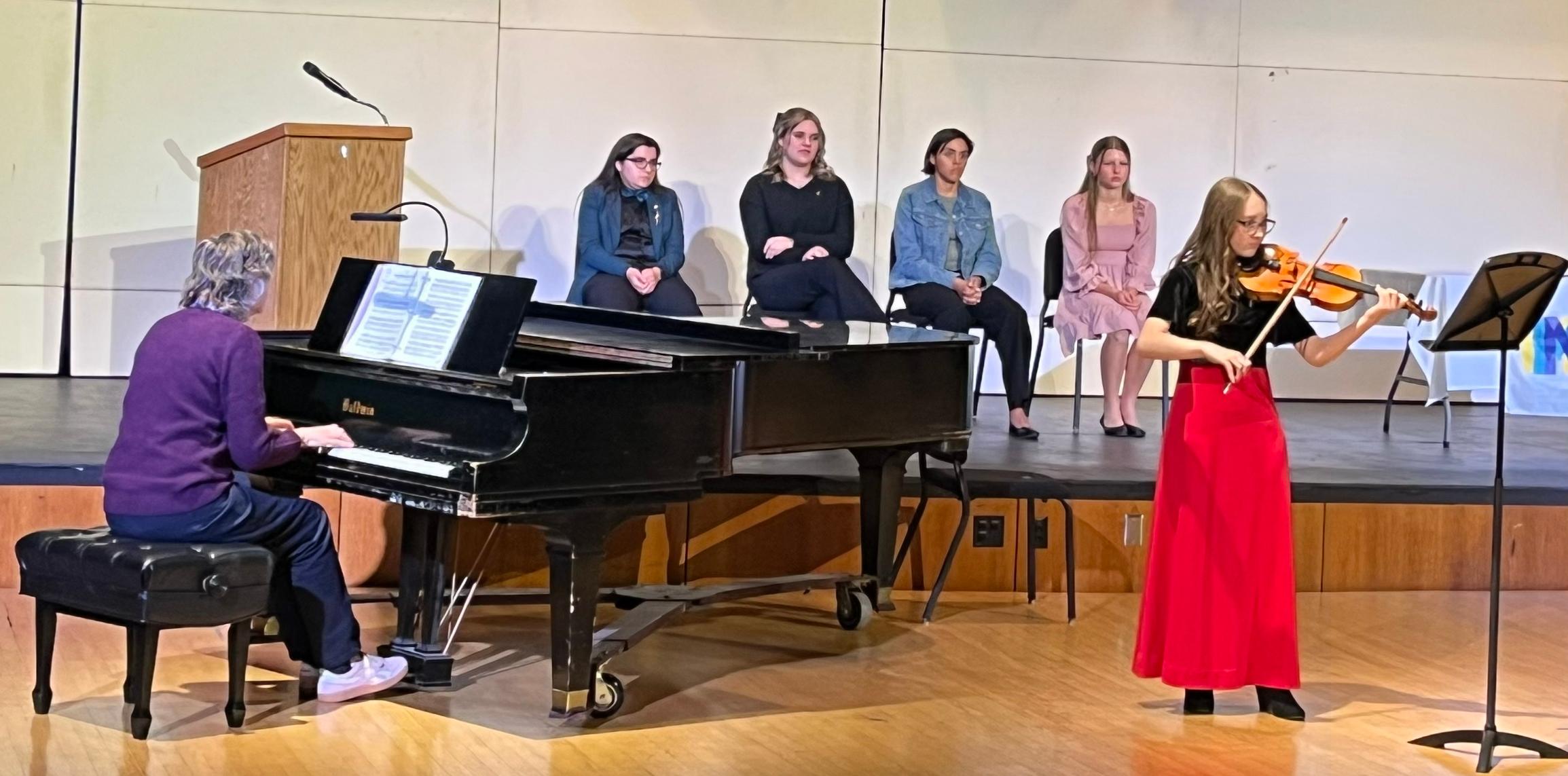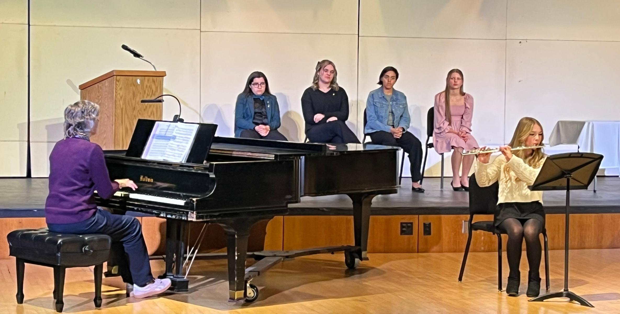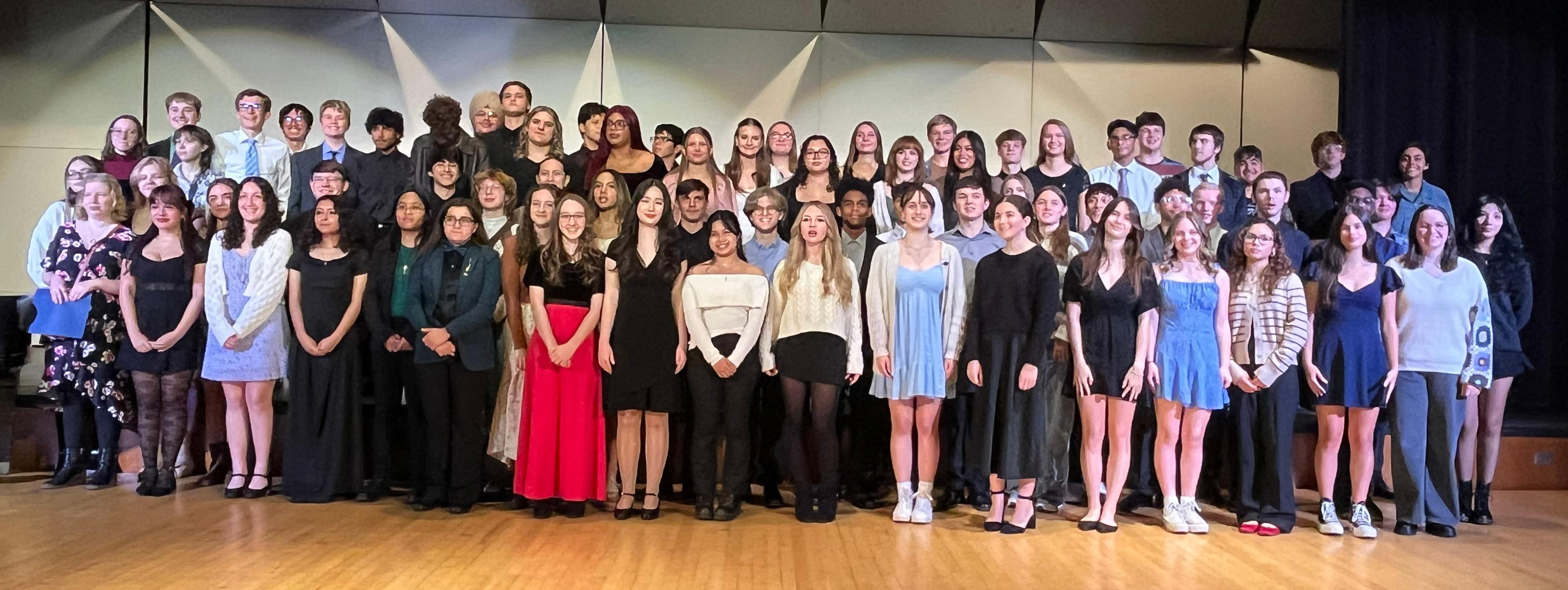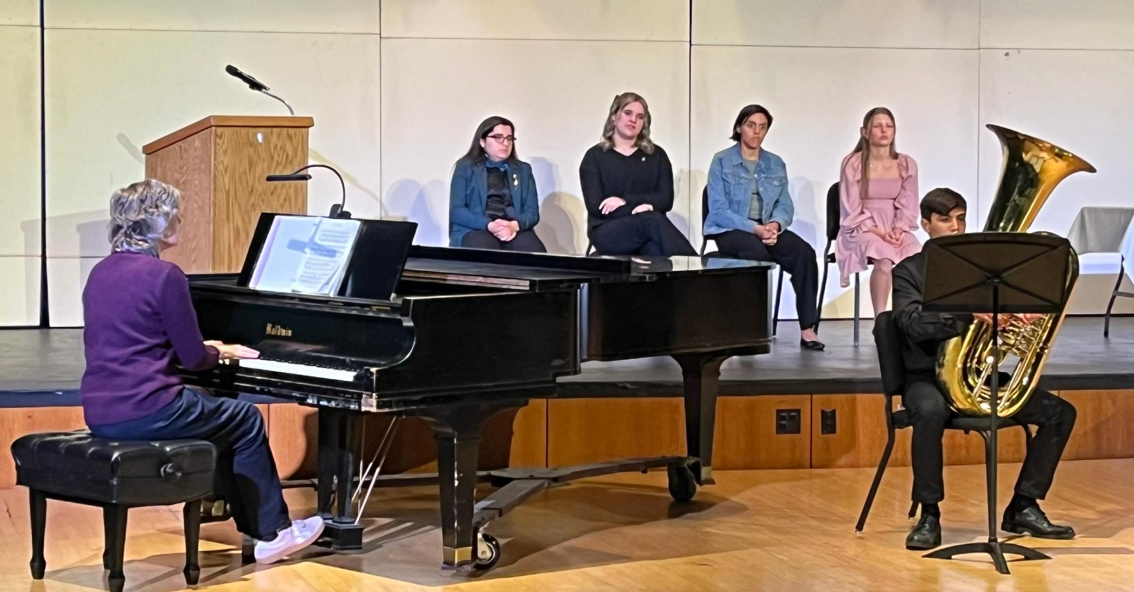 During the induction ceremony, students were welcomed and congratulated by Willowbrook Music Department Head Jan Bobek. Each inductee received a pin, a certificate and a membership card. Members performed a student recital as well.