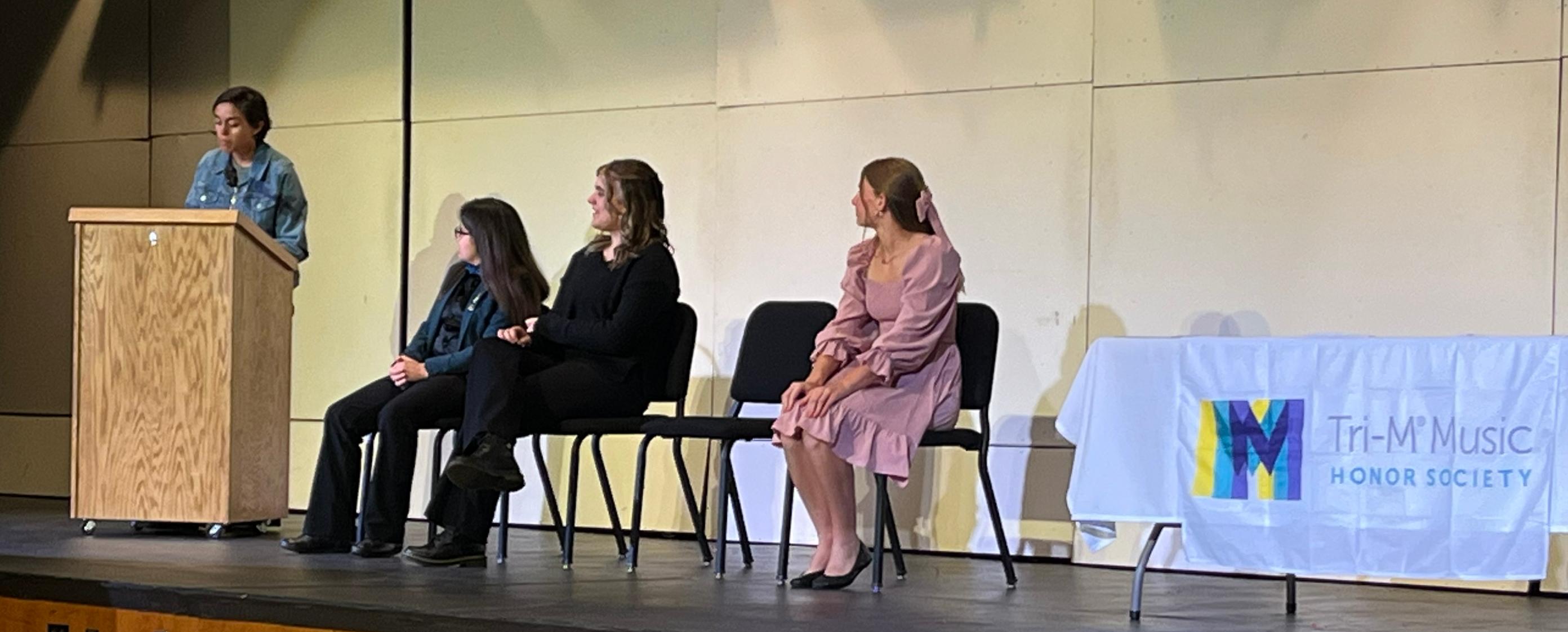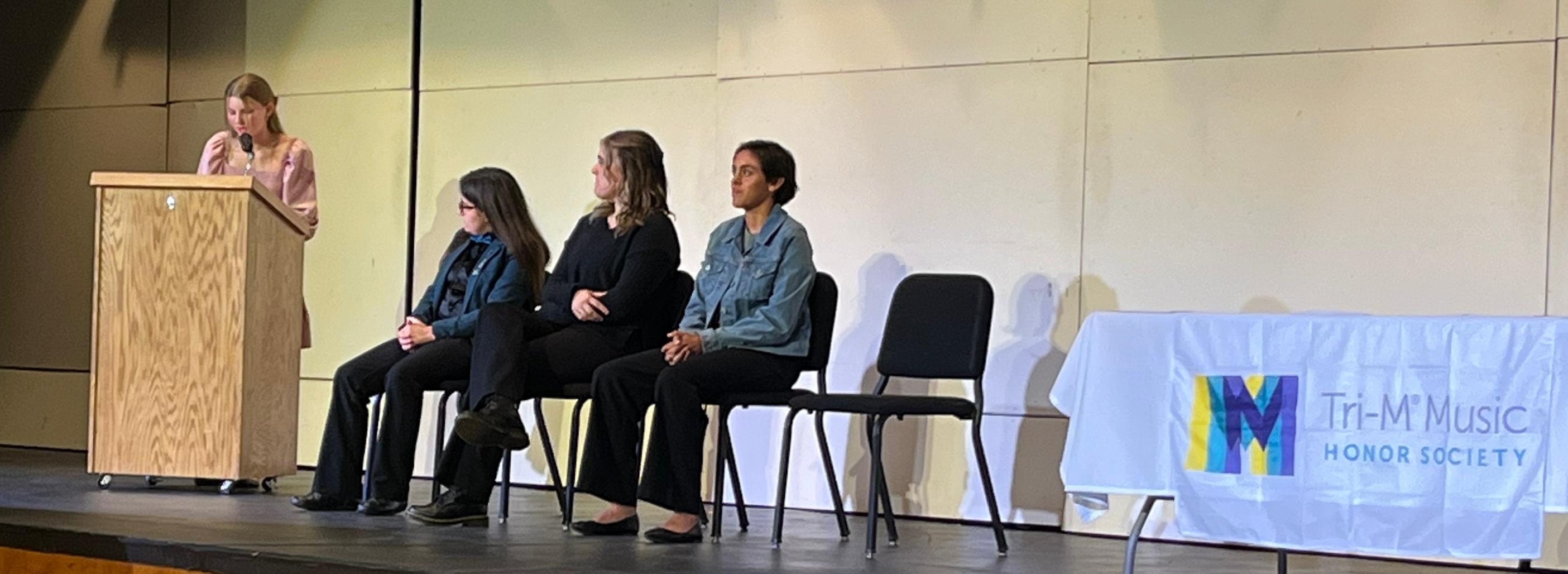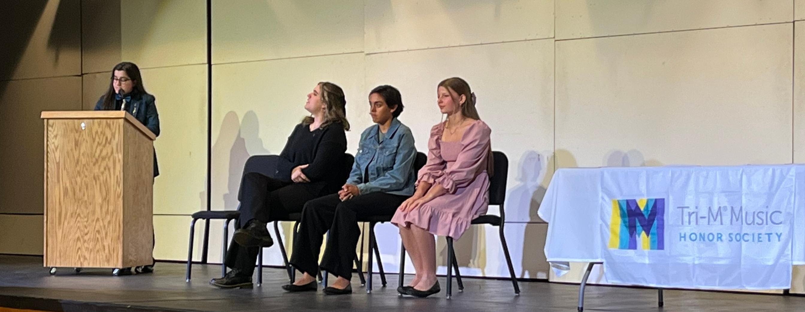 Tri-M Honor Society members are leaders in their respective performing ensembles and help at concerts, perform community and Music Department service, organize music meetings and host Music In Our Schools Month (a national event) in March.