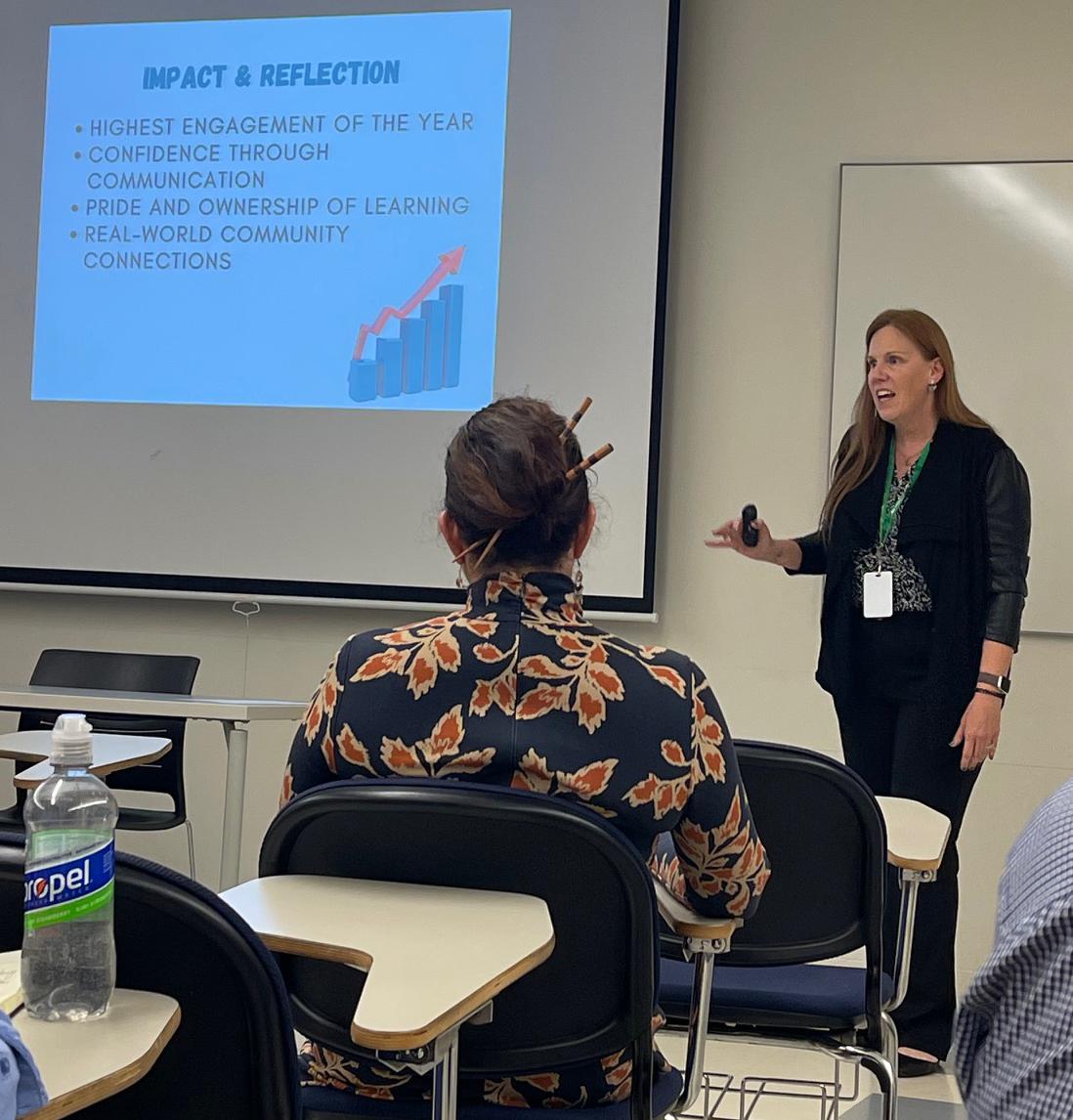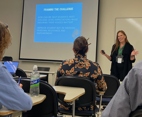On Oct. 17, Willowbrook English teacher Leslie Allenspach (pictured above) participated in the TYCAMW Conference at College of DuPage (COD).
