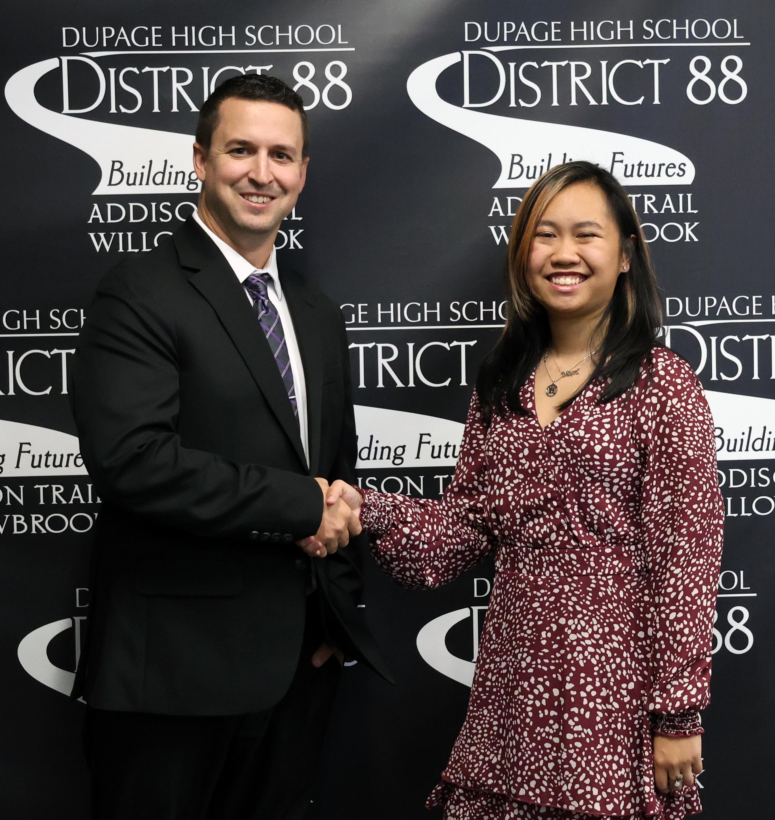 Mary-Terese Tamondong (pictured at right, with Addison Trail Principal Jack Andrews) has been named as Addison Trail’s October recipient of 88’s Best recognition for her outstanding academic accomplishments.