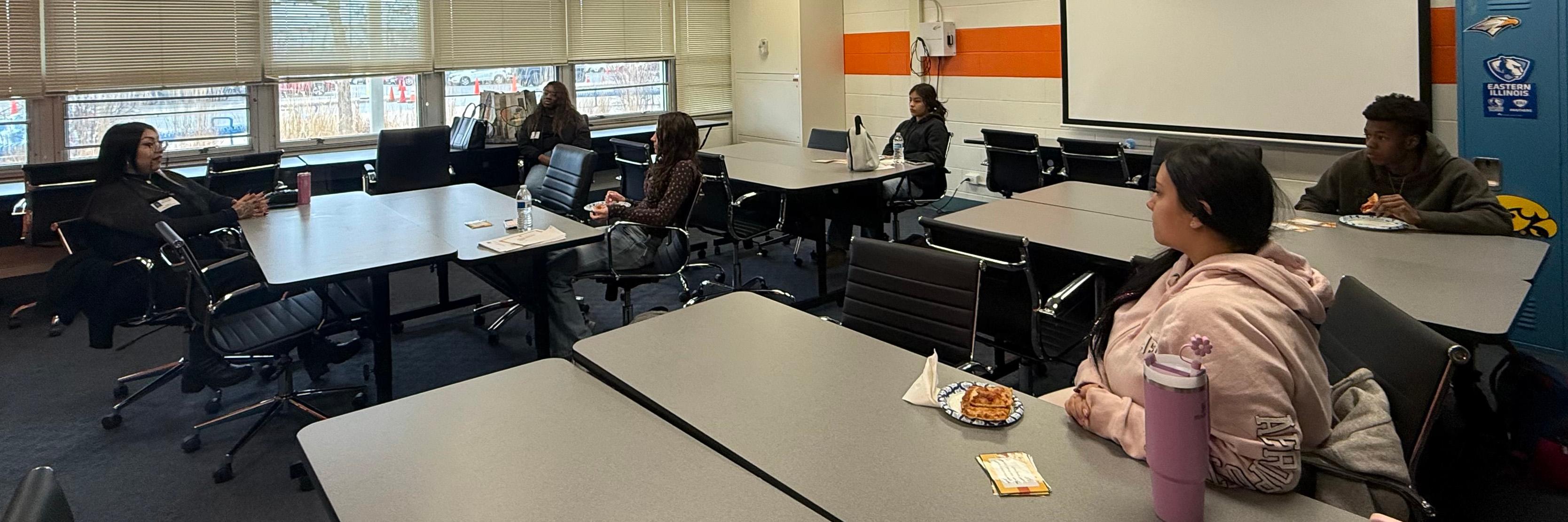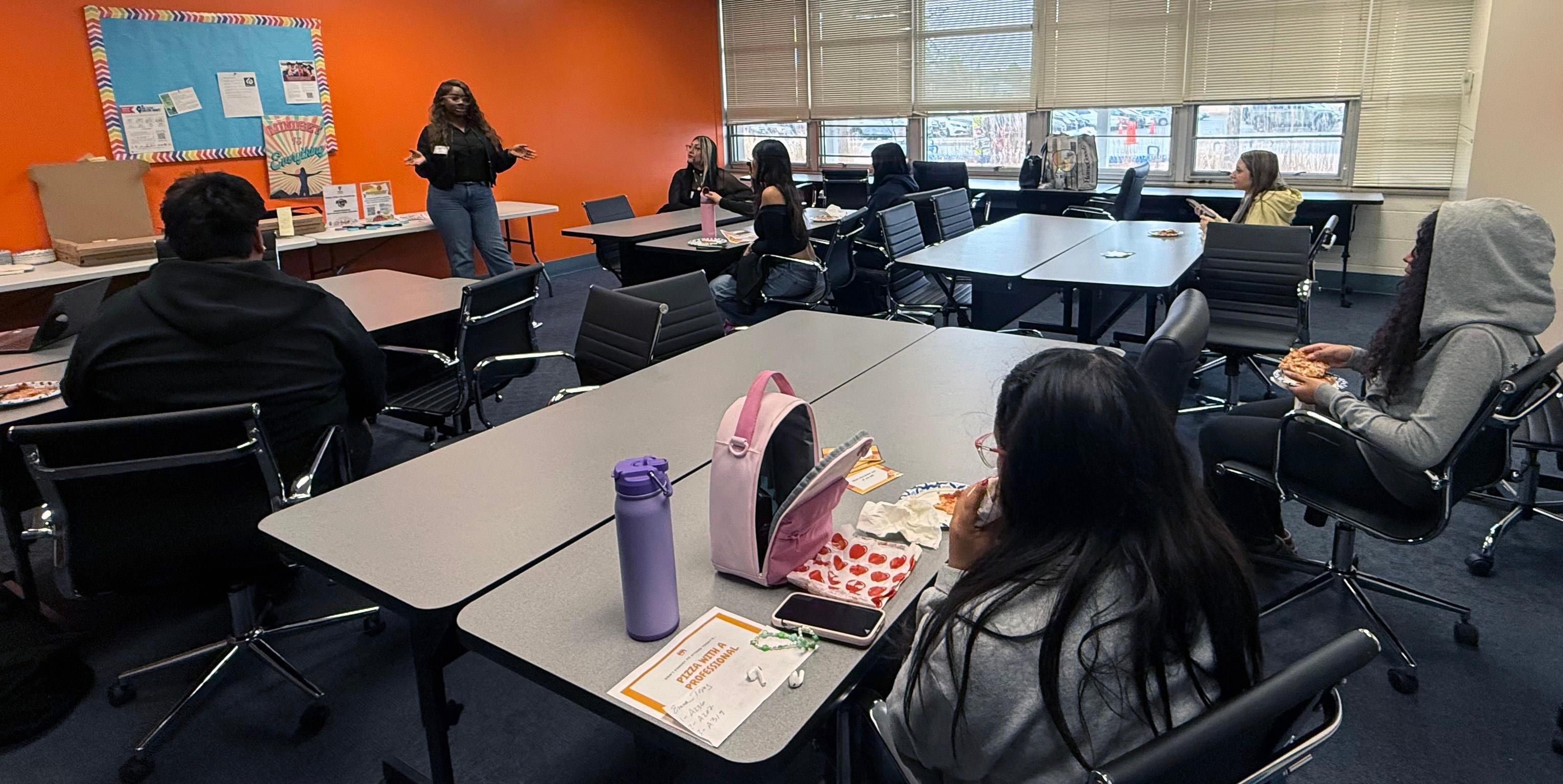 During the event, called “Pizza with a Professional,” students have the opportunity to learn directly from industry experts through inspiring lunchtime sessions that connect classroom learning to real-world careers. They are able to ask questions and speak with someone who is in the job area they have indicated an interest in pursuing.