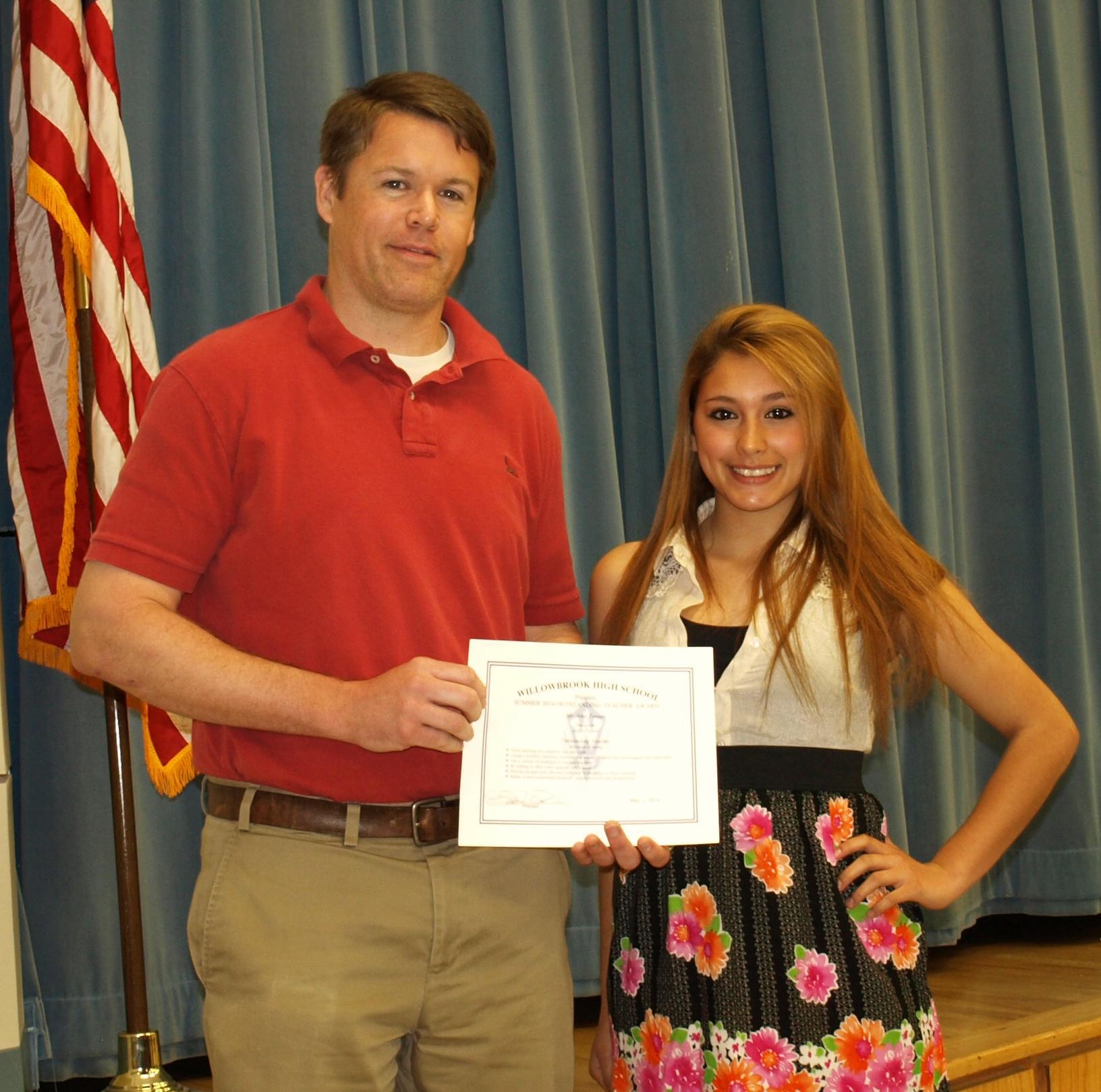 Willowbrook teacher John Fouser received the Outstanding Teacher award and was presented by Willowbrook sophomore Jodie Bush.