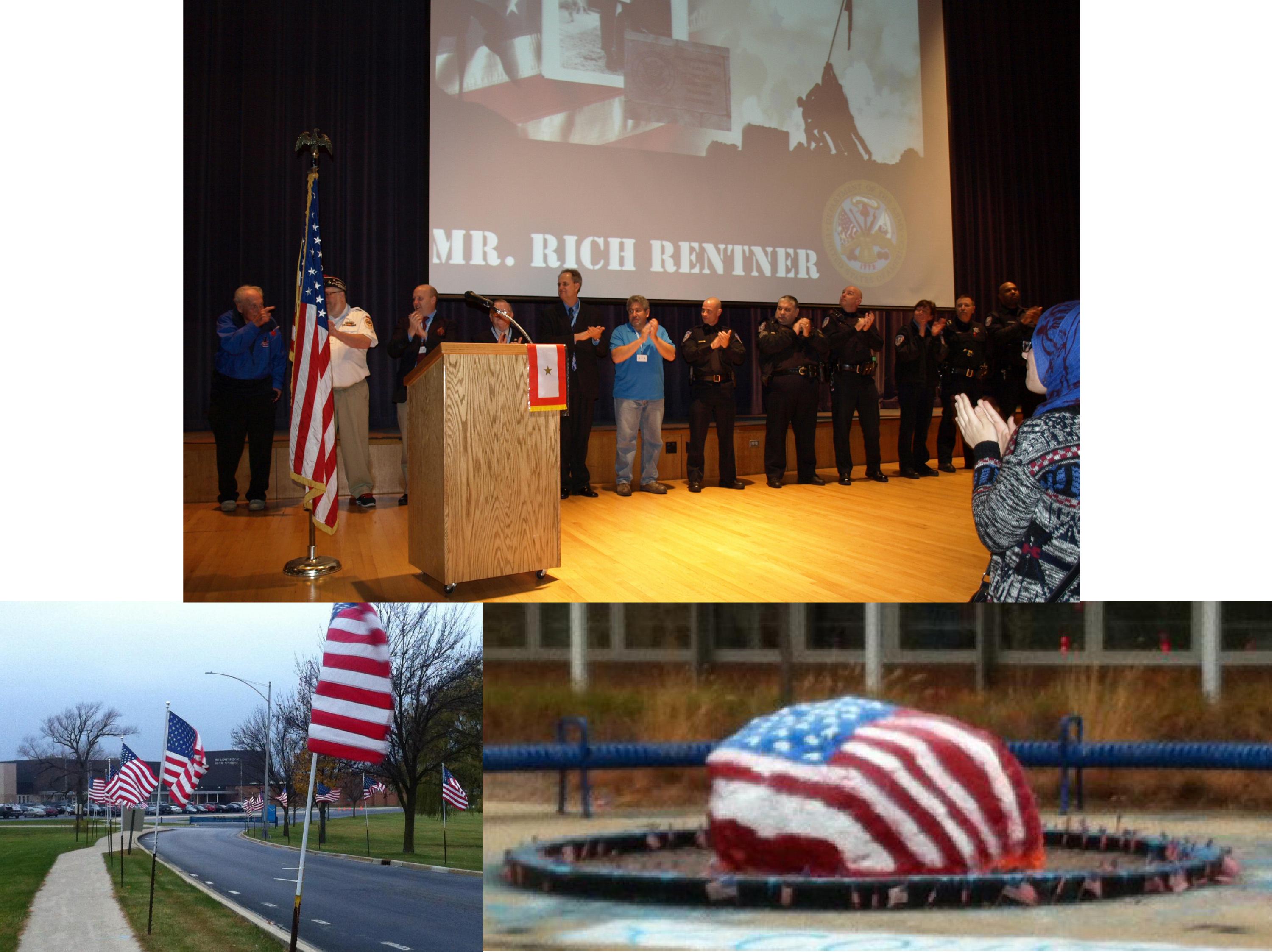 On Nov. 7, Addison Trail invited members of the Veterans of Foreign Wars (VFW) Post 7446 in Addison, the DeVry Military Resource Club, the Addison Police Department and the Addison Fire Protection District to attend a luncheon in their honor. During the event, about 25 local veterans and first responders enjoyed a lunch and a Veterans Day video. A collage honoring soldiers with a connection to Addison Trail also was displayed in the halls and the media center at the school.