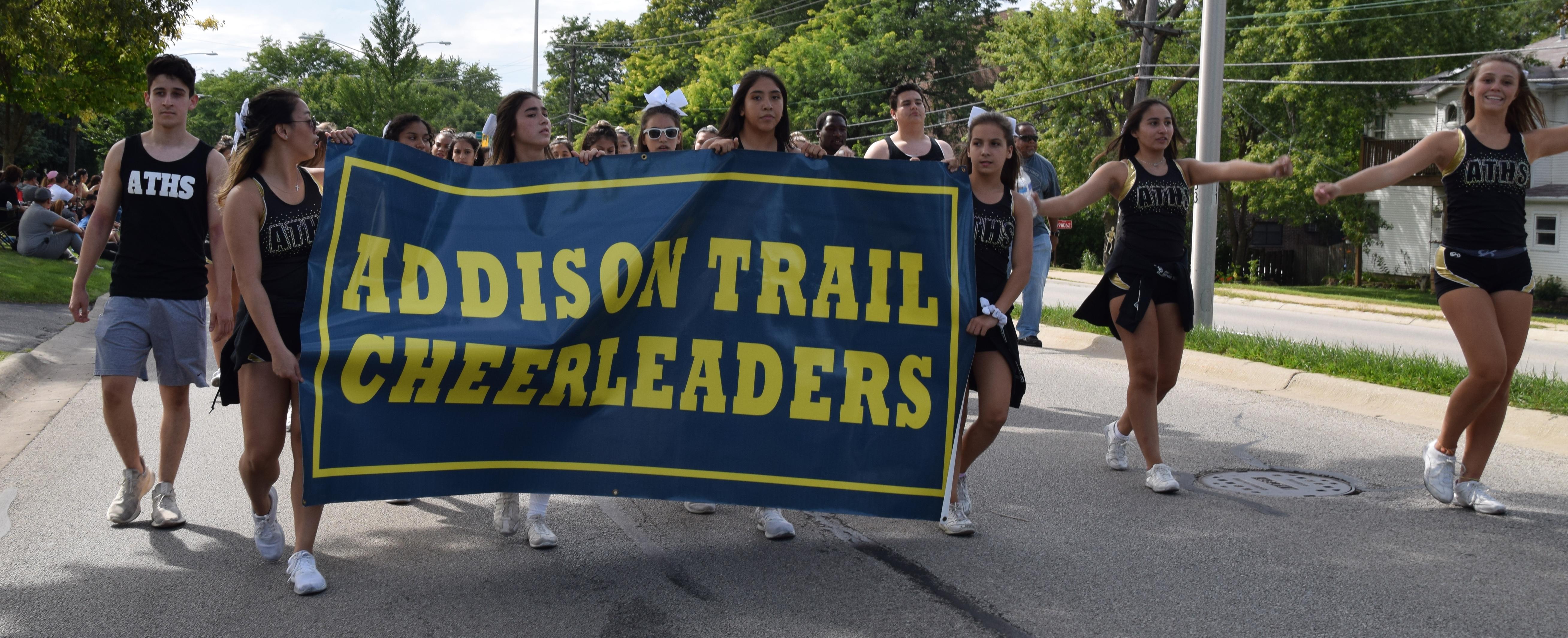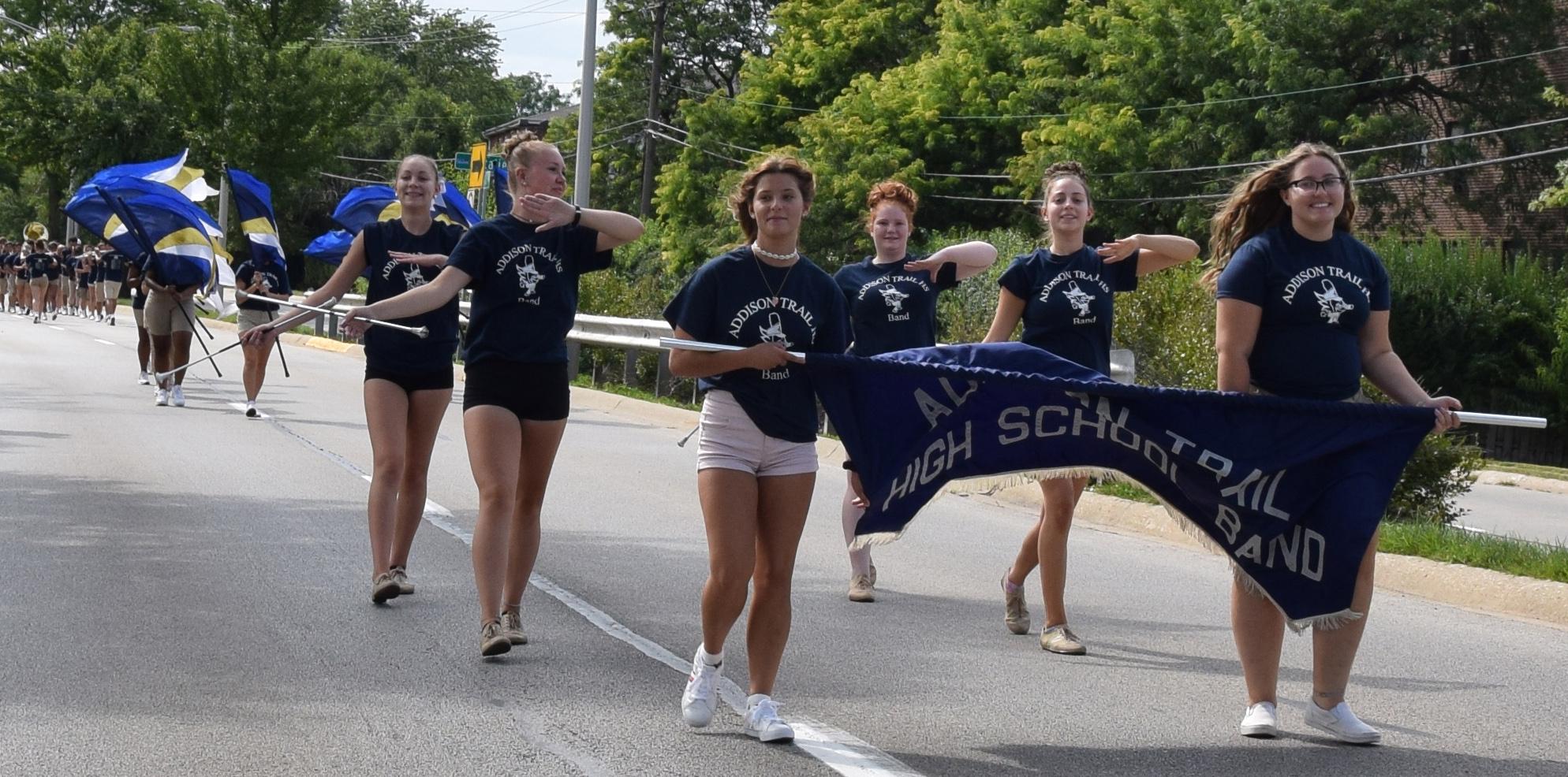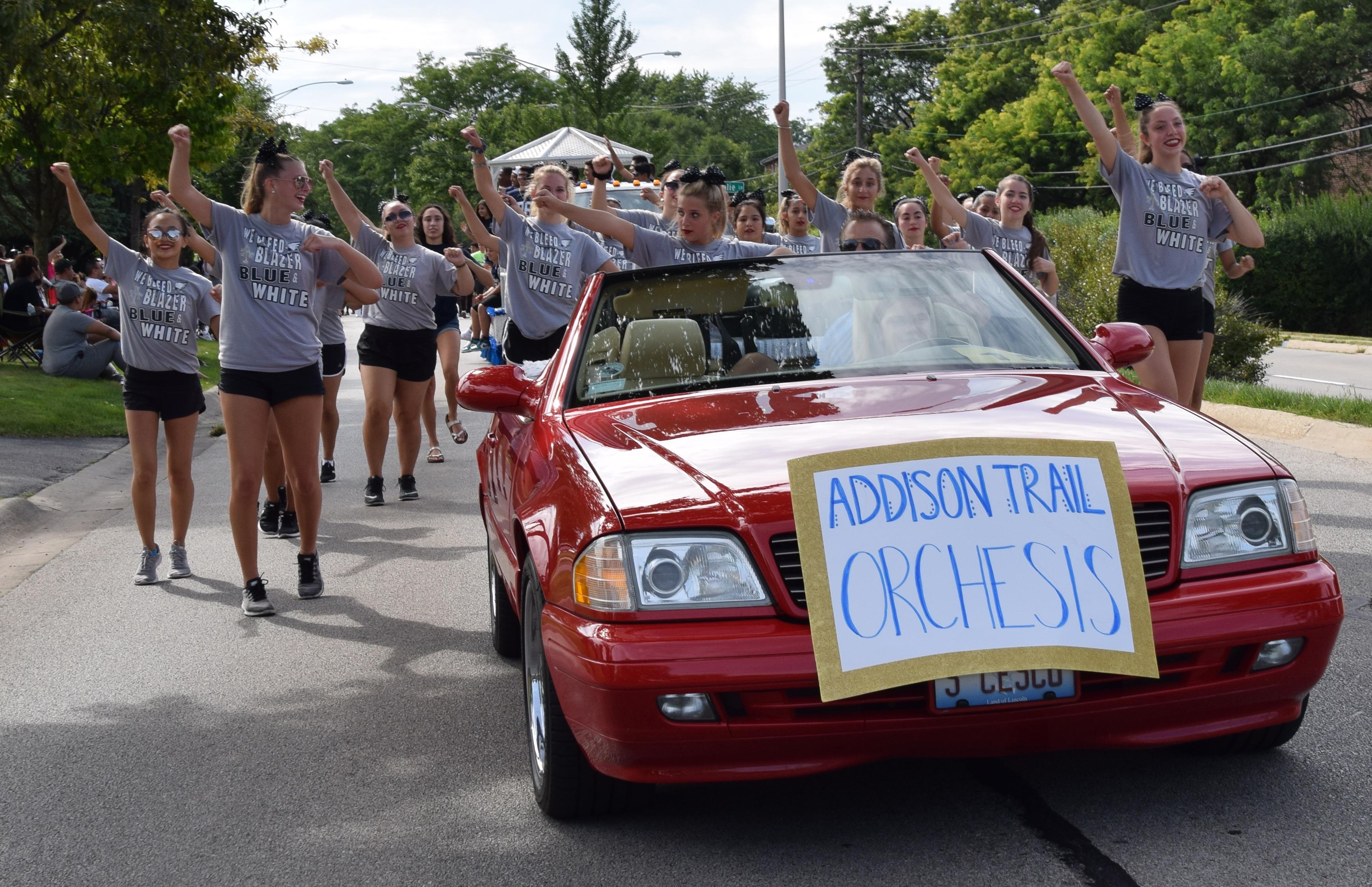 This was the second village-wide parade since 2008, and the Grand Marshal was former Village Trustee Joe McDermott and his wife, Kathy. Addison Trail was well-represented, as members of the Marching Band, Color Guard, Orchesis Team, Cheerleaders, Blazettes, Boys Soccer Team, Football Team, Student Council and the Village of Addison Sister Cities (represented by the Addison Trail Italian Club) marched and performed during the event. The parade featured 55 community units, plus units provided by the Shriners.