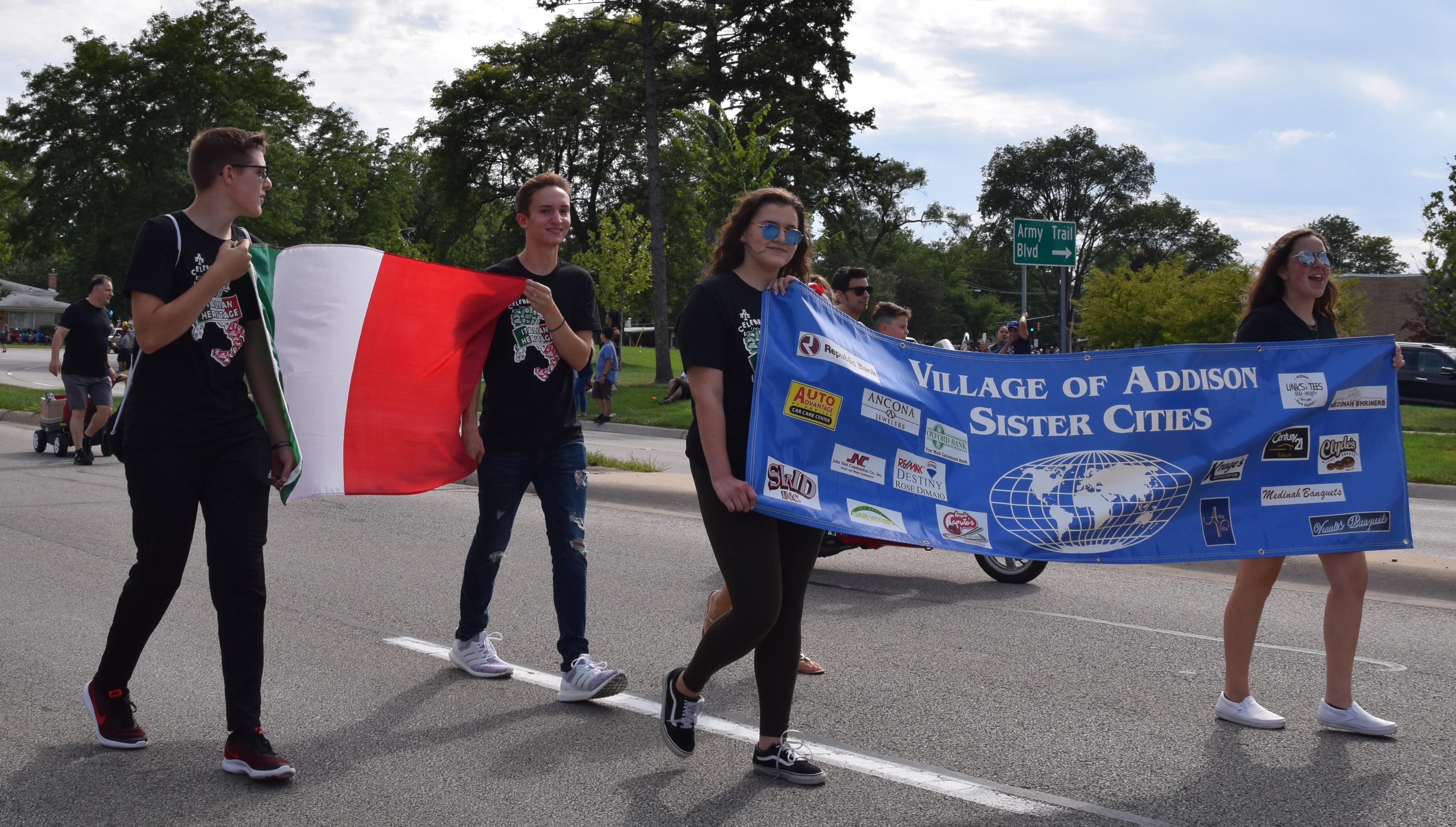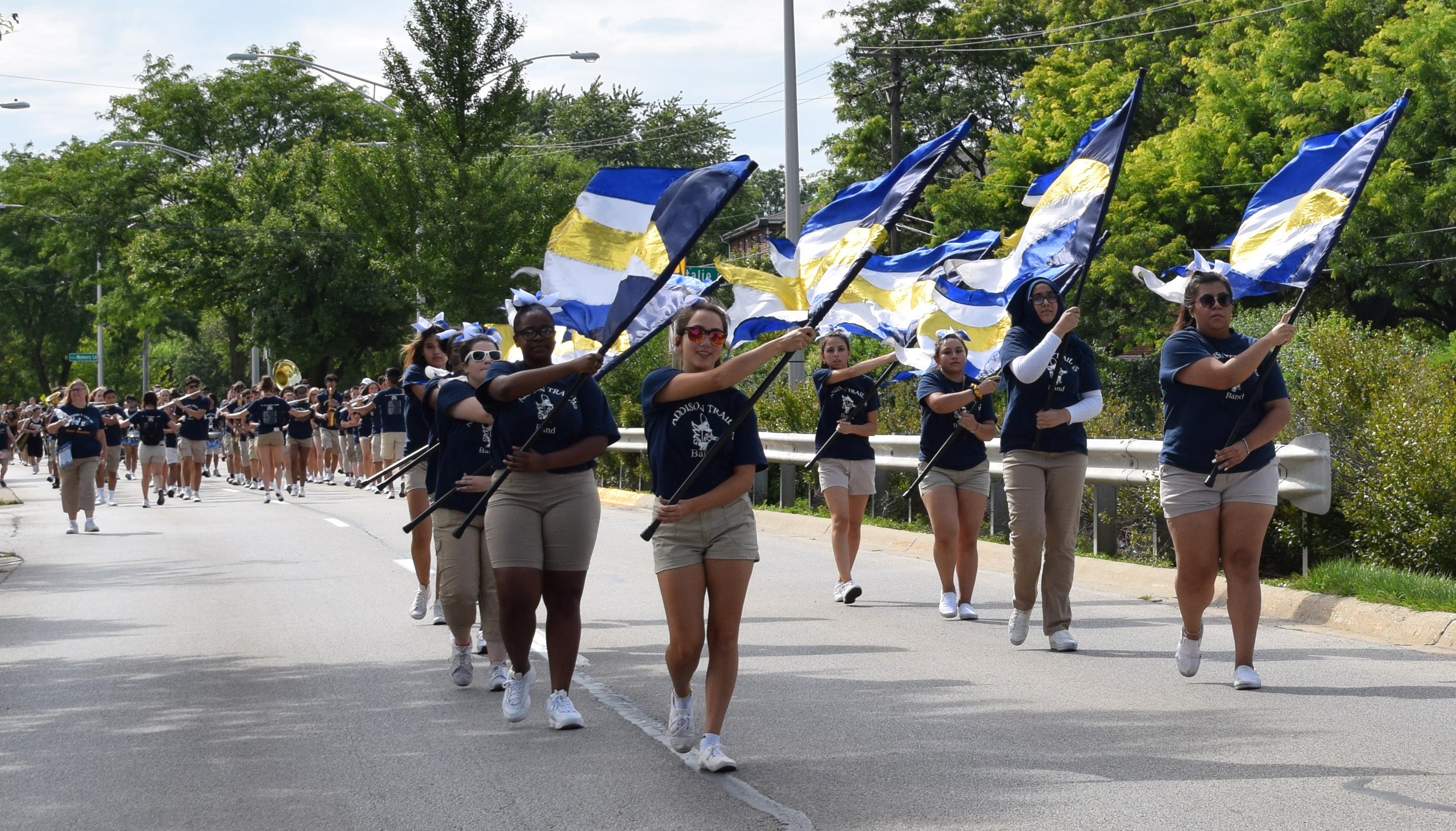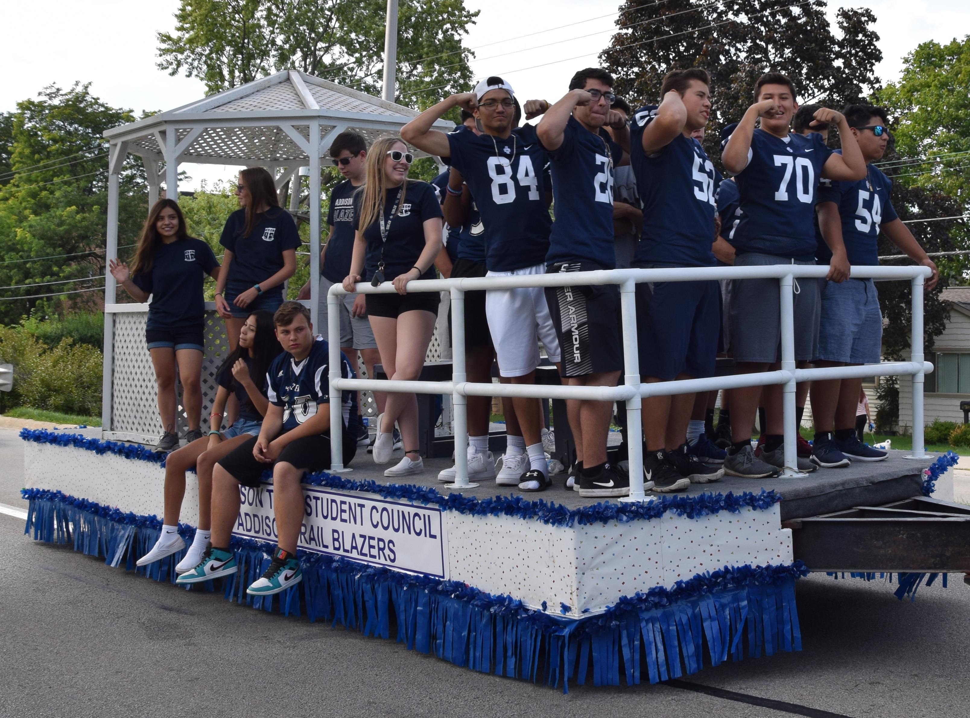 This was the second village-wide parade since 2008, and the Grand Marshal was former Village Trustee Joe McDermott and his wife, Kathy. Addison Trail was well-represented, as members of the Marching Band, Color Guard, Orchesis Team, Cheerleaders, Blazettes, Boys Soccer Team, Football Team, Student Council and the Village of Addison Sister Cities (represented by the Addison Trail Italian Club) marched and performed during the event. The parade featured 55 community units, plus units provided by the Shriners.