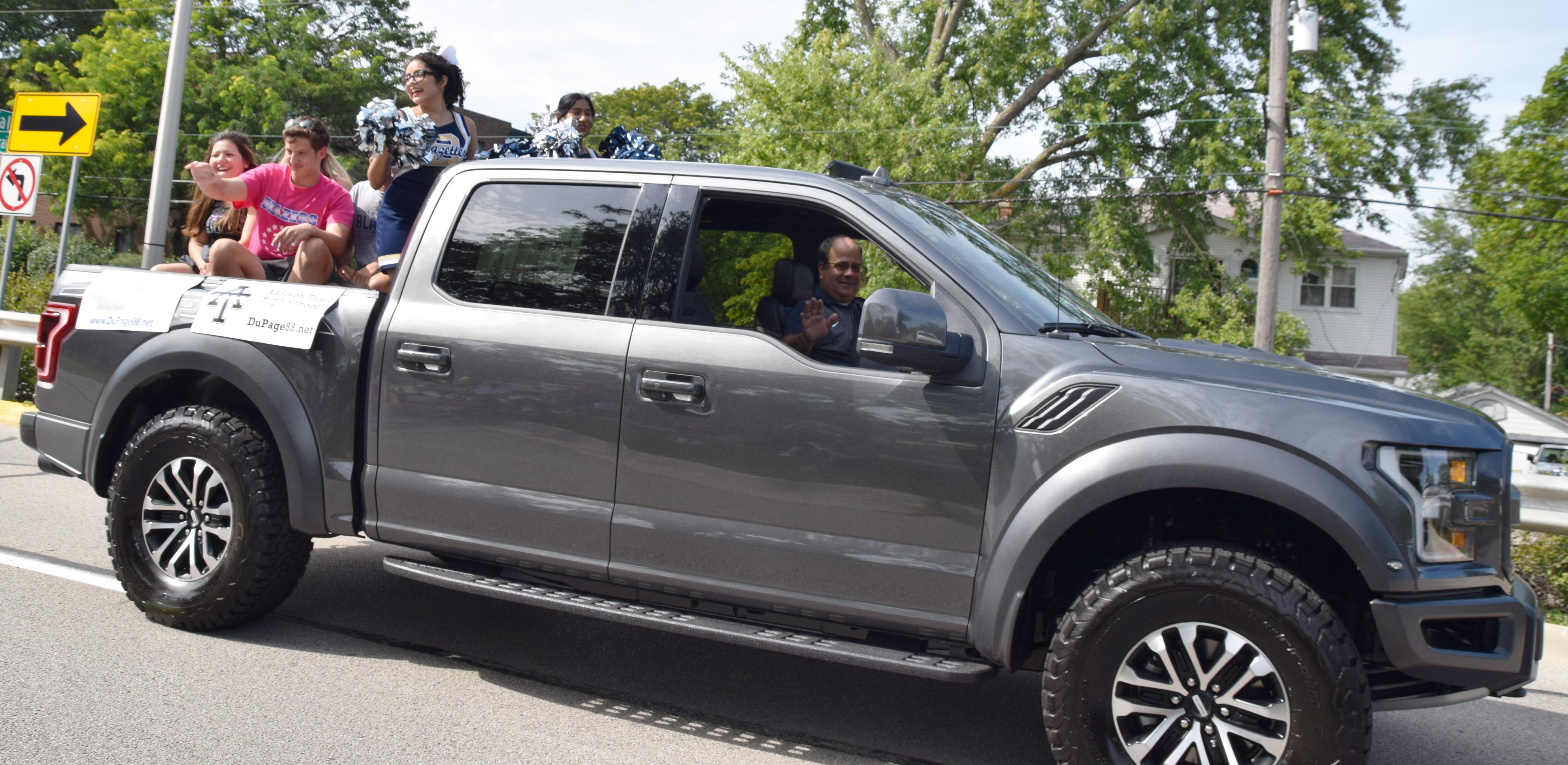 District 88 Board of Education President Donna Craft Cain and Board member Lisa Knauf also rode in the parade, along with District 88 Superintendent Dr. Scott Helton and Addison Trail Principal Michael Bolden. Roesch Ford in Bensenville provided the vehicles for the Board.