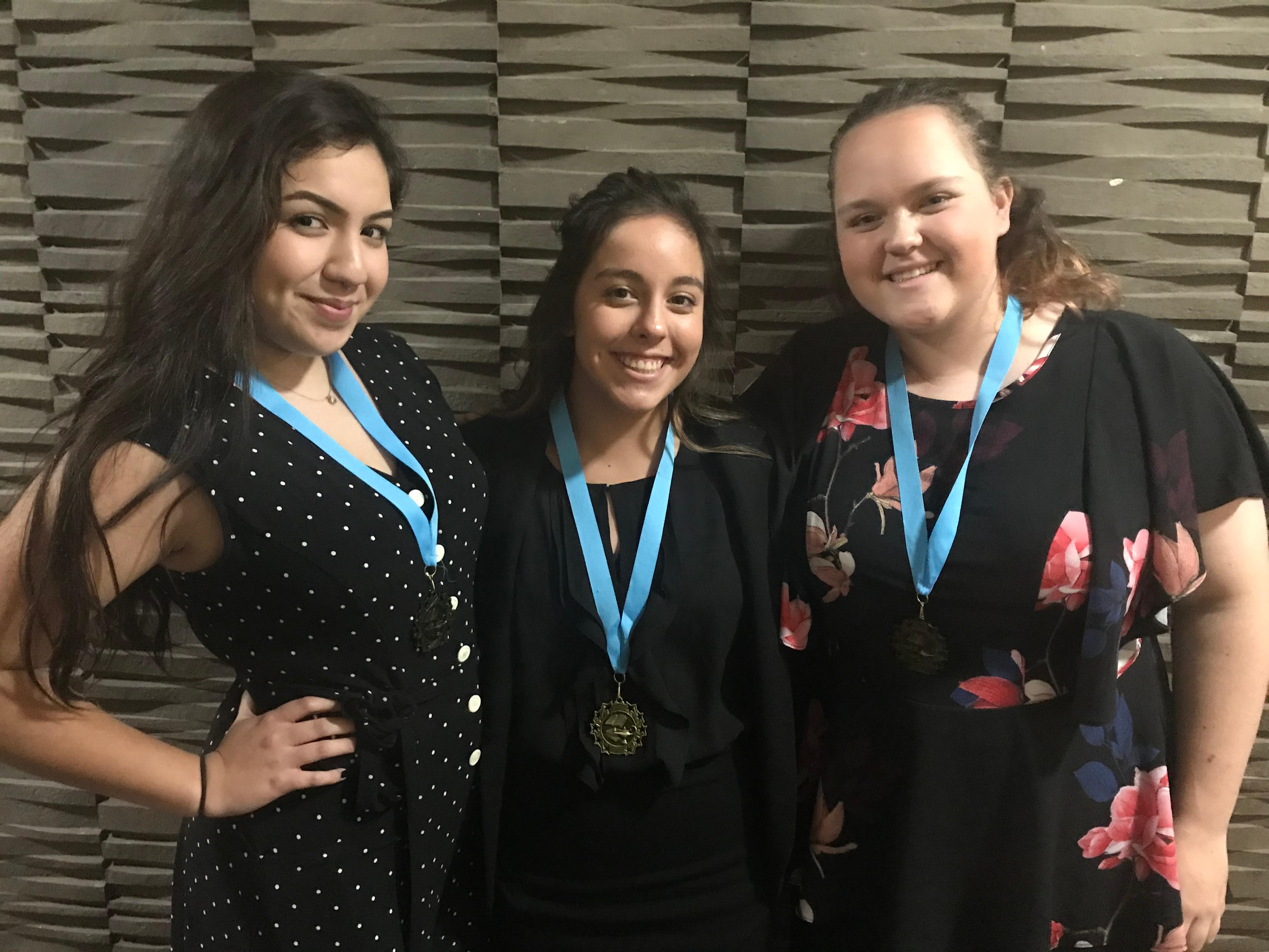 Dramatic Interpretation: Sophomore Katherine Wentworth, 2nd place (pictured above, at right); senior Letisha Sepulveda, 3rd place (pictured above, at left); junior Caitlin Brennan, 4th place (pictured above, center)