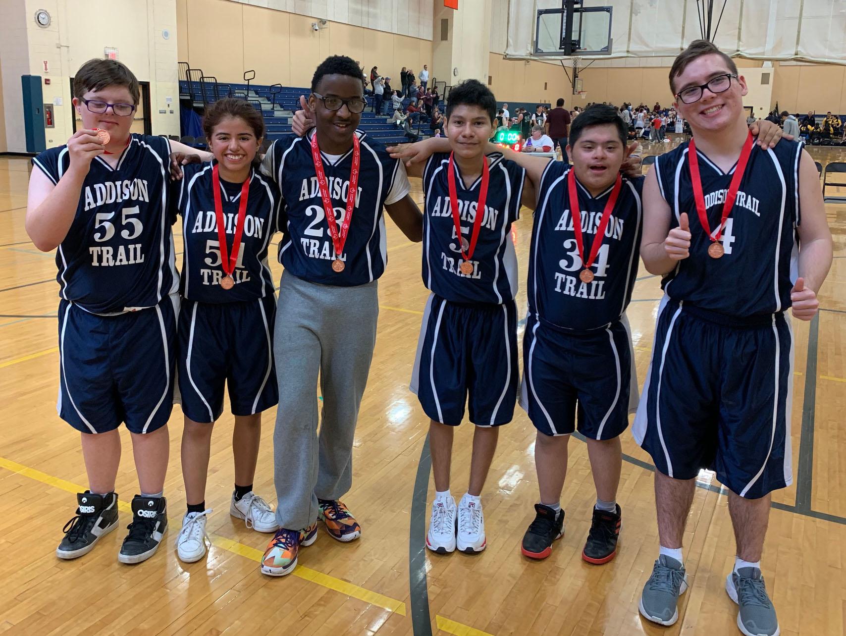 On Jan. 11, the Addison Trail Special Olympics Basketball Team competed in the Region C Basketball Tournament at Unity Junior High School and finished in 3rd place.