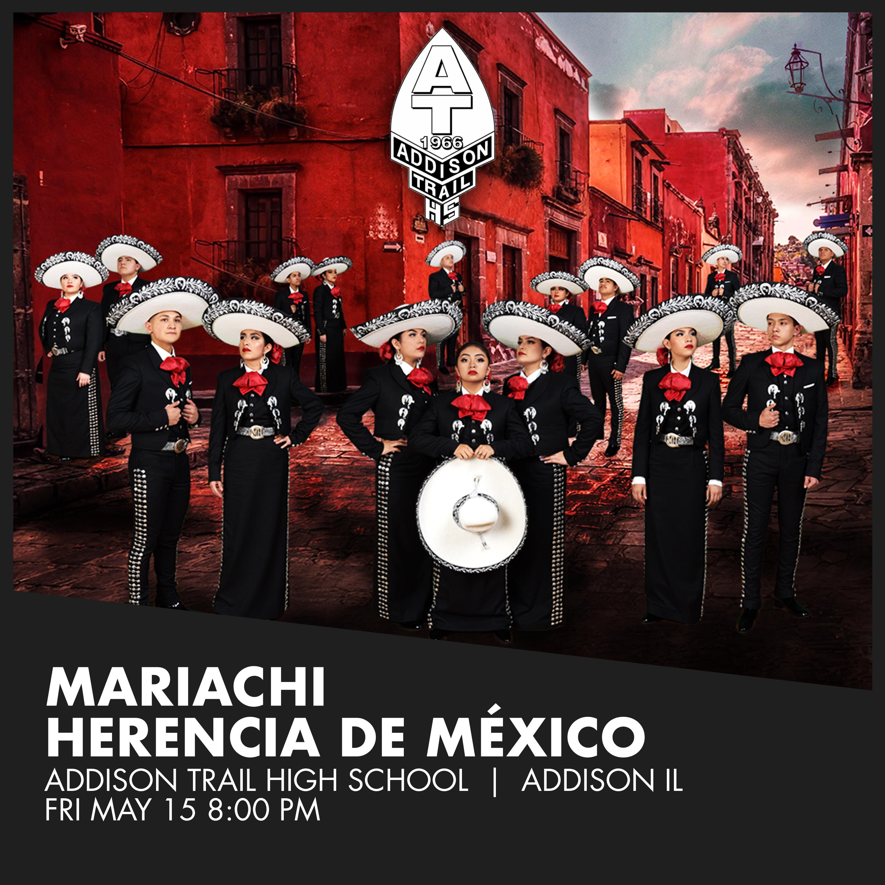 On May 15, Addison Trail will be filled with the sounds of traditional Mexican folk song, as the school welcomes Mariachi Herencia de México for a performance. All Addison Trail students, parents/guardians, alumni, staff, community members and fans are invited to attend.