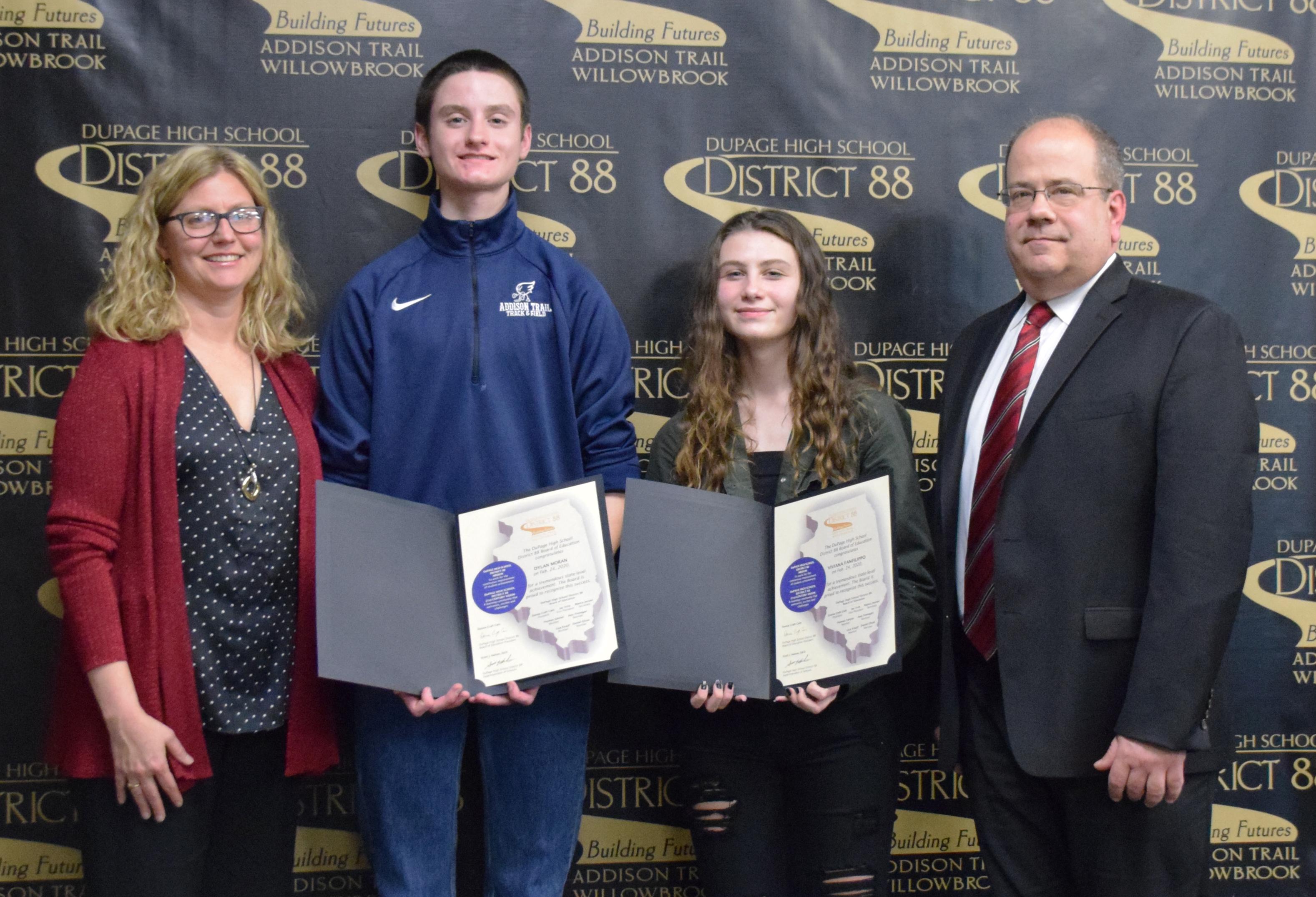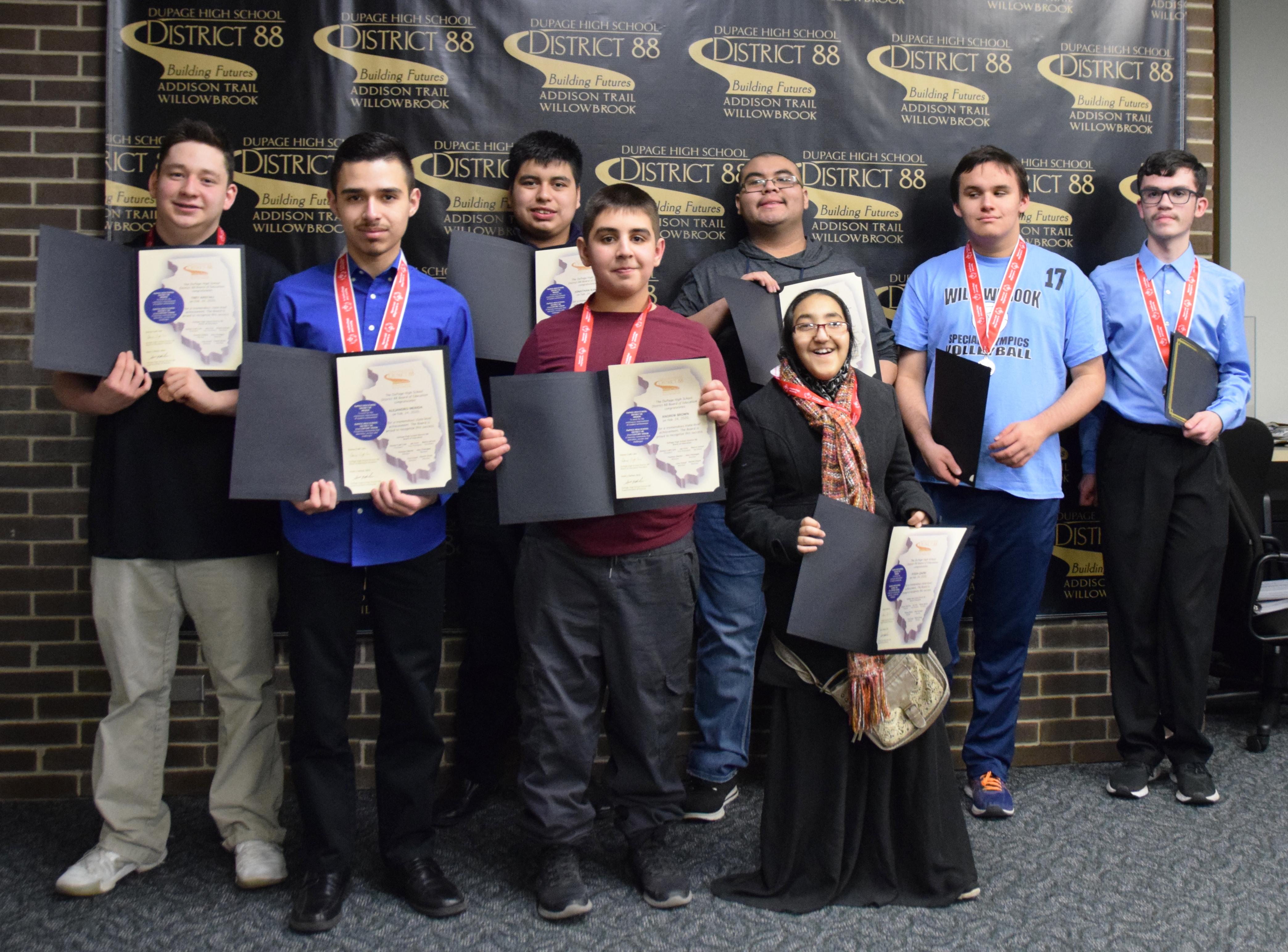 During its Feb. 24 meeting, the District 88 Board of Education recognized 32 students from Addison Trail and Willowbrook for their State-level achievements from the fall season of the 2019-20 school year. To see a list of the honorees, CLICK HERE.