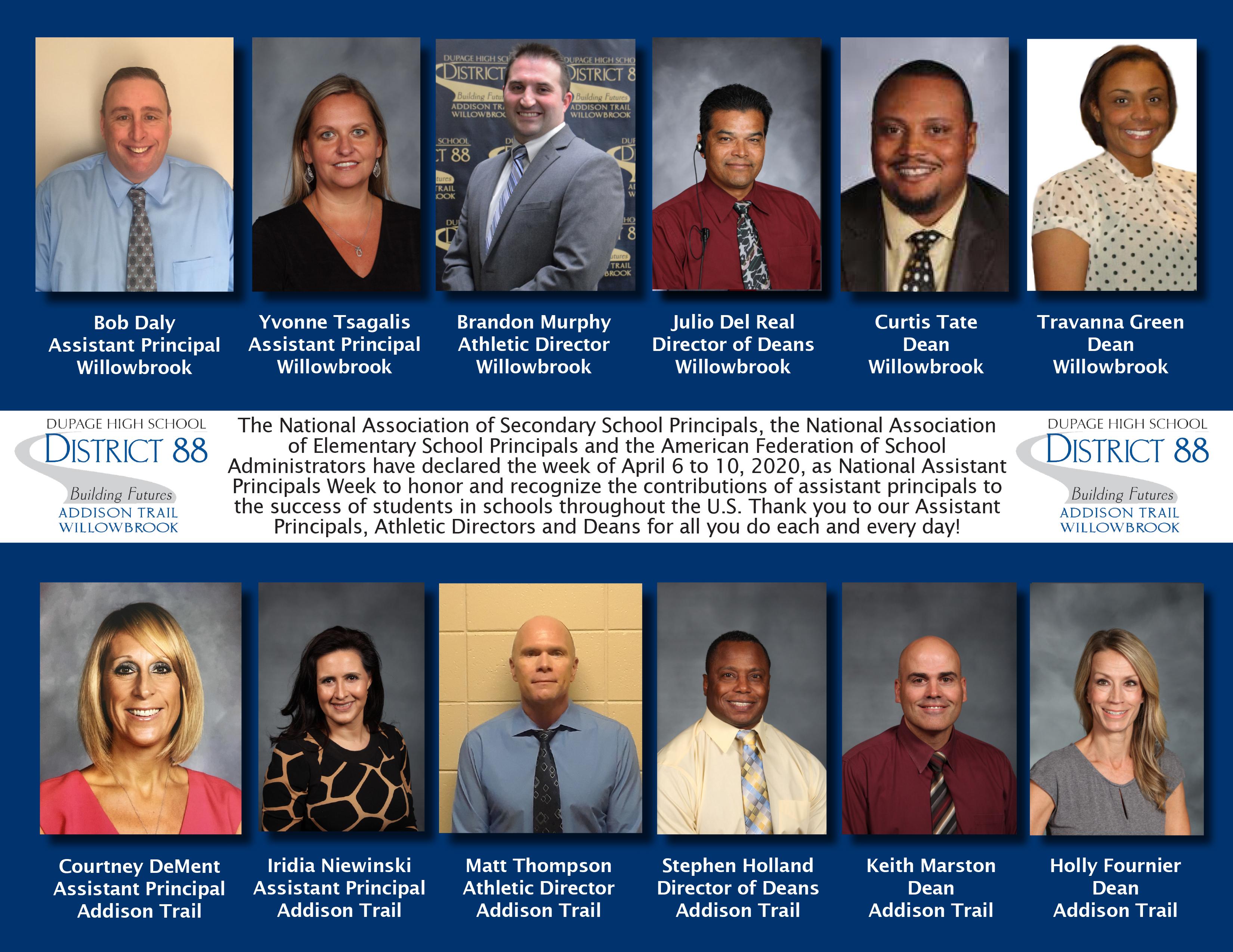 It’s fitting our Staff Recognition Dinner was scheduled to take place today, May 8, as the capstone event to Staff/Teacher Appreciation Week. This year, we recognize 66 individuals who have served District 88 for 10 years or more and have given 1,145 years of combined service to students at Addison Trail and Willowbrook. We also thank five staff members who will retire at the end of this school year for their commitment to building positive futures for our students.