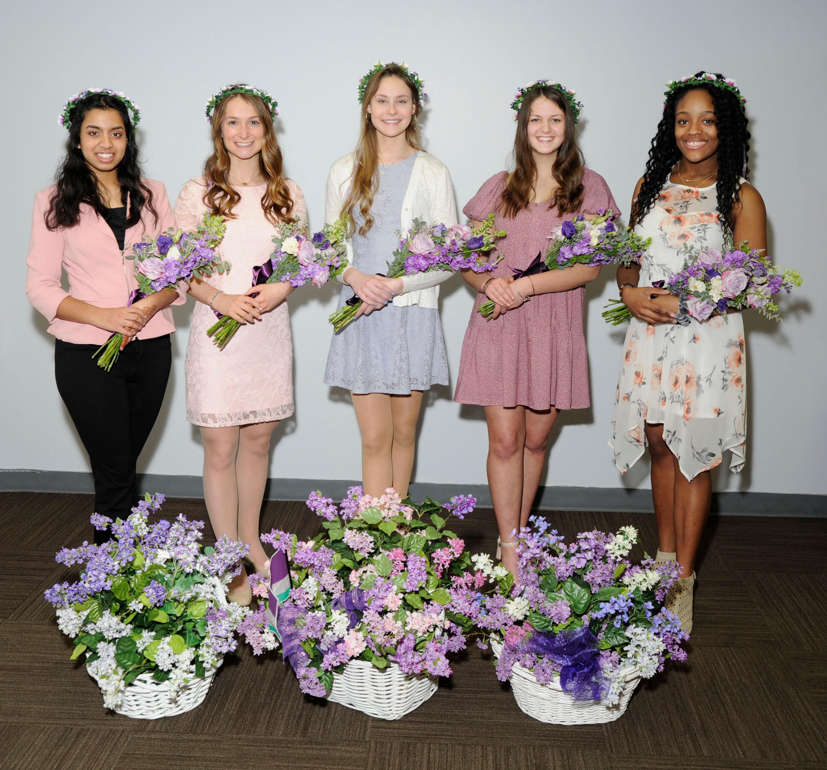 Pictured are (from left) Willowbrook seniors Stacy Caeiro, Elizabeth (Lizzy) Florey and Karli Wilson, who were named to the Lilac Court as part of the Lilac Princess Program. They were selected as princesses on March 8, along with Glenbard East juniors Abby Lynch (second from right) and Jamya Whitman (right). One of the young women will be named as the 2020 Lilac Queen and will be the 90th queen crowned. The winner will be announced during the coronation, which is scheduled to take place on May 2 at Lilacia Park. Photo by Chris Fox