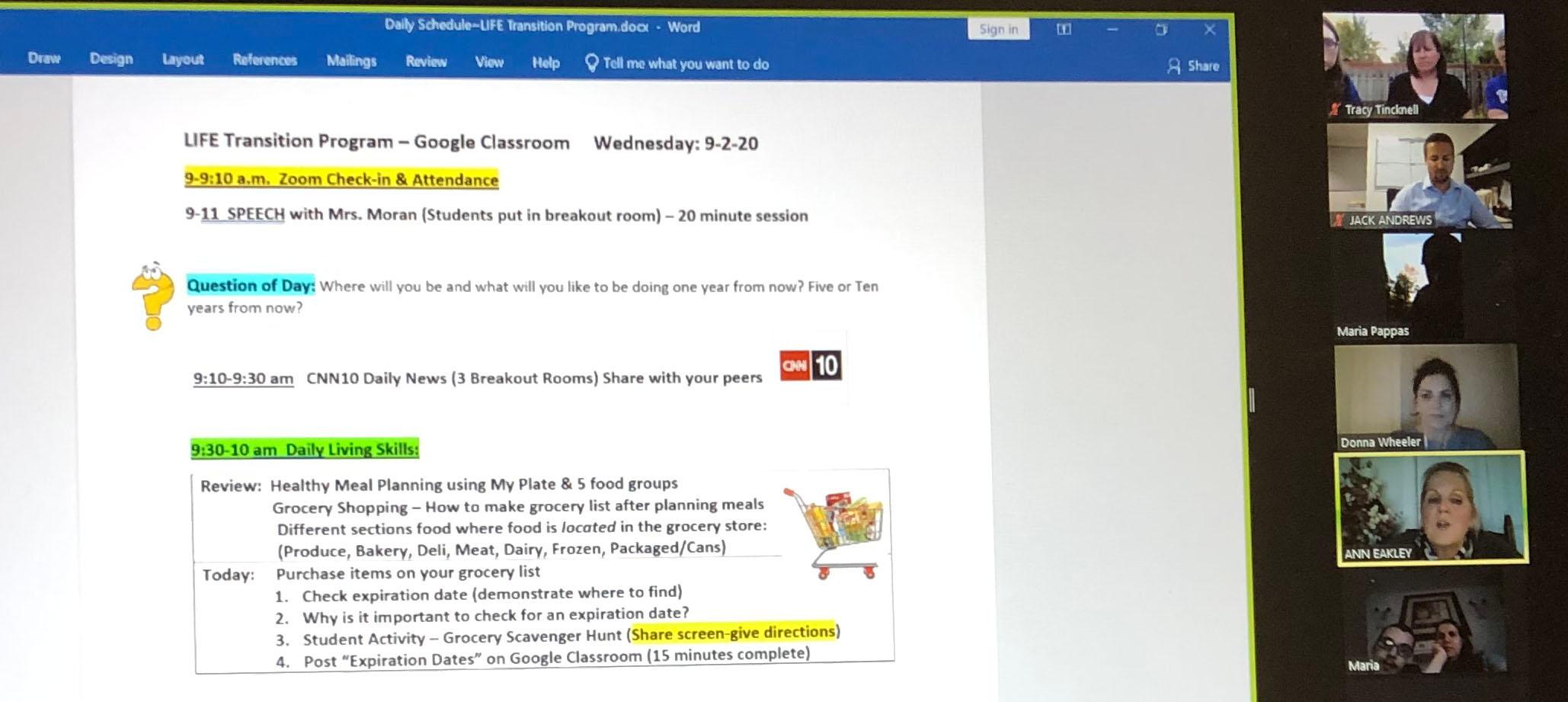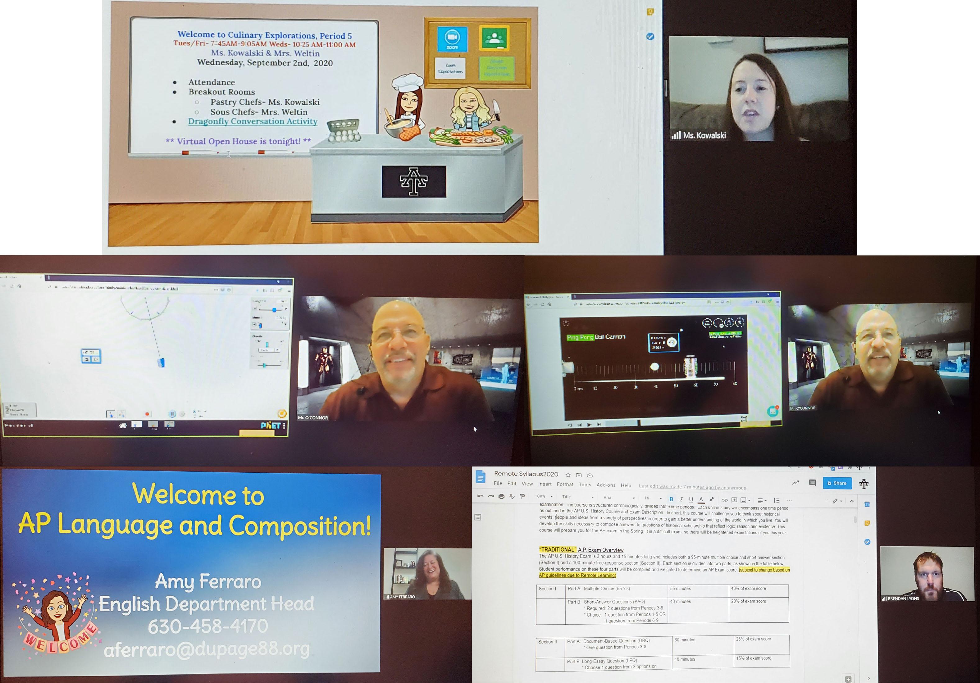 Addison Trail Career and Technical Education (CTE) Department Head Jennifer Kowalski (top row), science teacher Sean O'Connor (middle row), English Department Head Amy Ferraro (bottom row, left) and Social Studies Department Head Brendan Lyons (bottom row, right) meet with parents/guardians and students during the school's Virtual Open House on Sept. 2.