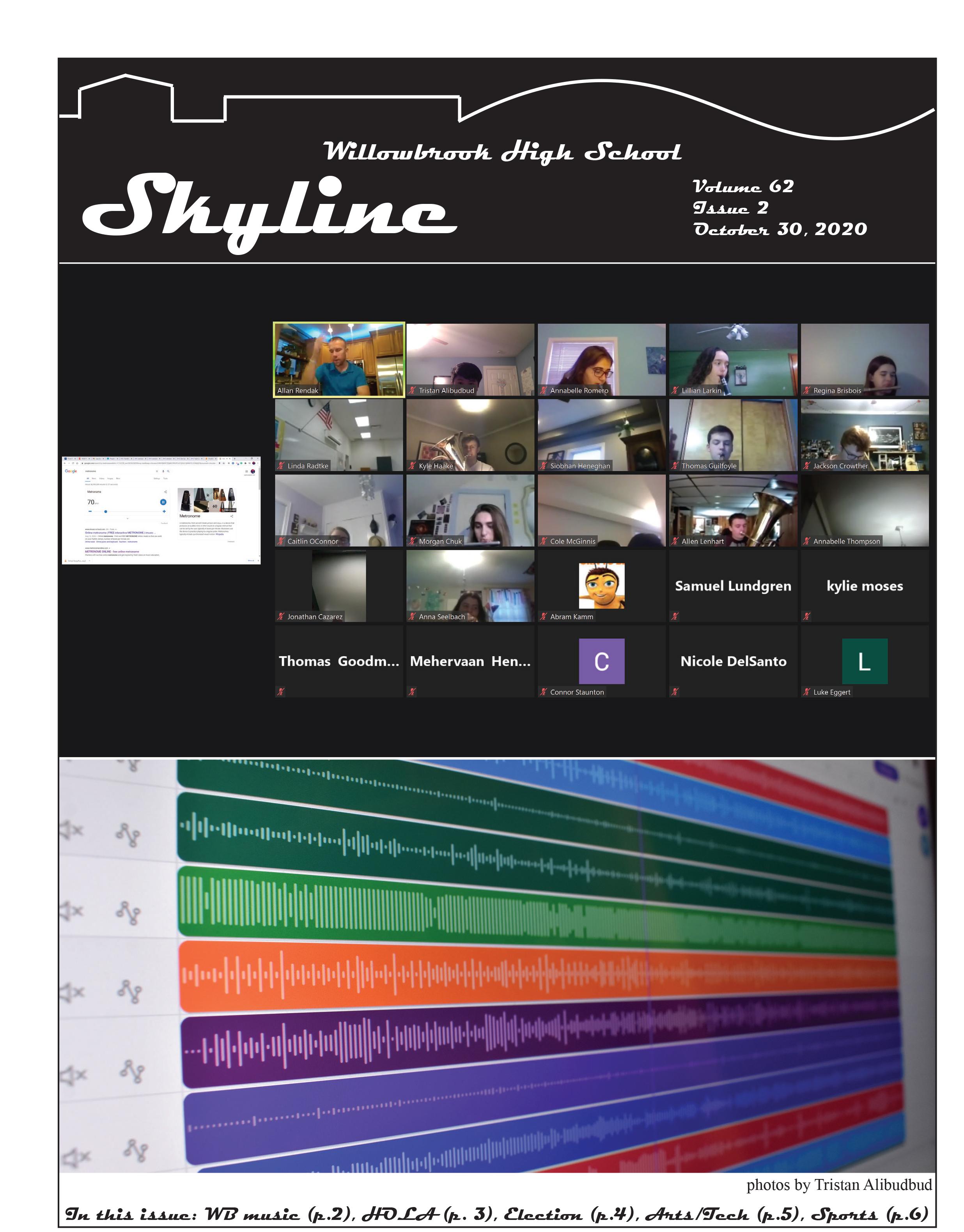 This issue includes articles about how the school’s music department is providing learning opportunities for students in a virtual environment; reactions from students and alumni regarding the upcoming election on Nov. 3; a feature on Willowbrook’s Hispanic Leadership Club, called Hispanic Organization of Leaders in Action (HOLA); a recap of professional sports; and more.