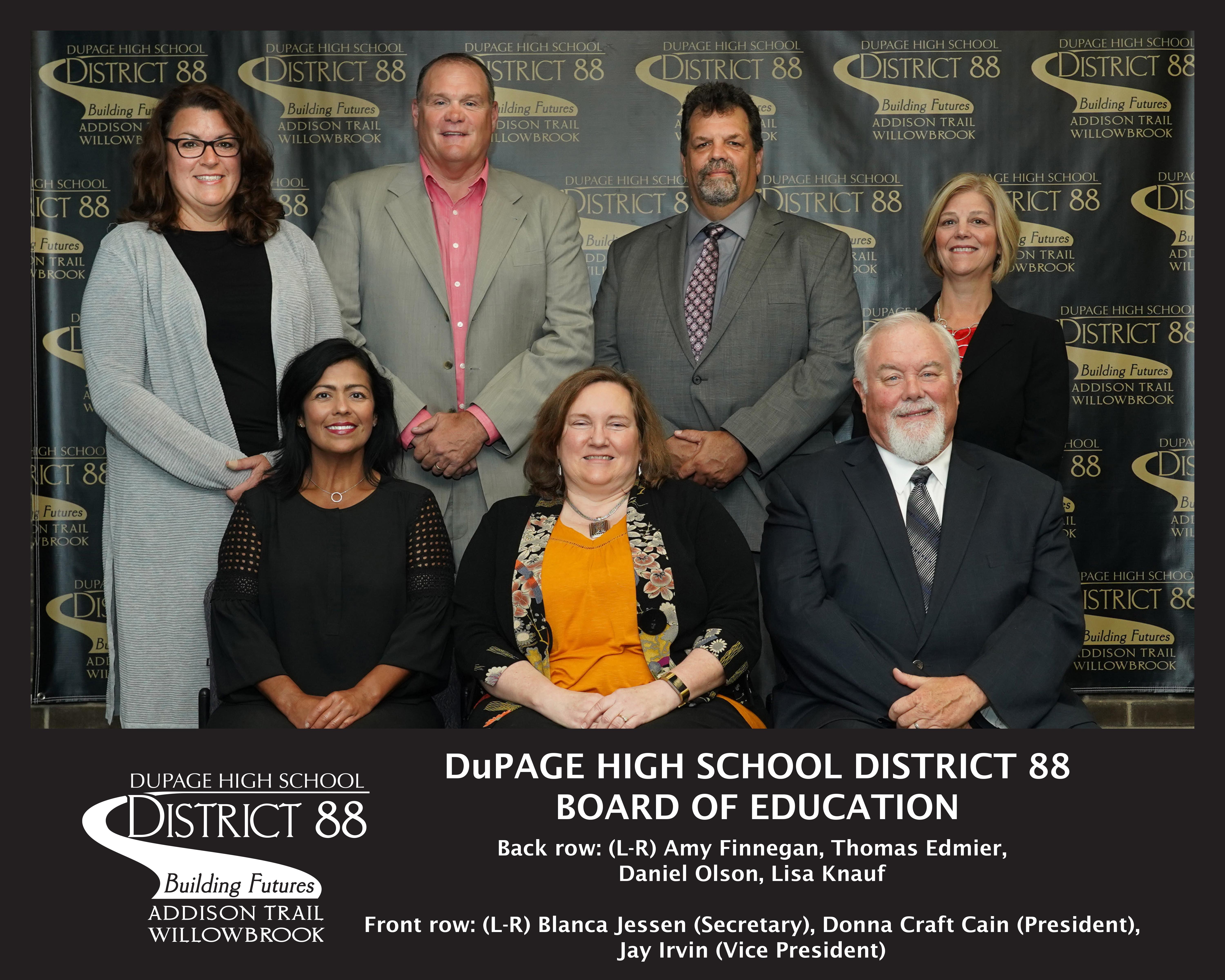 We would like to thank our District 88 Board of Education members – Donna Craft Cain (President), Jay Irvin (Vice President), Blanca Jessen (Secretary), Thomas Edmier, Amy Finnegan, Lisa Knauf and Daniel Olson (pictured above) – for the countless hours they devote to attending meetings, events and workshops to ensure our students receive a high-quality education.