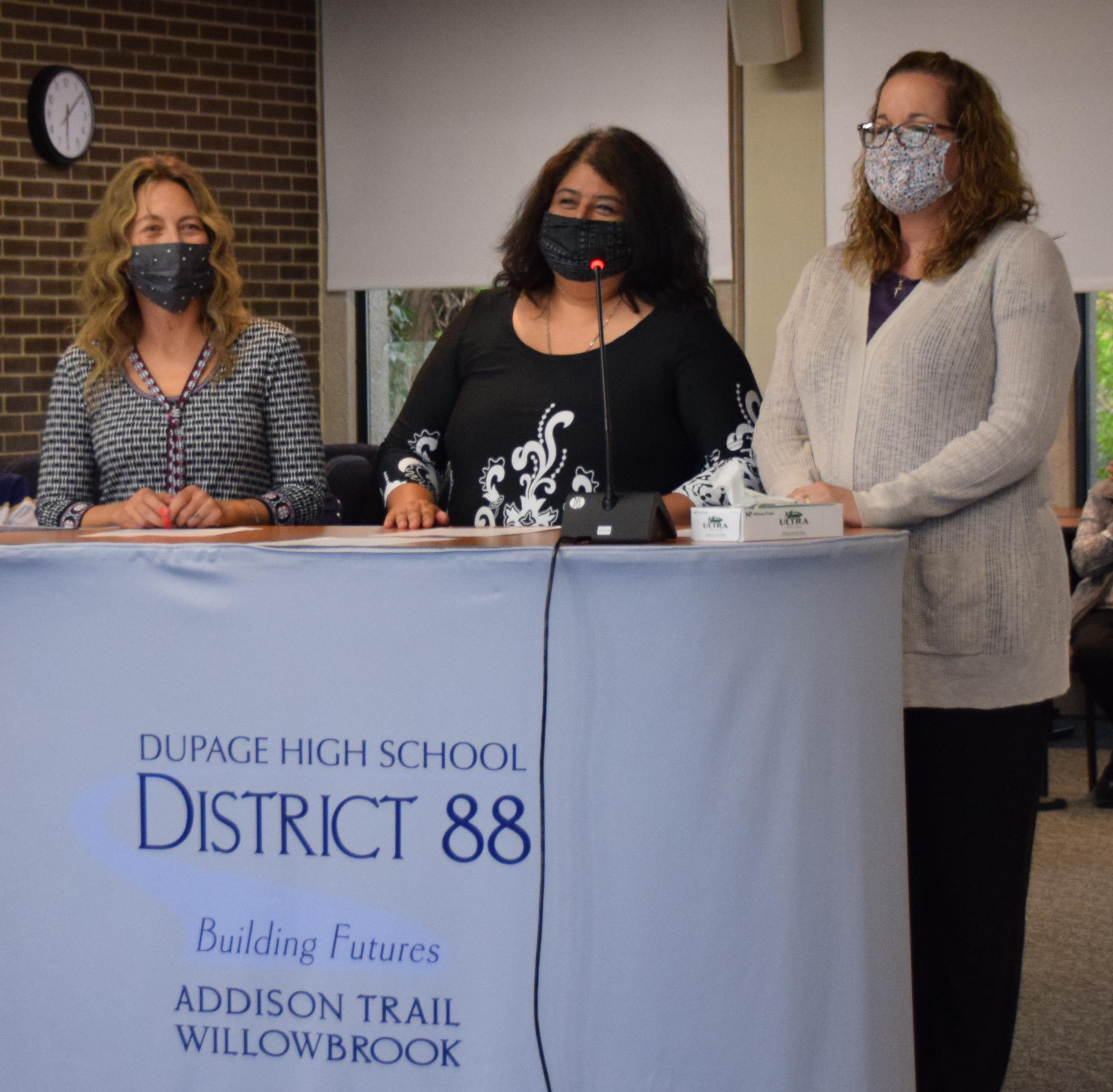 During a District 88 Board of Education Special Meeting on April 29, the district installed new Board members Christine Poirier (pictured above, right), Jean Taylor (pictured above, center) and Diana Stout (pictured above, left), who were elected during the April 6 Consolidated Election. District 88 Board of Education President Donna Craft Cain administered the Oaths of Office. To listen to the installation, click on the video above.