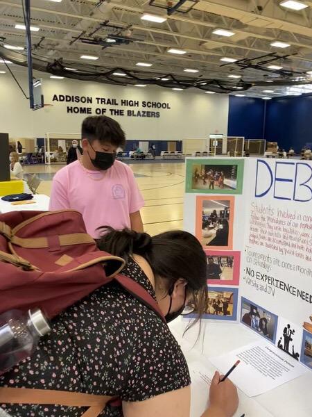 That event allows pupils to learn more about the activities and clubs offered at Addison Trail, and 47 groups participated this year. The fair helps students find an extracurricular activity that interests them to become more engaged and involved in school beyond the classroom.