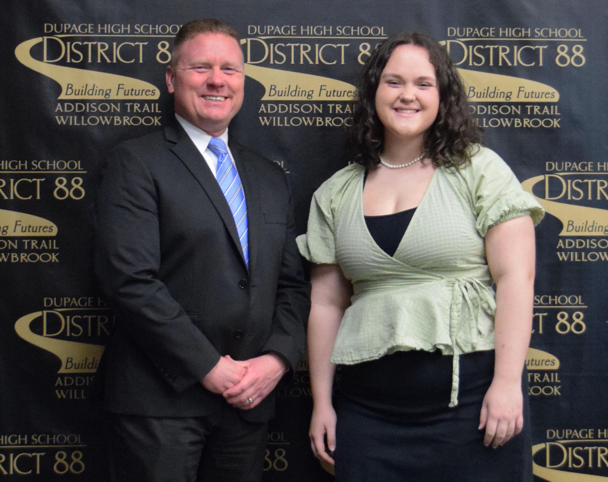 Katherine Wentworth (pictured above, with Willowbrook Principal Dr. Daniel Krause) has been named as Willowbrook’s March recipient of 88’s Best recognition for her outstanding work in the performing arts/electives. Wentworth, a senior, was recognized during the March 21 District 88 Board of Education meeting. To watch her 88’s Best presentation, click on the video above.
