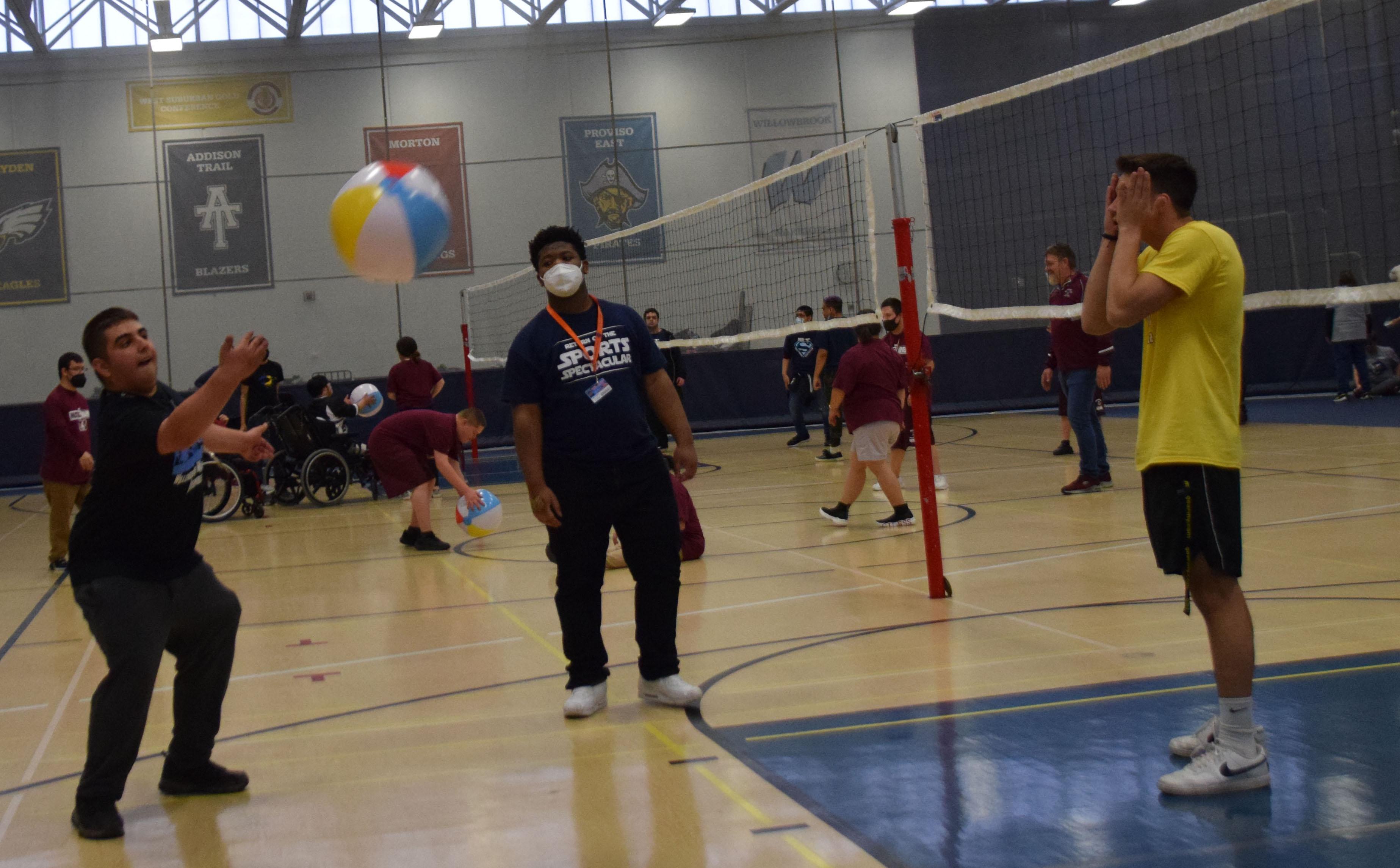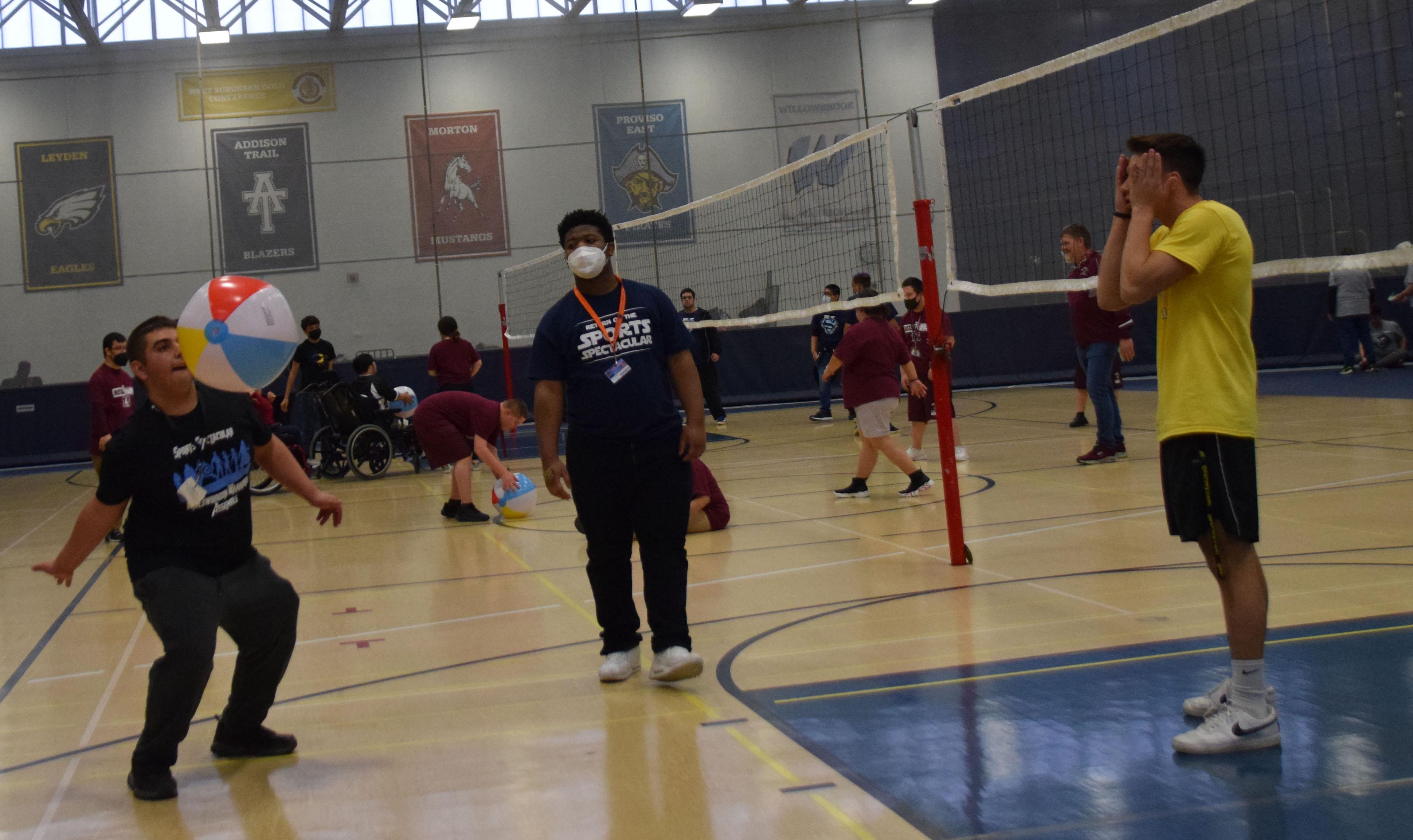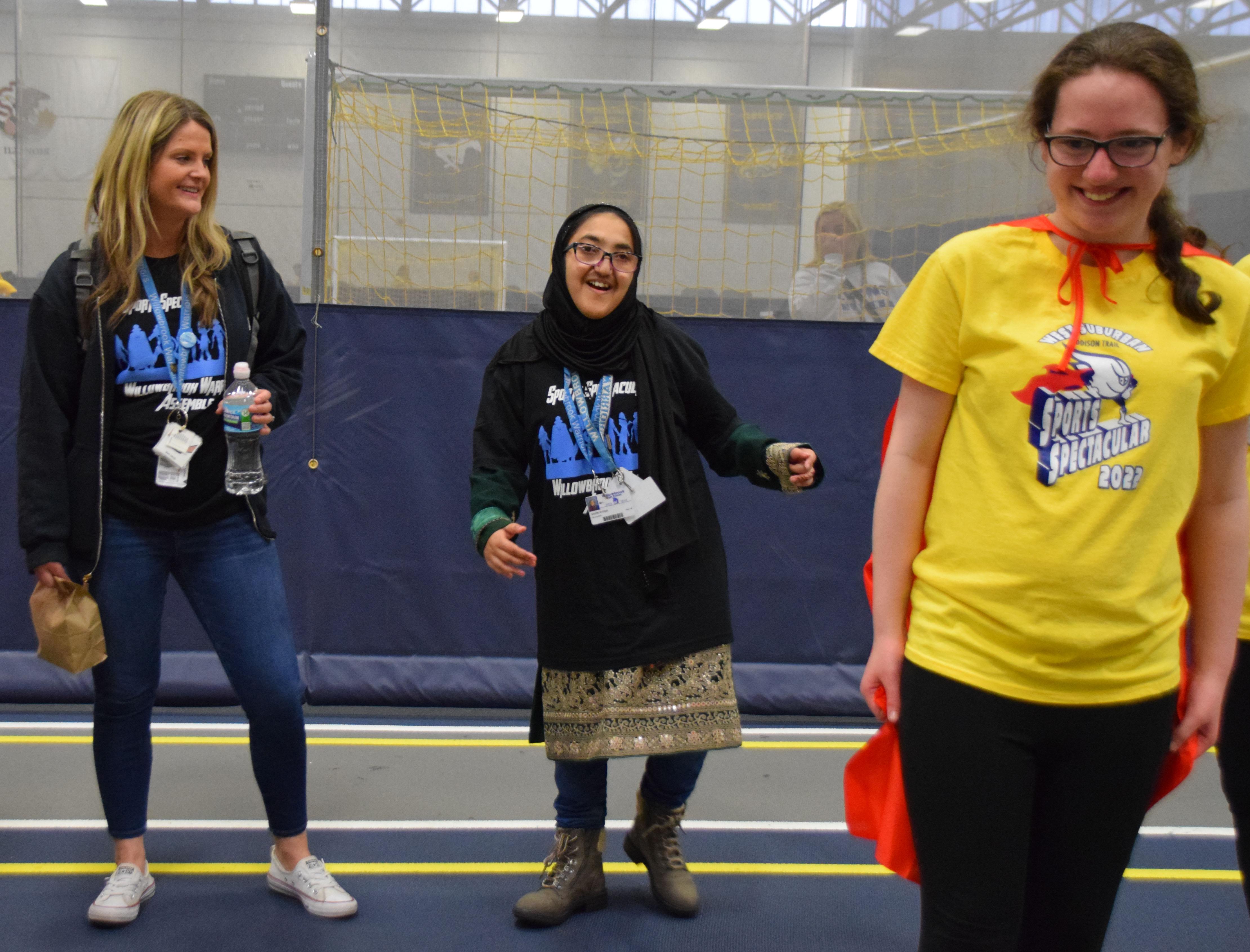 During the event, about 600 students with special needs and their staff filled Addison Trail’s field house, gyms and black box studio theatre. The students were from 16 schools in the West Suburban Conference, including Willowbrook. The pupils participated in basketball, volleyball, indoor golf and more. They also enjoyed carnival games, karaoke and tasty treats. The event began with an introduction of the schools in attendance.